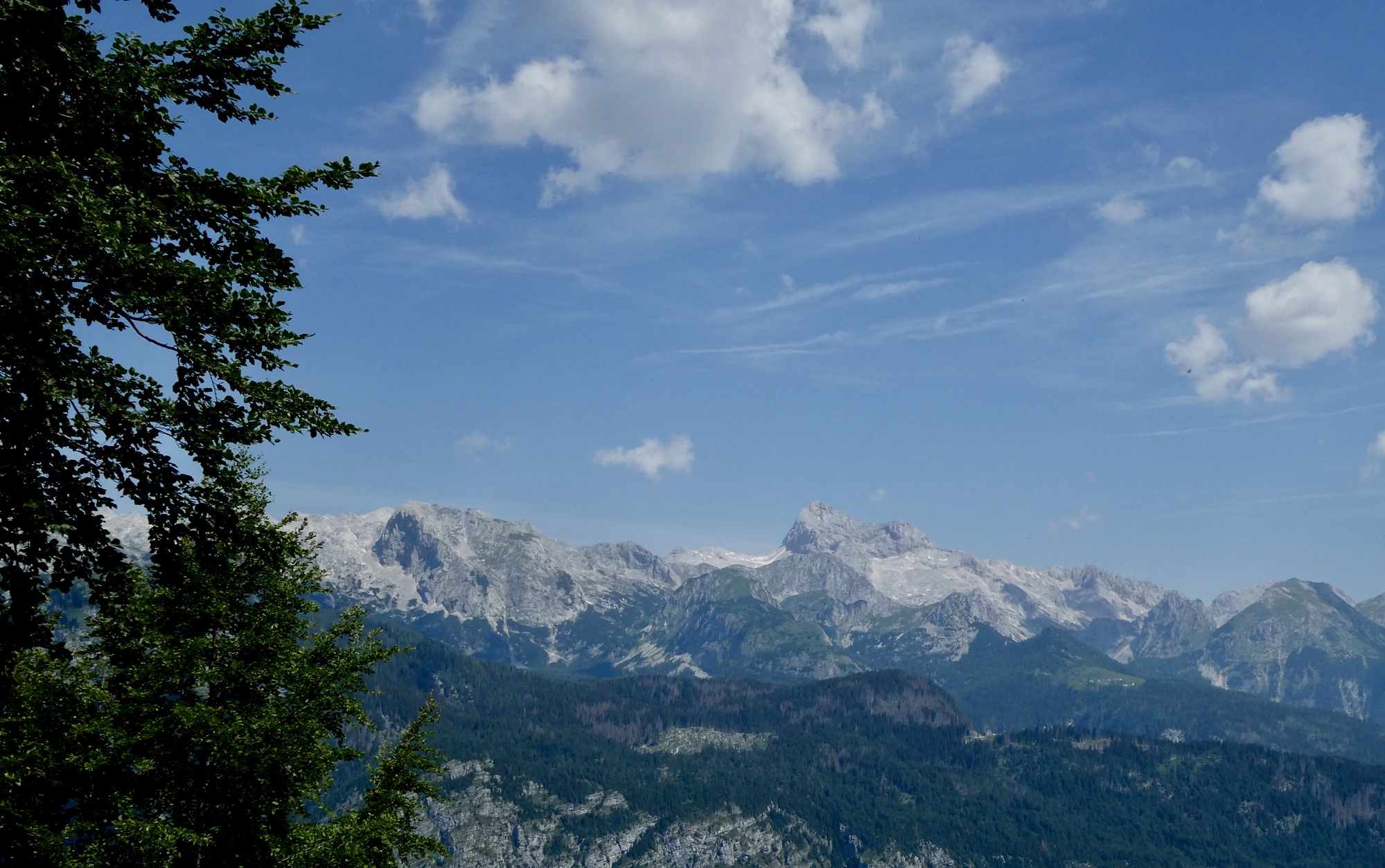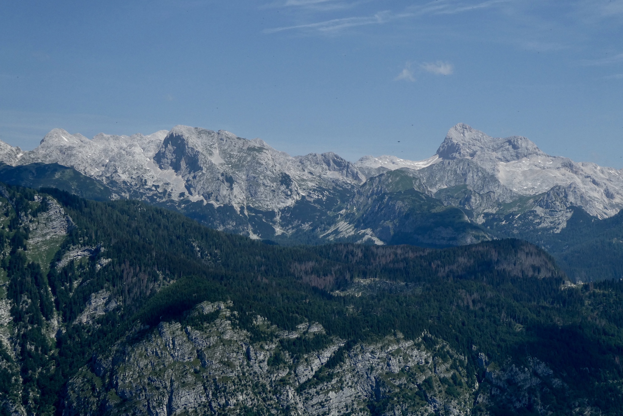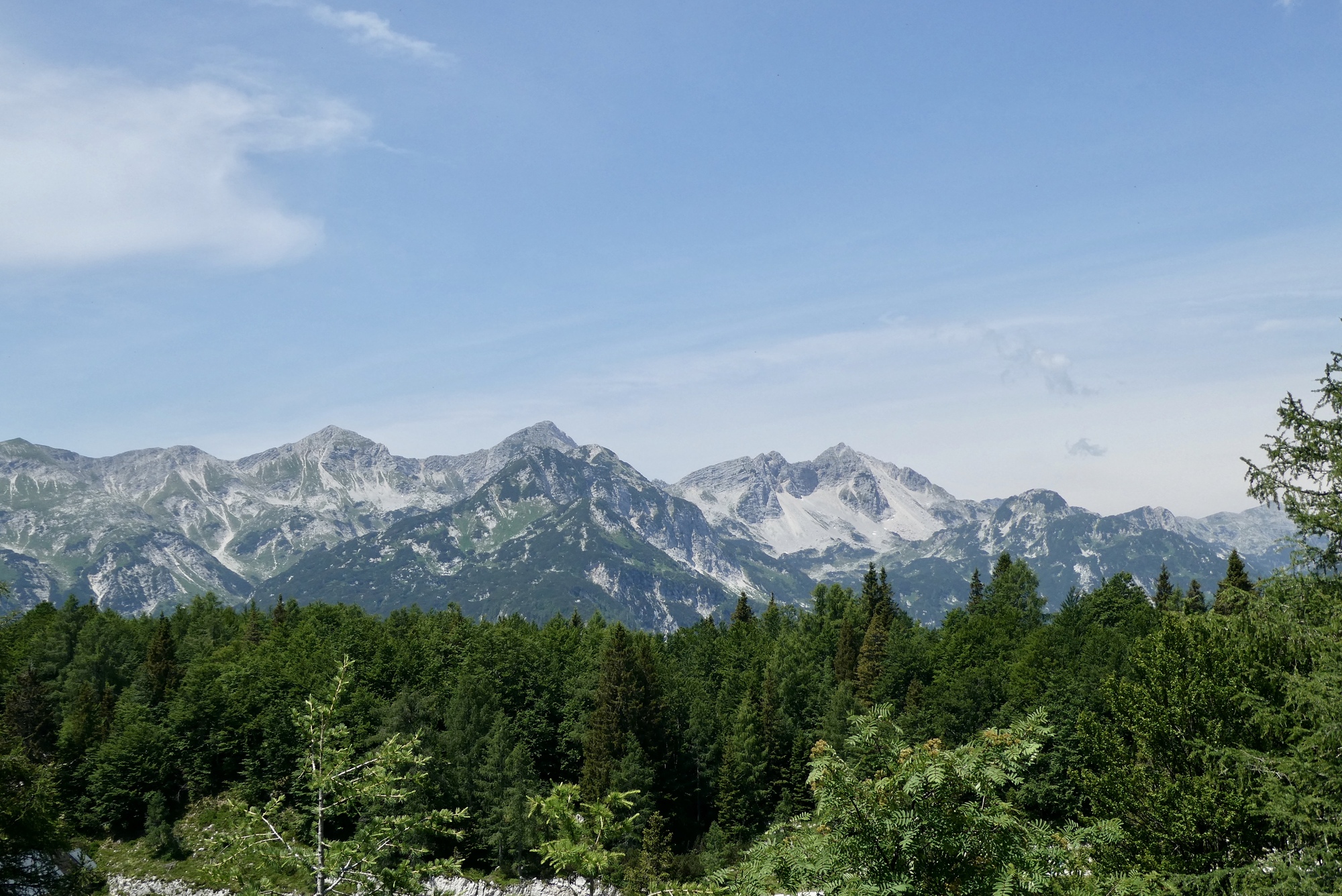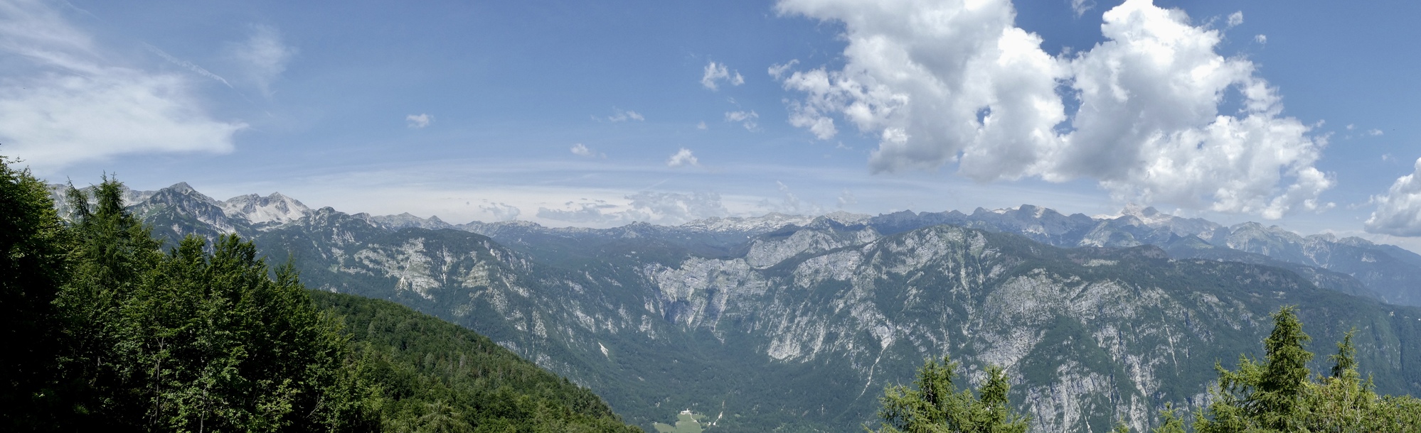 Panorama view of the the Bohinj Group summits, including Mount Triglav, barely discernible on the right