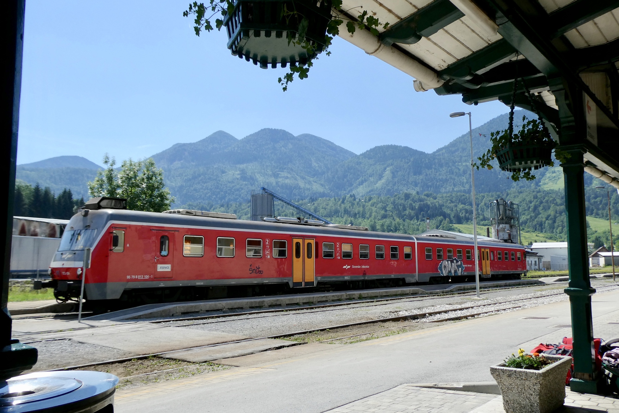 The ride down the Bohinj valley was a delight, with the low hills and mountain peaks rising above as I followed the Sava-Bohinjka river through wooded sections and narrow alpine meadows. There were plenty of folks out enjoying the day on a bike, ranging from family groups to touring cyclists on tandems. Despite my leisurely pace and stops for photos, I arrived at the train station with more than an hour to spare. I cycled back to explore the town to and check out the sporting goods store. I again came up empty in my hunt for a Slovenia cycle jersey, and as there was not much to the town other that lodging and places to eat, I returned to the train station to wait.