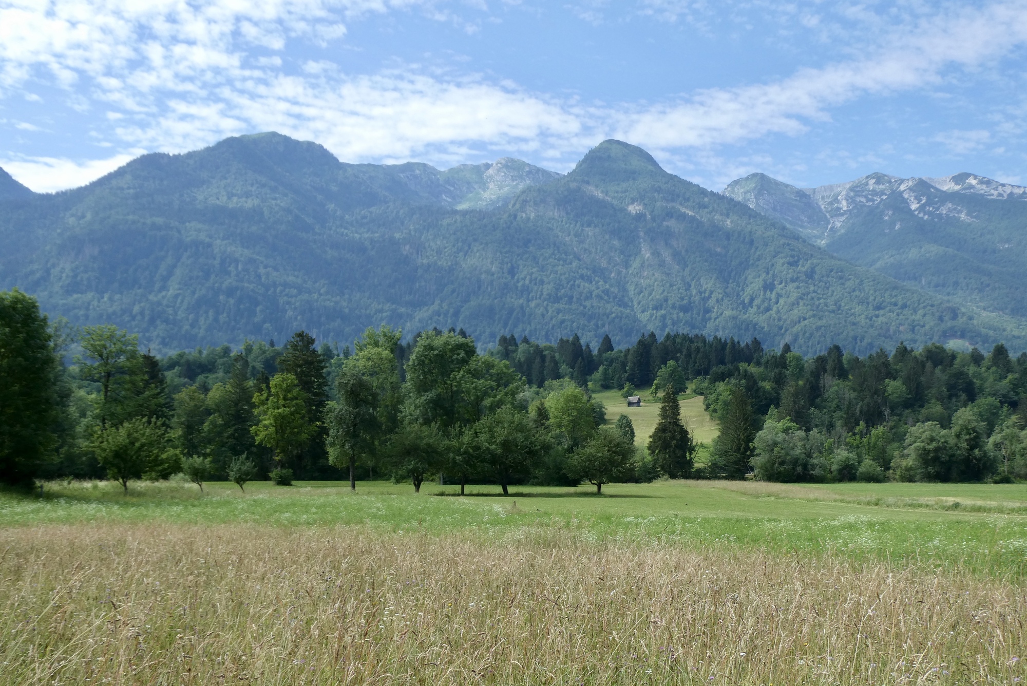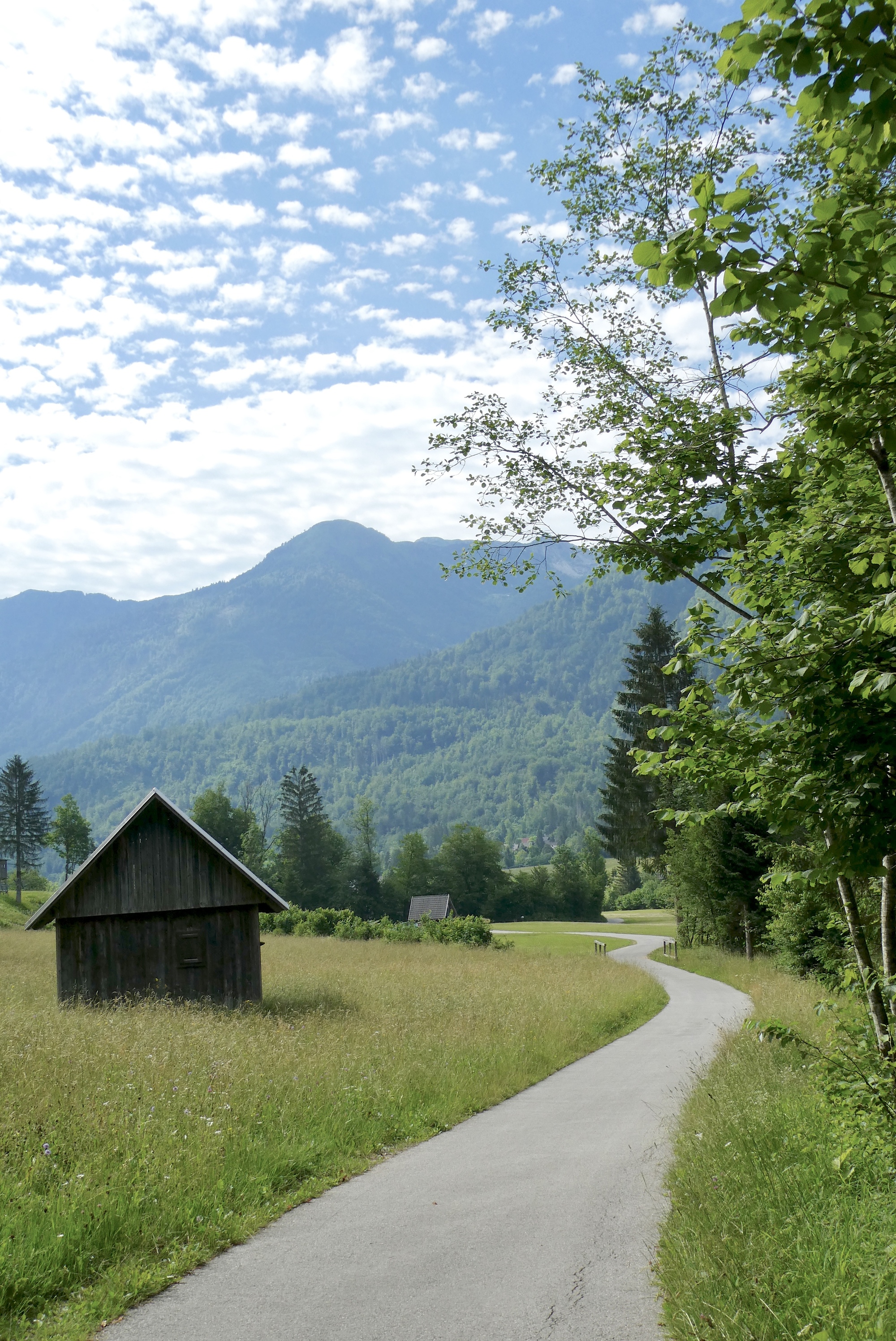 The streak of great weather continues, although there is a warming trend for later this week. My destination today is Kobarid, in the Soča River valley. My route will take me back up the Bohinj Valley to Bohinjska Bistrica where I’ll take a train through the mountains to Most na Soči, then follow the Soča River to Kobarid. Trains to Most na Soči were scheduled to depart at 9:15 and 11:50. As today's route was fairly short and I was not in a hurry, I decided to wait for the later train, giving me more time to enjoy the Bohinjska kolesarska bike trail to Bohinjska Bistrica.