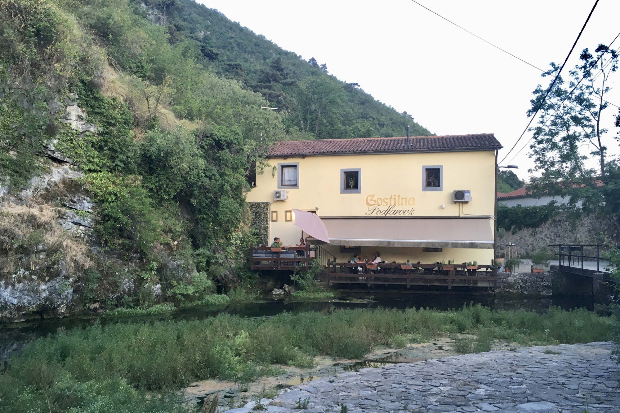 Perhaps the most dominant feature of the Vipava Valley is the Trnovo Forest Plateau, which looms high above the central valley. As I cycled along, I kept thinking about my visit Idrija in two days, which would require me to climb to the top of the plateau. I’d mapped the route and knew it would be a challenge, so I discussed the plan with Nevenka and Anya, the hosts at my lodging. They were both quite adamant that it would be a very difficult and dangerous journey, on a steep, curvy road with no shoulder and lots of traffic, including trucks. I’ve found it is usually good to listen to local advice, so with some reluctance I canceled my reservation in Idrija and booked a third night here in Vipava. Nevenka made a dinner reservation for me at a lovely little restaurant along the Vipava River where I listened to the rushing water and enjoyed another great Slovenian dining experience. Idrija isn’t going anyplace and I think an extra day in Vipava will suit me just fine.
