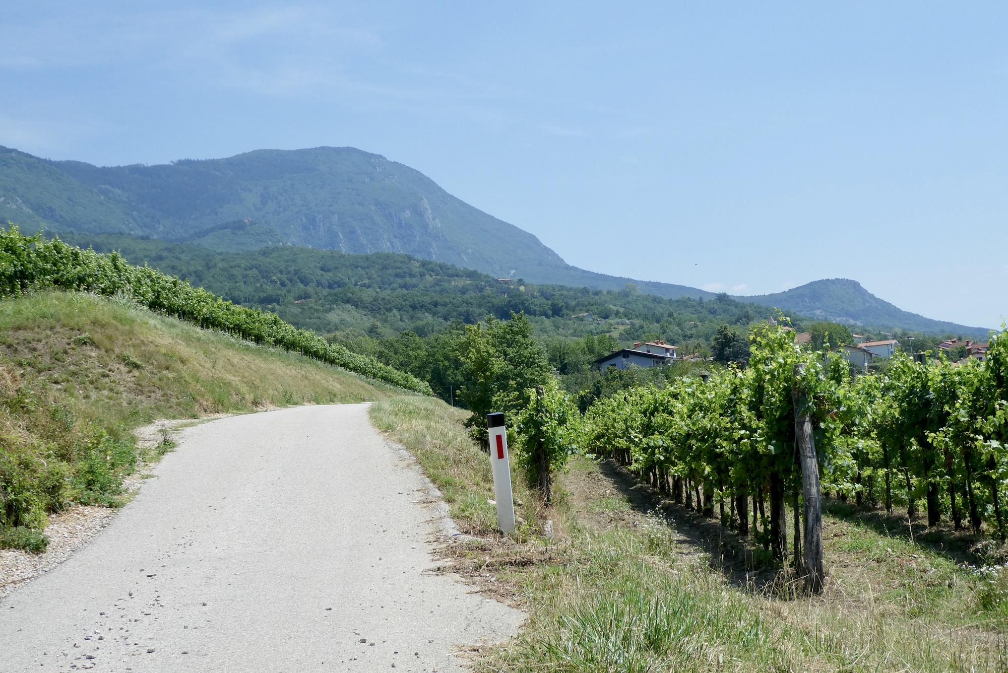 Another sunny day with increasing temperatures. It’s not as hot as Paris, but definitely warm enough. Thankfully, today’s plan was a short and relatively easy ride into the Vipava Valley, a long narrow valley that lies between the Trnovo Plateau to the north and the Karst Plateau to the south. It is one of the top wine growing areas in Slovenia, with small wineries peppered along back roads throughout the many villages that dot the valley. As fine as the wine might be, however, it was the valley’s reputation as a cycling area that motivated my visit.