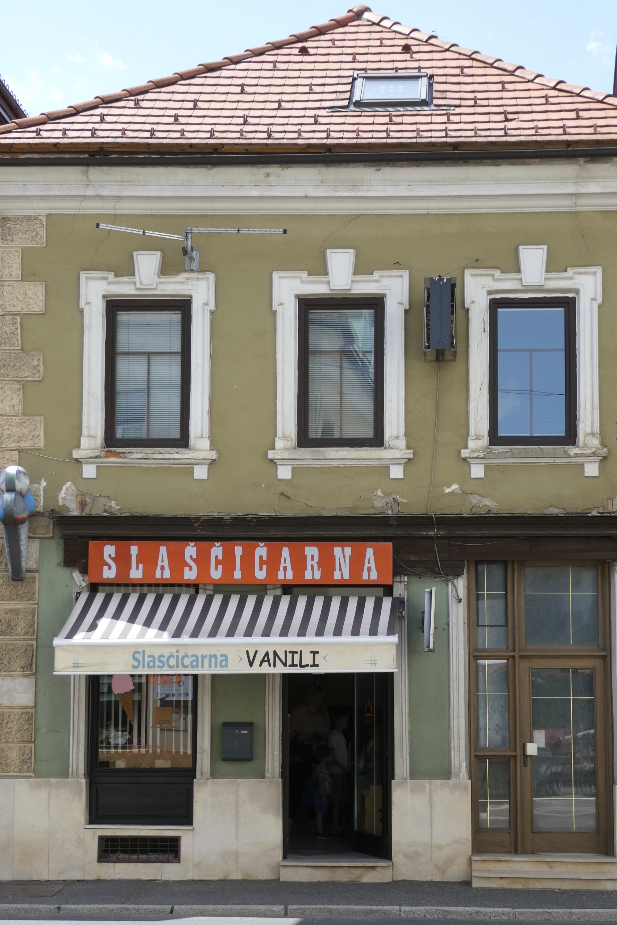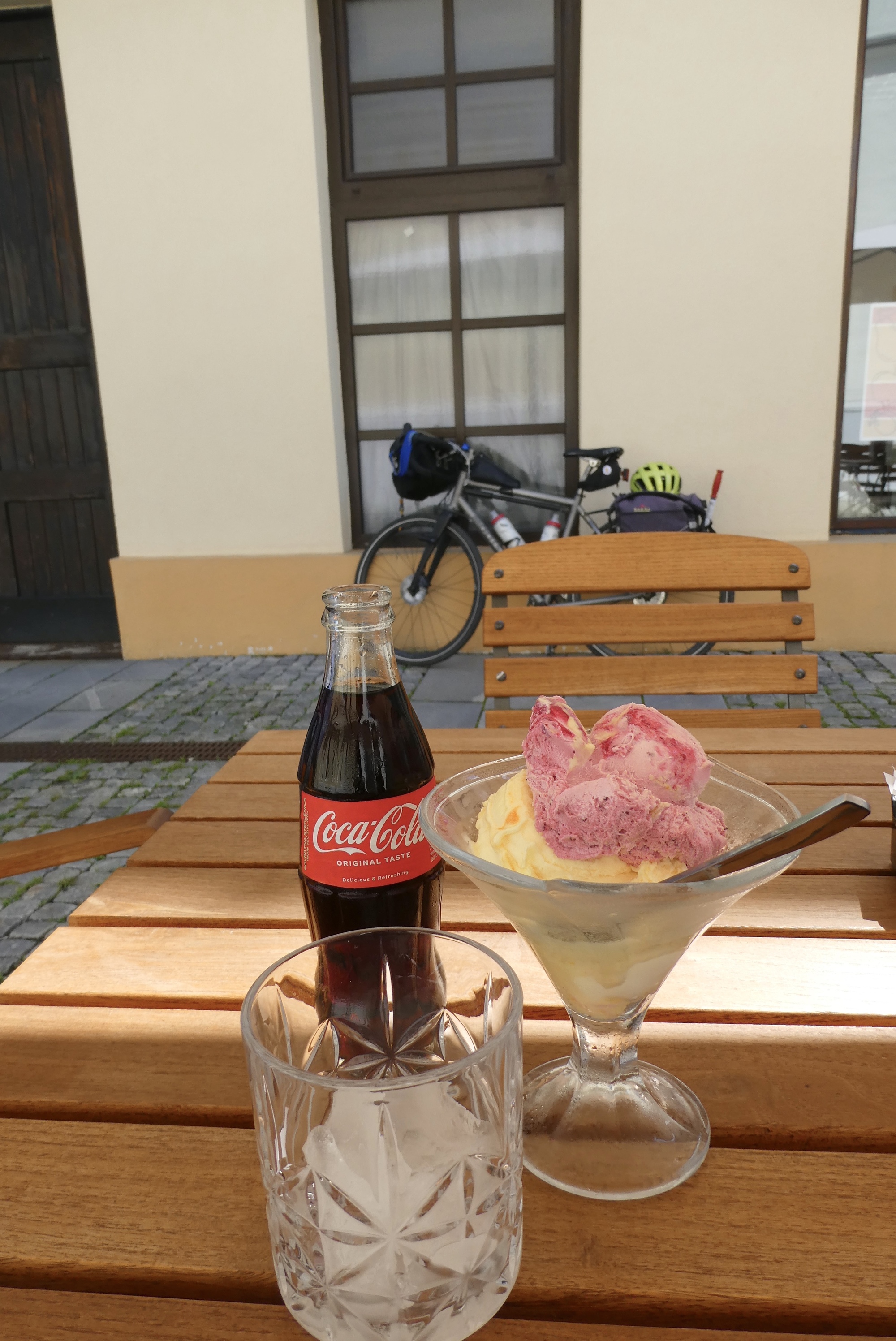 Before reaching Črnomelj, there was one more karst plateau to conquer, a 2.7 mile climb with gradients of 14% and 13% - I cried uncle on the first but made it up the second. For some, the climb up is the price you pay for a glorious descent. Me, I’m not so keen on fast descents, so the that reward is only partial compensation for the climb. I must admit that views are another reward for climbing, and I did stop on the way down to appreciate views of the Črnomelj valley. Unfortunately I was attacked by bees during my photo shoot and sped away with a stinger buried in my thumb. By the time I hit town, my only thought was ice cream – I found a nice little shop and enjoyed a double scoop with a coke. Refreshed, I went searching for my lodging, which for some reason I had booked outside of town. Not only outside of town, but up a hill and down a long gravel road that was not safe for riding. I began to wonder why I had chosen to overnight in Črnomelj, but remembered it was to see the International Folk Festival that was being held over this weekend. Maybe that was the reason I couldn’t find lodging in town.