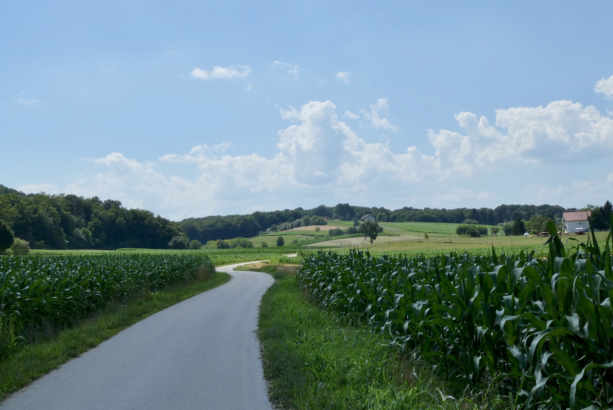 The first few miles were on a dedicated bikeway, at first running parallel to the regional highway and then, remarkably, on a small road that appeared to be restricted to cyclists. Along the way, I passed Otočec Castle, which is located on a small island in the Krka River. The castle dates back to the 13th century and has been converted to a luxury hotel with a world-class restaurant, one of the many I omitted from my culinary tour of the continent. The bikeway ended just past Stranje pri Škocjanu and for the next ten miles followed local roads and low-traffic regional highways through an agricultural region rife with cattle, corn, and vegetable crops. It was an easy and thoroughly enjoyable stretch along some beautiful countryside.