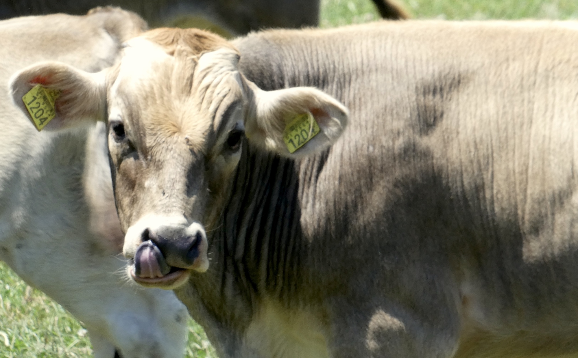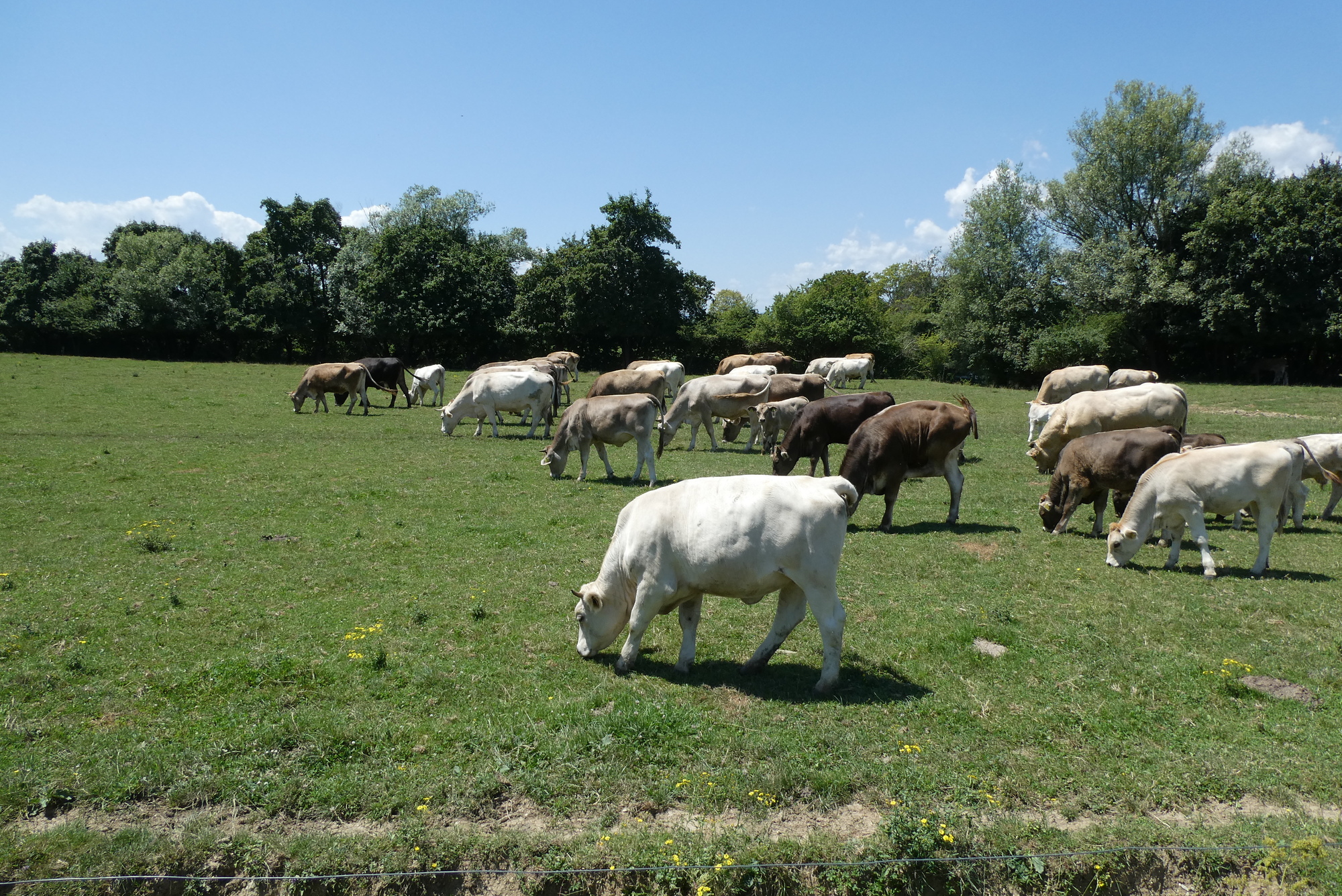 While I was eating lunch, this herd of cattle came across the field towards me. Thinking they were curious, I went over to check them out, but realized that they were just a bio-organic mowing machine, a moving phalanx chomping almost every blade of grass in their wake.