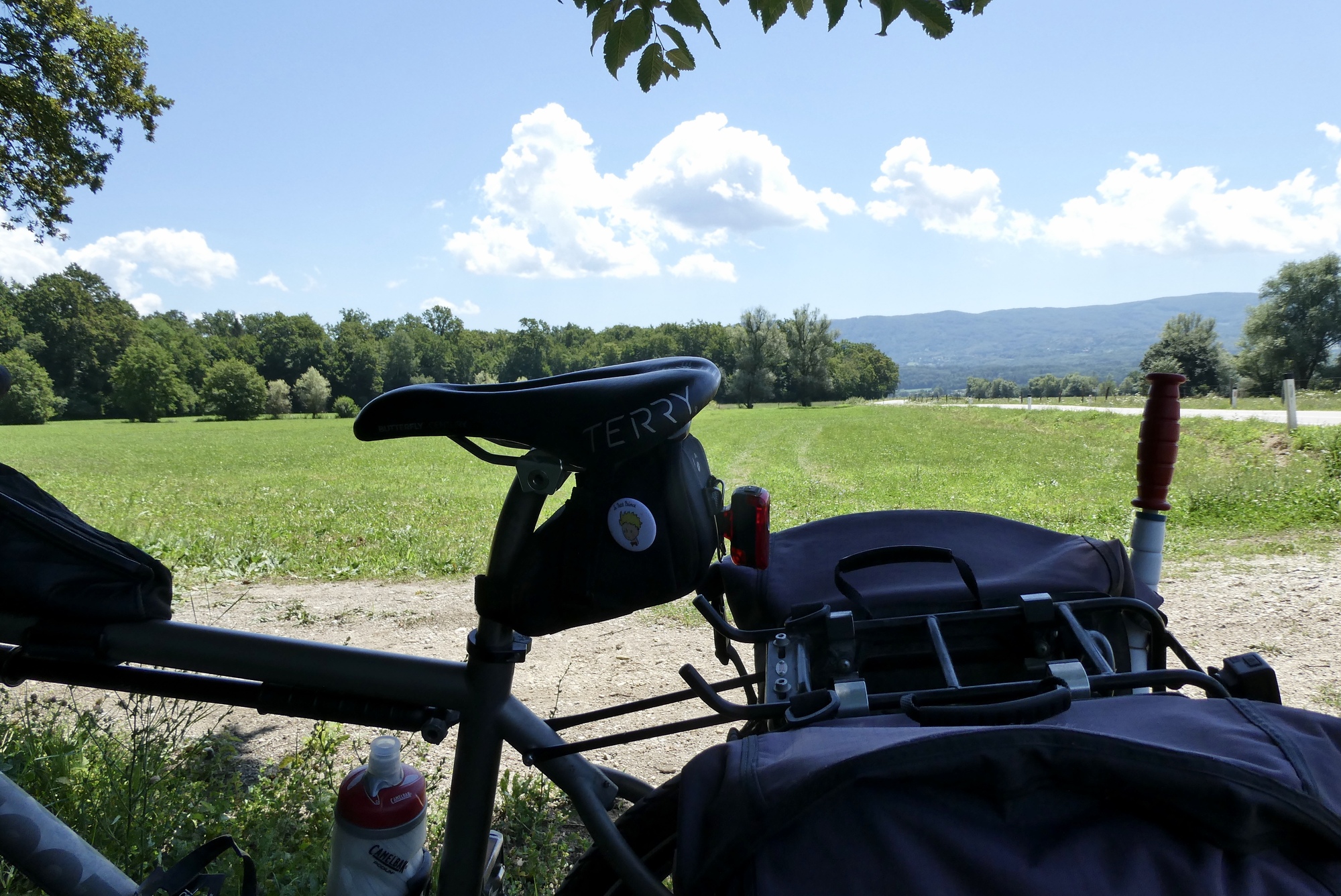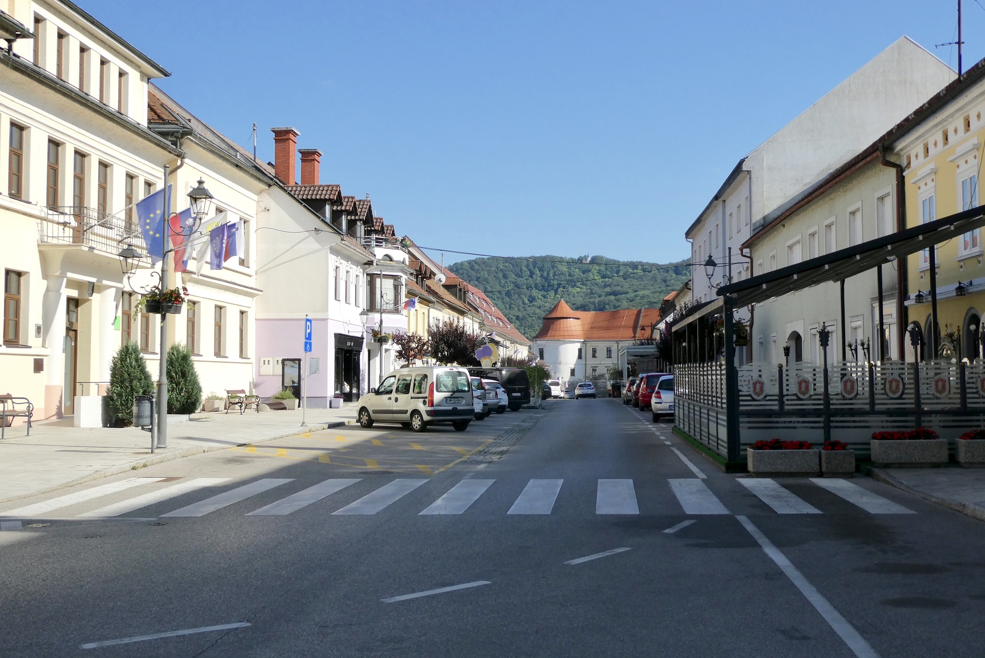 The route got a little bumpier after Kostanjevica na Krki, with a series of short up and downs. But it wouldn’t be Slovenia cycling if there wasn’t at least one challenging climb in the day, and today’s route featured two that topped out above 17%. The first was just past the small town of Podbočje, dropping me back down to a lovely stretch on gravel just alongside the Krka River. The second, smaller climb was just before crossing the Krka and entering Brežice. I was so glad to have save the hills for last, in the heat of the day! I easily found my hotel on the town’s main street and ordered a cold drink while waiting to be checked in. When checking me in, the hotel clerk asked what made me decide to cycle around Slovenia – “Mealnia?” he asked. I almost fell over!