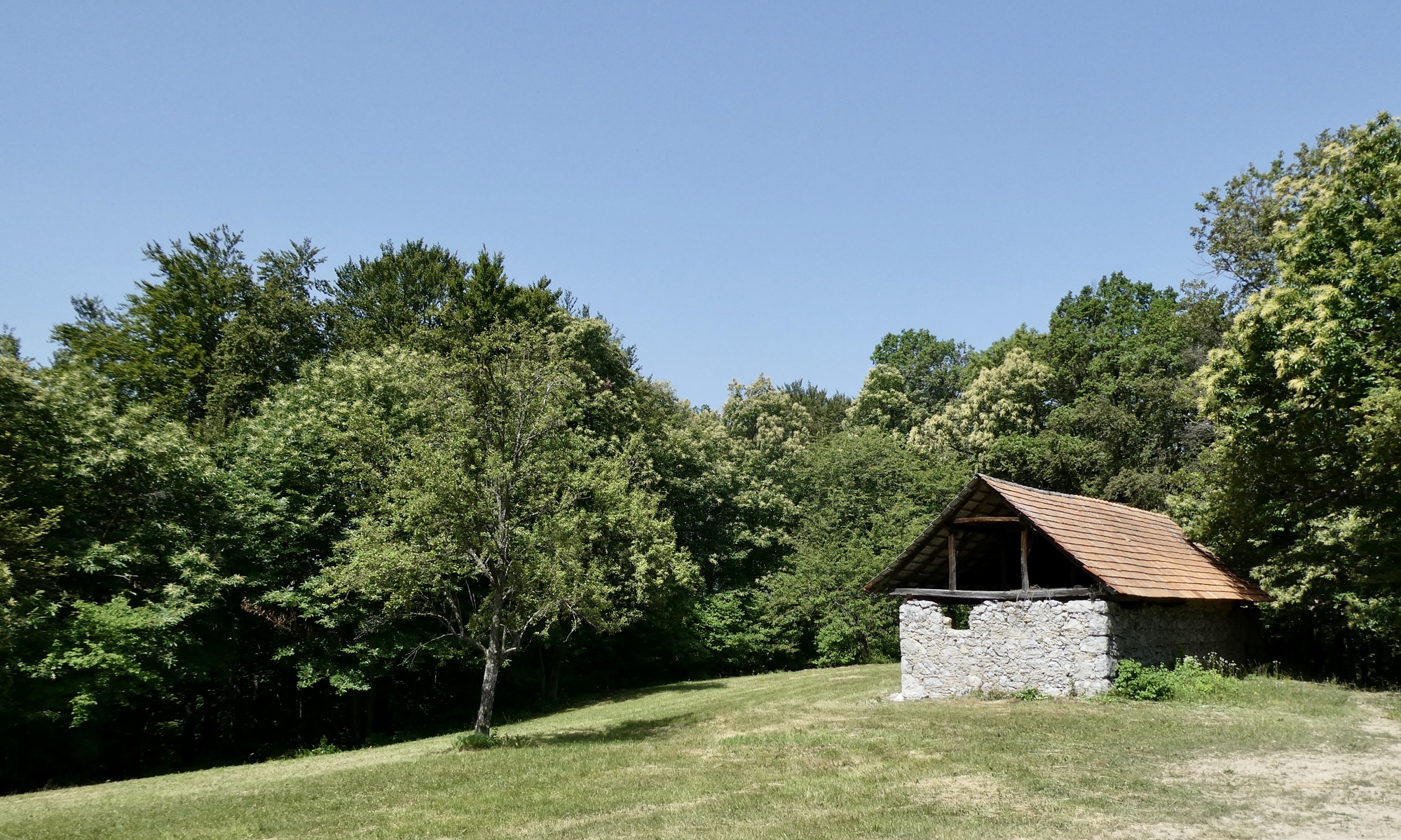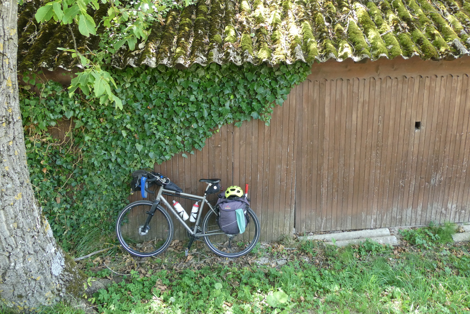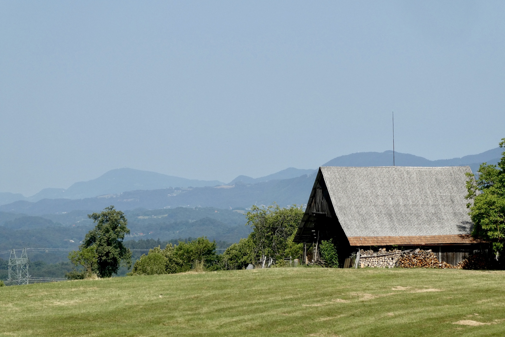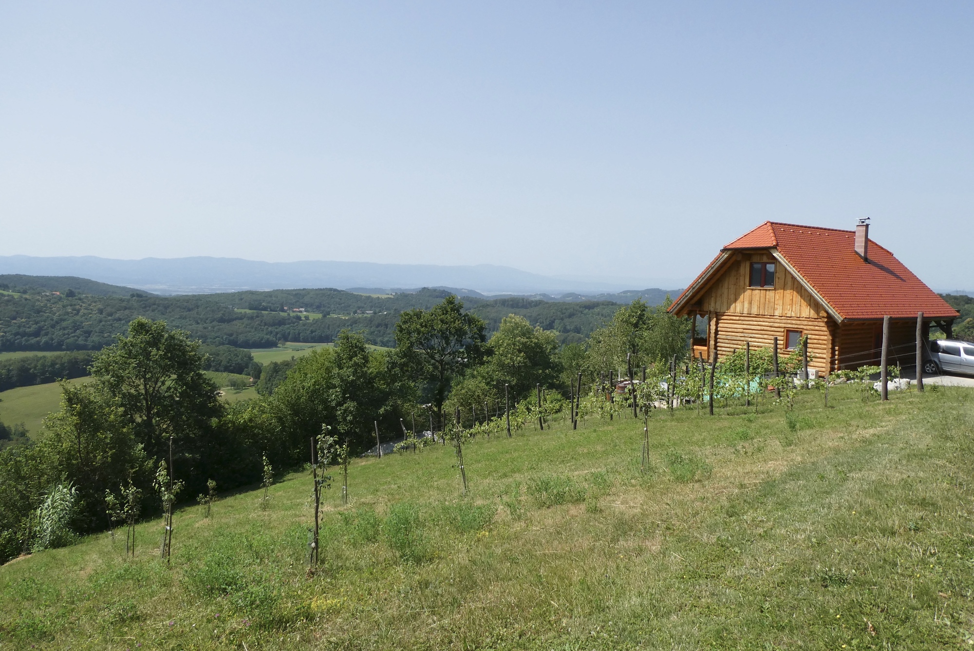 The first few miles were pleasant riding as I left the Sava River Valley and began wending my way through the lower hills. From then on, the ride was mostly up, with some terrifying downs, and delightful stretches in between. The scenery was storybook - steep slopes sprinkled with farmsteads and covered with assorted row crops, fruit trees, or vineyards - each a bit different but largely the same. The hillsides steepened as I made my way north, and some sections were brutal, especially in the hot sun. As they day progressed, hike-a-bike and and/or rest stops became more frequent, with almost any patch of shade a welcome excuse for a brief stop.
