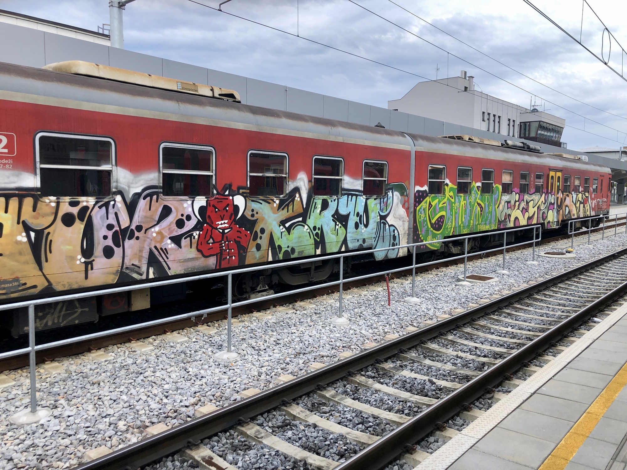 Vivien George and I arrived at the Maribor train station early, in plenty of time find our way to the correct platform and sit anxiously anticipating the rush and confusion of loading bike and gear onto the train before it sped down the tracks. The first hurdle – getting up to the right platform – was a piece of cake due to the presence of an elevator. Sitting on the platform, I checked out the other trains waiting at the station, hoping there might be a clue as to which end of the train they put the bike car. It was of little help – the cars on one train were covered in graffiti, and the only symbols on the second train were those prohibiting rollerblading and ice cream. Lucky for me there were no ice cream stands at the station.