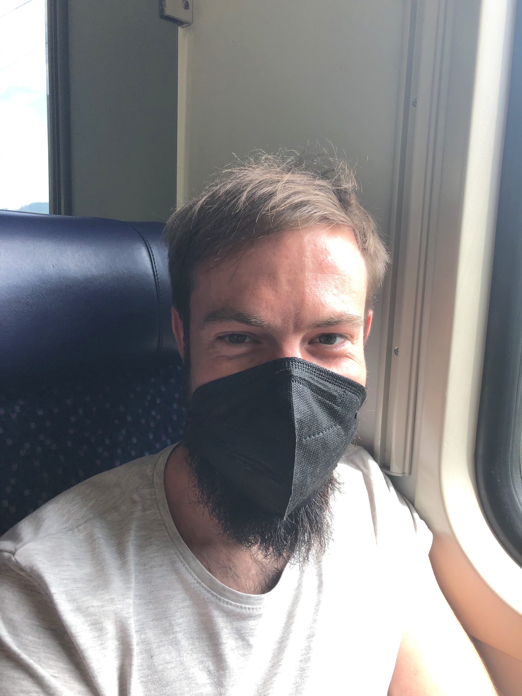 About five minutes before the train was due to depart, a train official approached Vivien George in search of her owner. I waited where he indicated the train car would stop, but when the train pulled into the station, the car with the bike logo passed me by. I hurried toward that car, but the official called me back, indicating I was to put Vivien George in a special car, one just for bikes. There were no stairs, just one small step located just under the car floor, about 30 inches higher than the platform. We hoisted up Vivien George with the help of train personnel, then tossed up my panniers and pulled myself up – within a minute the train was heading down the track. The car was empty, save for a few other bikes that were either hung on hooks or leaned against the rear wall. I leaned Vivien George against the side wall where there was a carabiner that I fastened to her rack, hoping it was sufficient to keep her from falling over/rolling down the car. I then took my panniers and found a seat in the nearly full train.