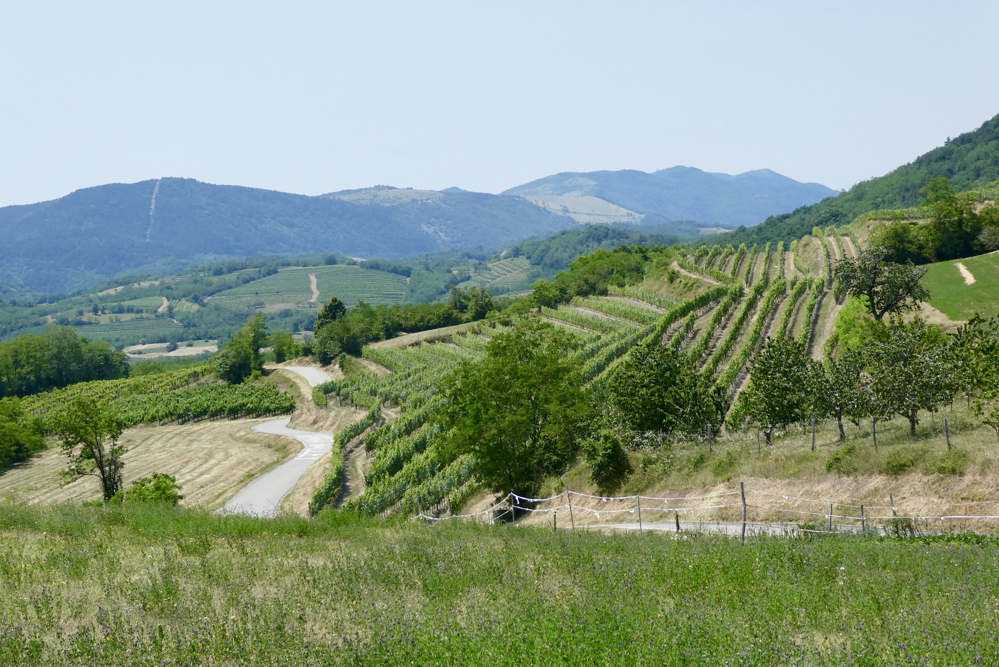 Slovenia has several wine regions that are well worth visiting. The Vipava valley is tucked between the Trnovo Forest and Karst Plateaus, not far from the Italian border. It has a more Mediterranean feel, whereas the wine region of the Jeruzalem Hills in eastern Slovenia is lush and green, at least in late June. I spent three nights in each region had wonderful day rides on the extensive network of small roads that wind up and along the vineyards, past the small wineries and settlements that populate the hillsides. Both regions are highly recommended – and stay for the day rides!
