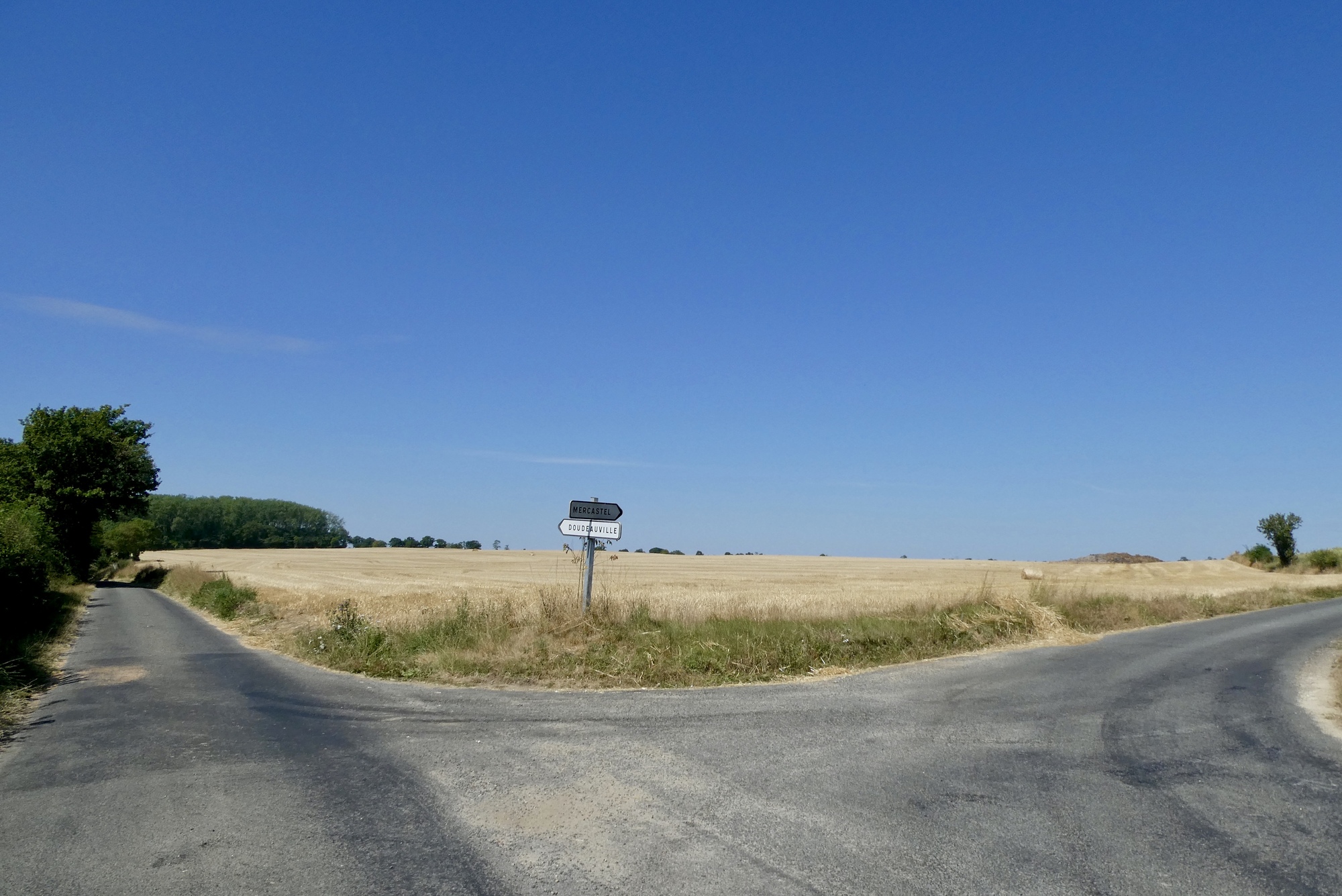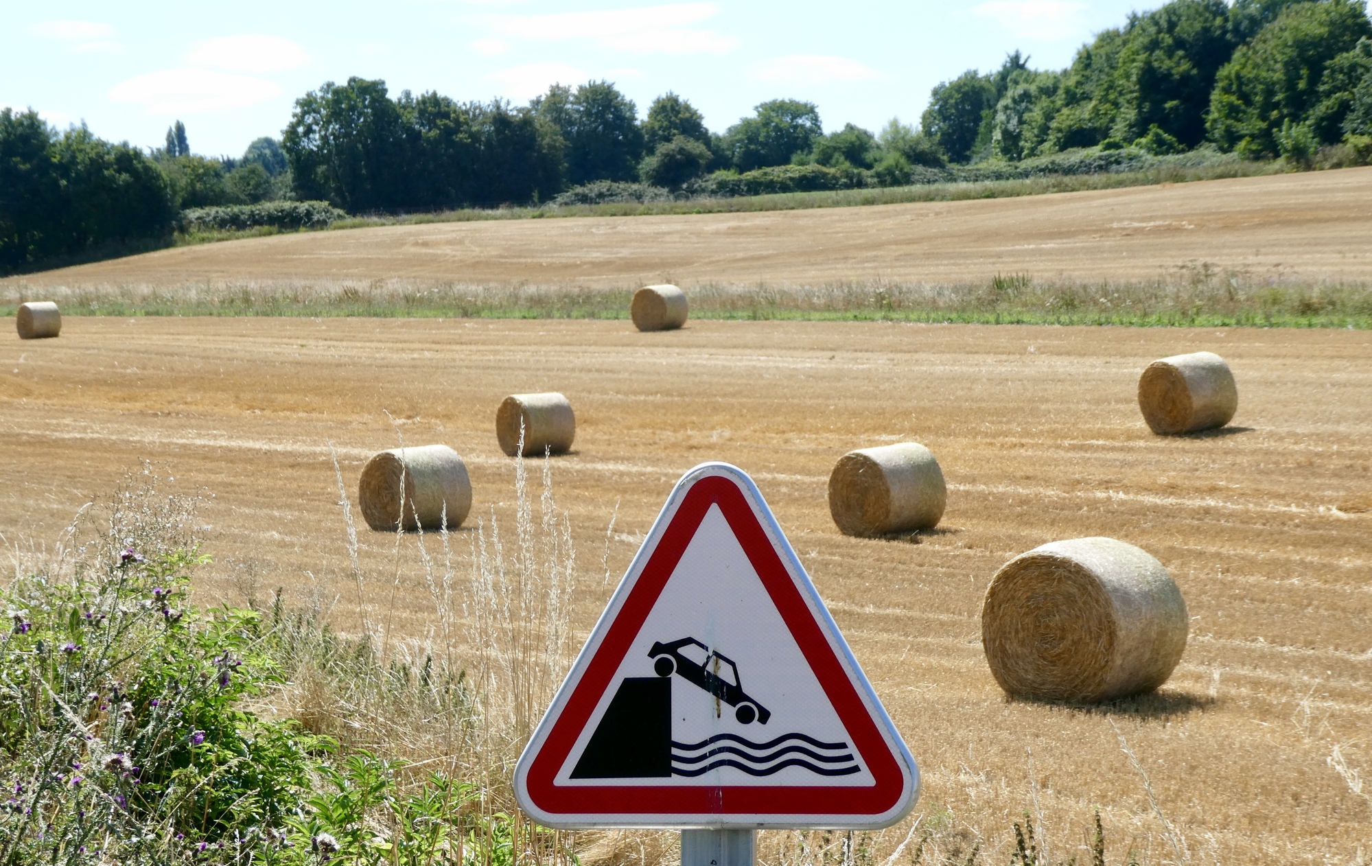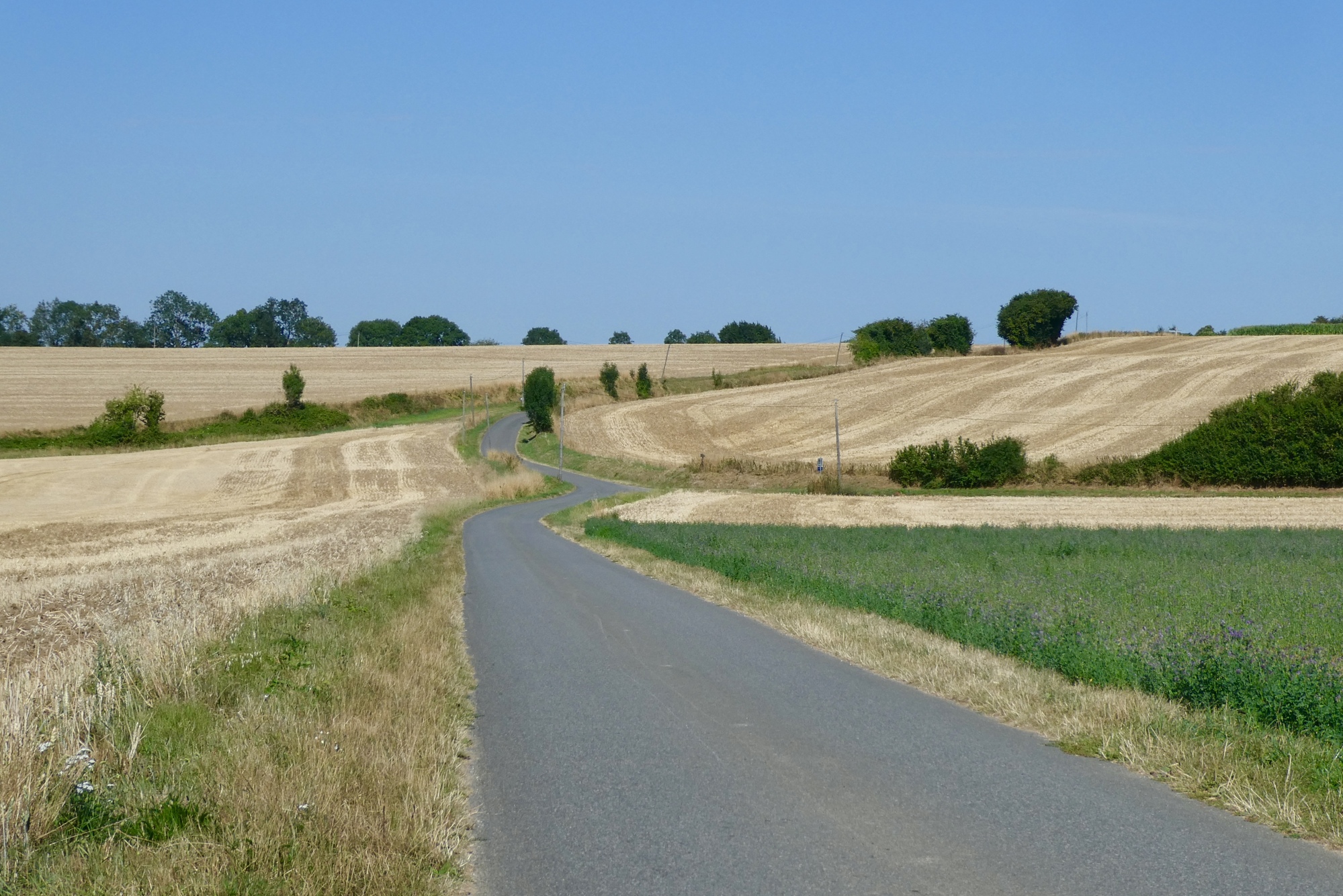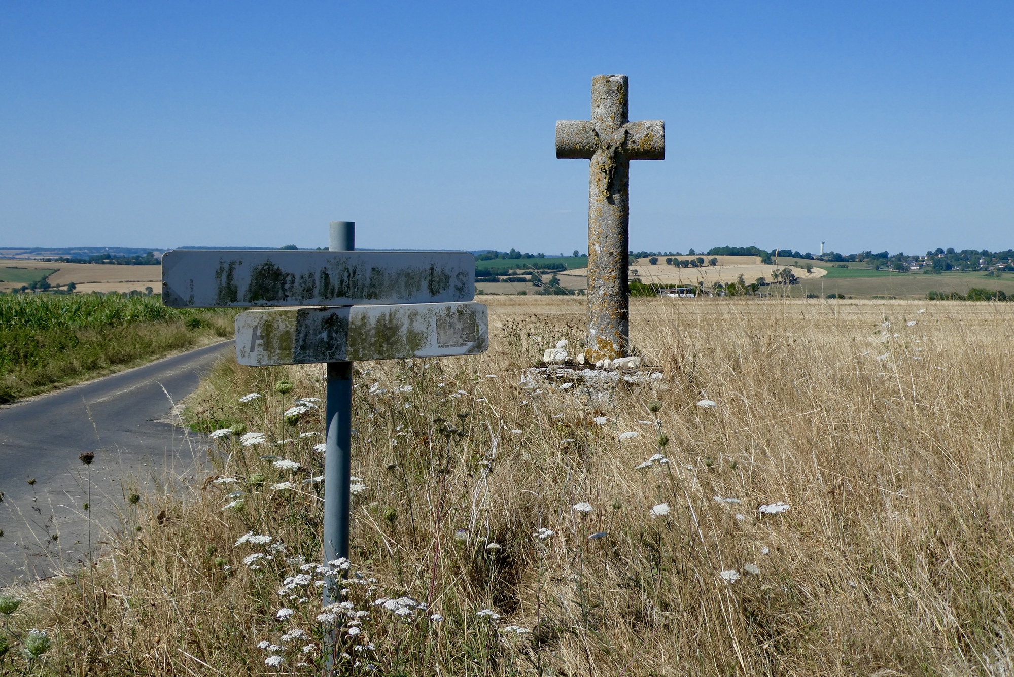 As I continued through the countryside, it was clear that the region has clearly suffered from the high temperatures and lack of rain. I passed fields of sunflowers drooping in bright sunshine and stunted cornstalks with furled or browning leaves. Though not wishing for rain to spoil my cycling adventure, the crops and soil were in need of good soaking.