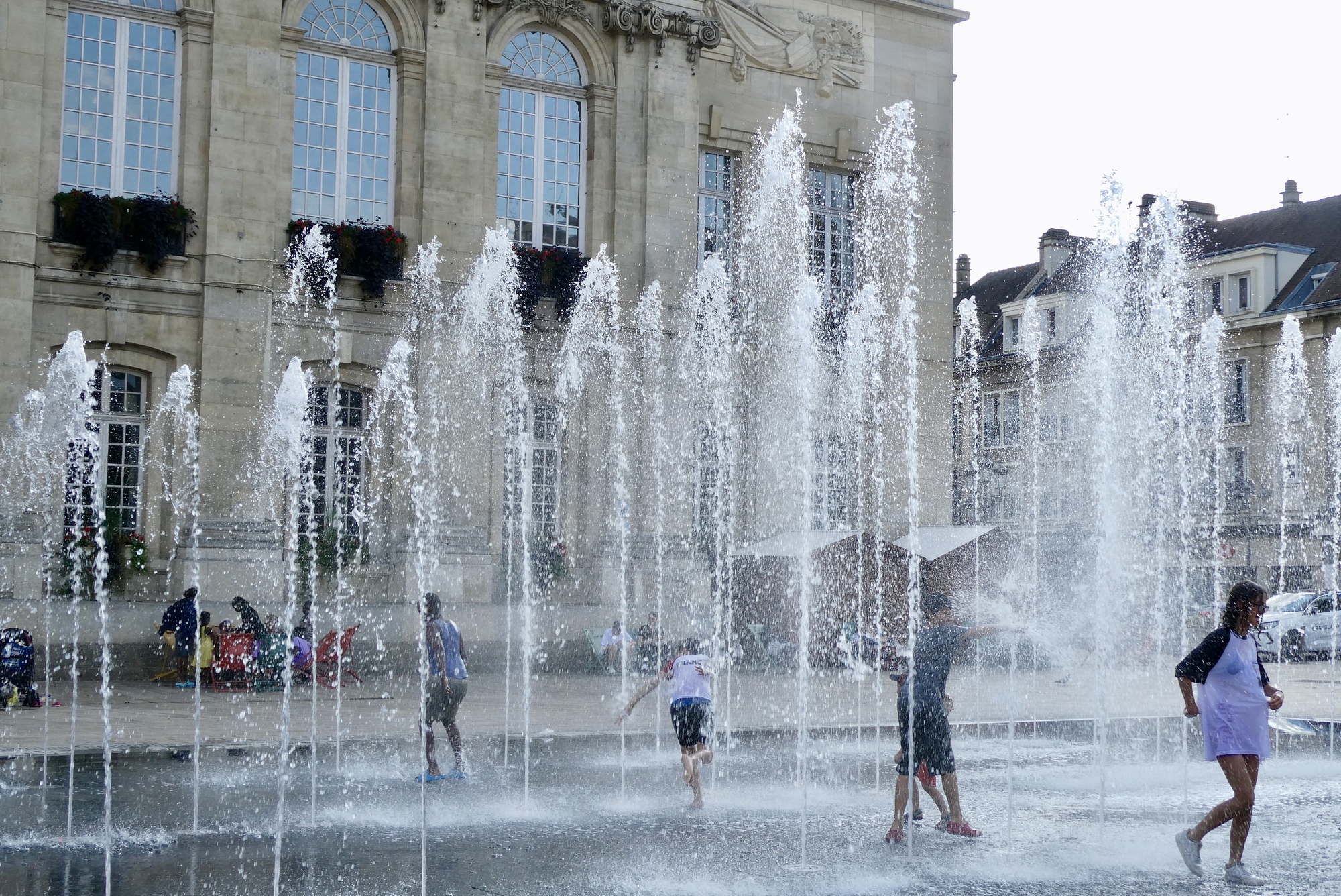 Playing and dancing in the town fountains - a wonderful summertime activity for the young, and perhaps young at heart