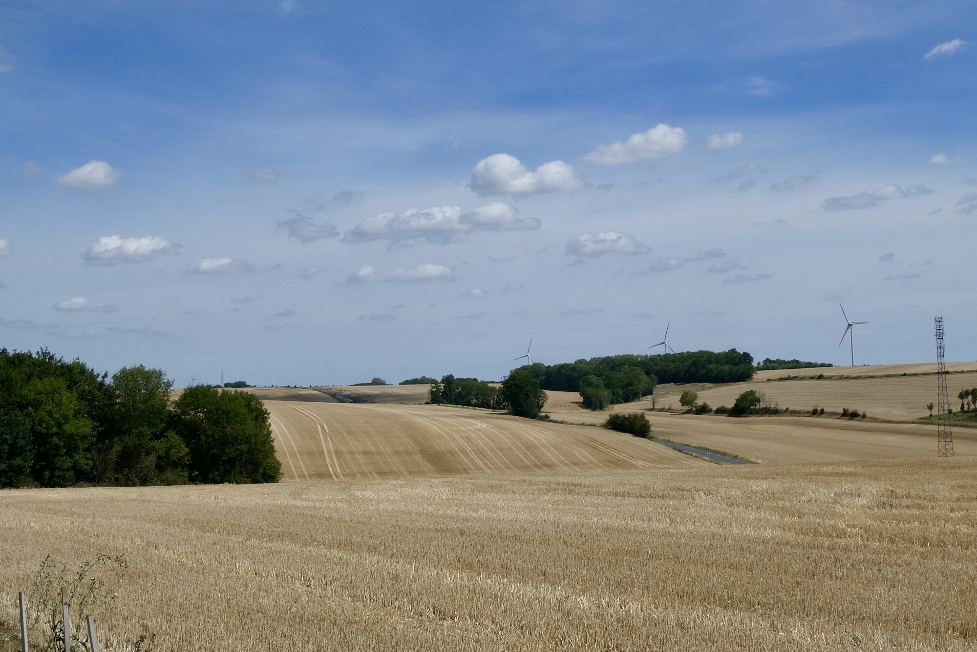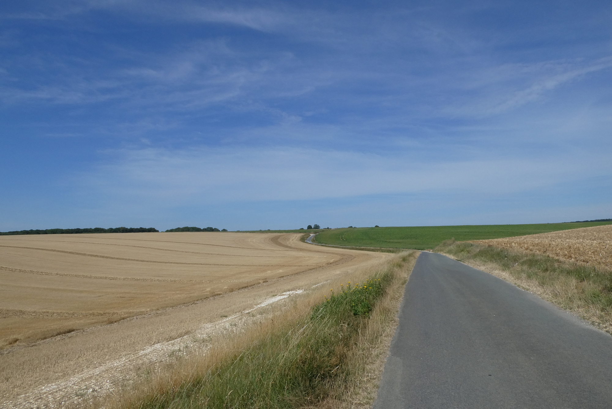 Today I channeled my inner Iowan, heading north to Amiens through expansive fields of grain along small lanes and quiet roads that were often not much wider than a rail-trail. Rows of windmills rose high, their blades propelled by my old friend, Crosswind, who showed up early in the afternoon. It’s not a landscape for everyone, but I took it all in and loved most every minute of it.