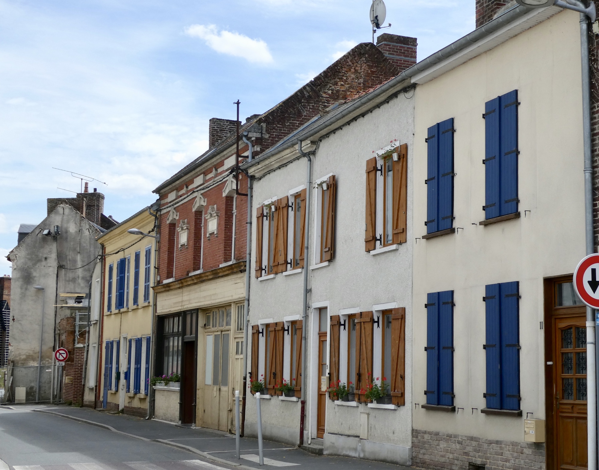The route took me through several small rural towns of the Oise and Somme Departments in the Picardy region of France. Almost every town had a church, a town hall and a school, but for the most part there was no central square or plaza. Rather, the towns were arranged in a single long line that stretched along the road. And it was not uncommon to see working farms or barns in the middle of town, almost as if the towns grew outward between existing farms. But while the towns were small and narrow, the fields reached across the horizon.