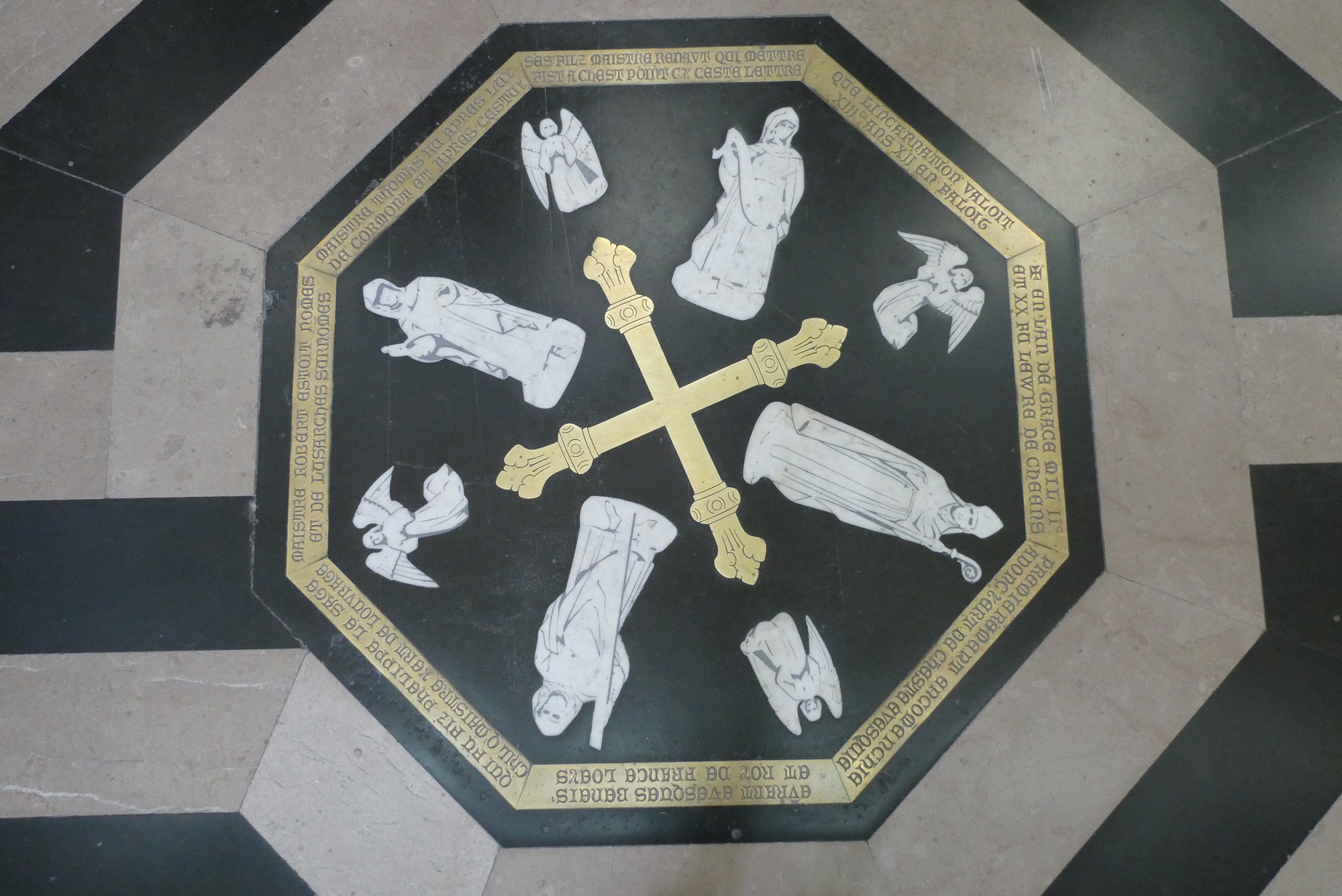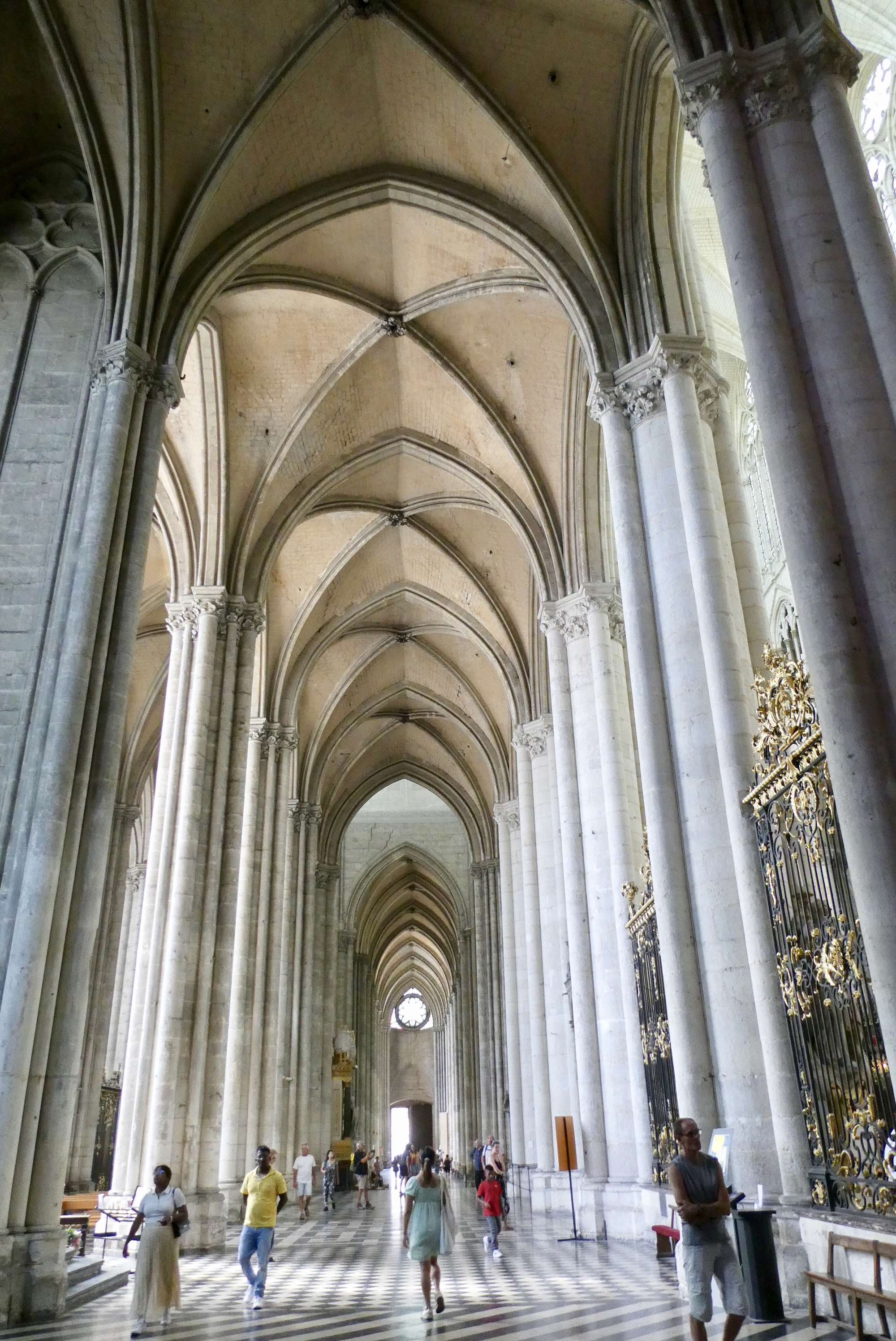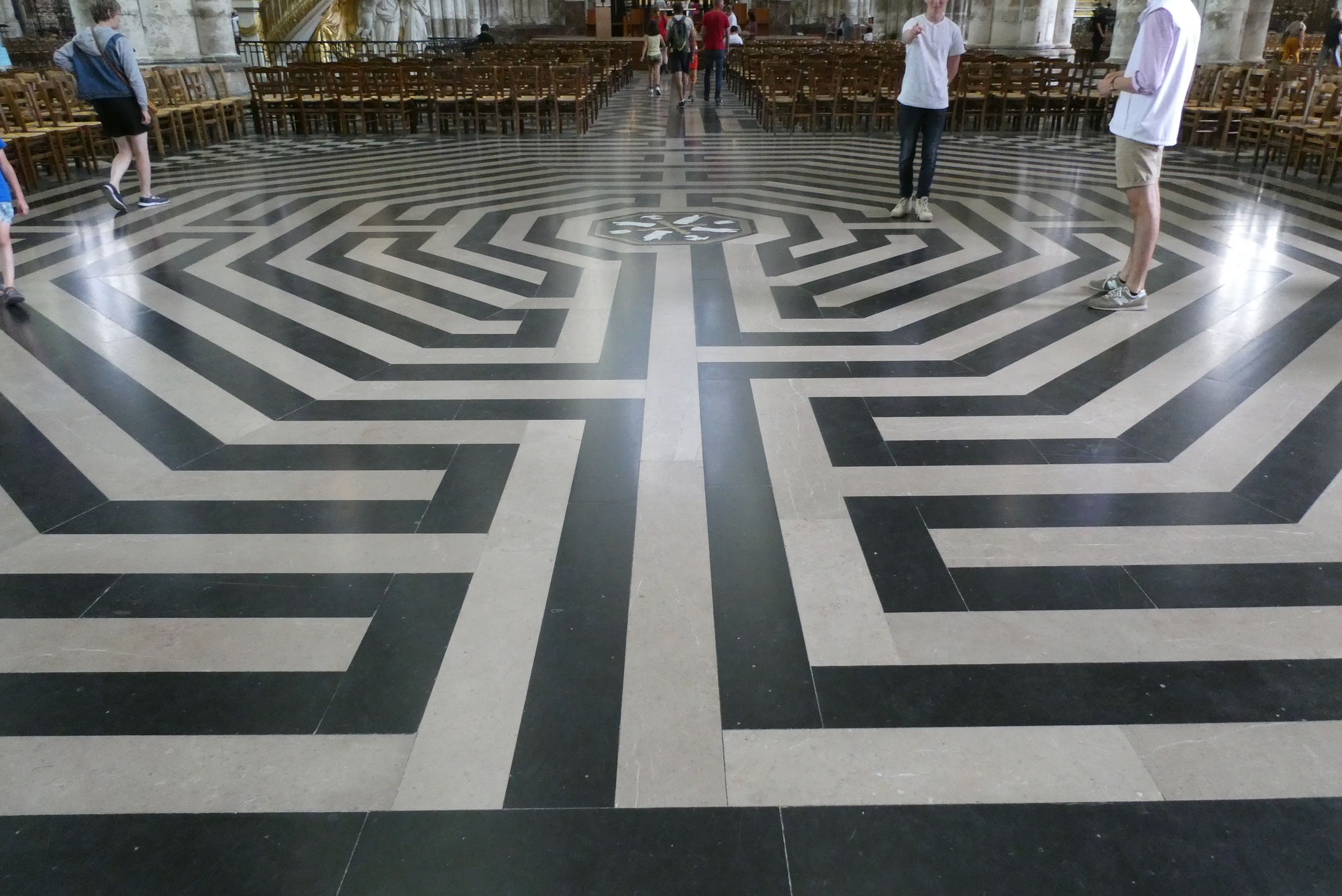 Labyrinths on the floor of the nave were common features of early Gothic cathedrals. The one shown here was made in the 19th century and is an exact copy of the 1288 original. While I was there, a young man was trying to engage visitors for an ad hoc tour of the cathedral, and one of his openings was explaining/demonstrating the maze-like feature of the floor