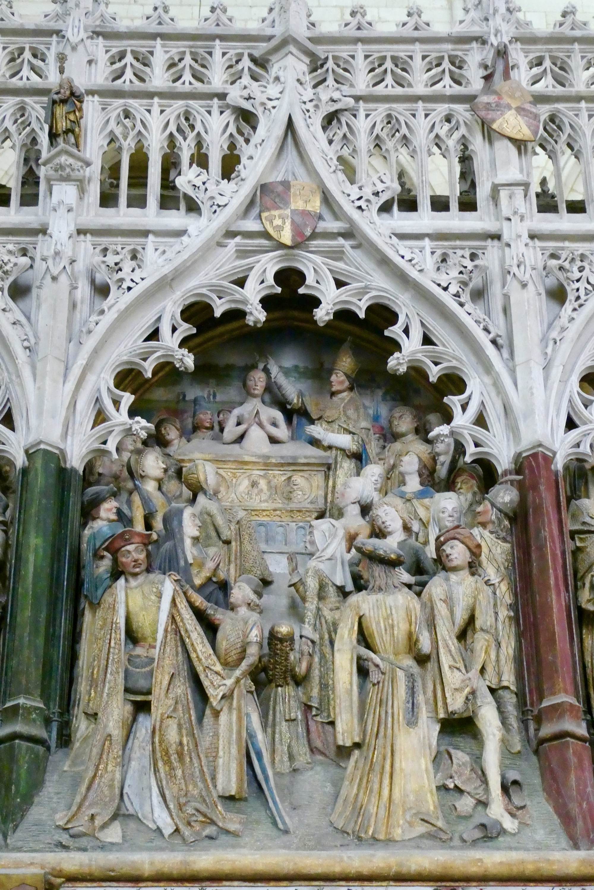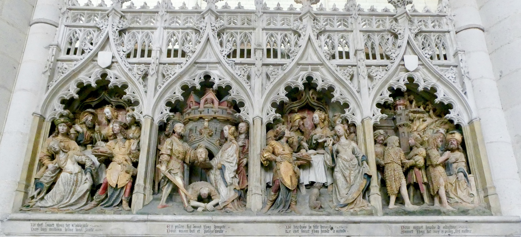 This sculpture depicts scenes from the life of St. Firmin as well as the tomb of Bishop Ferry de Beauvoir