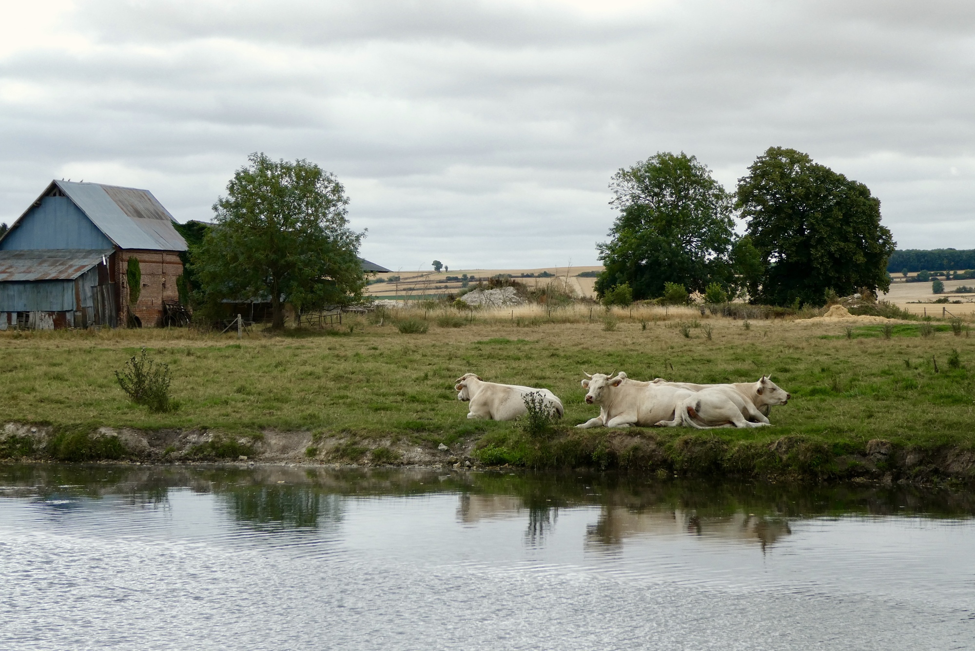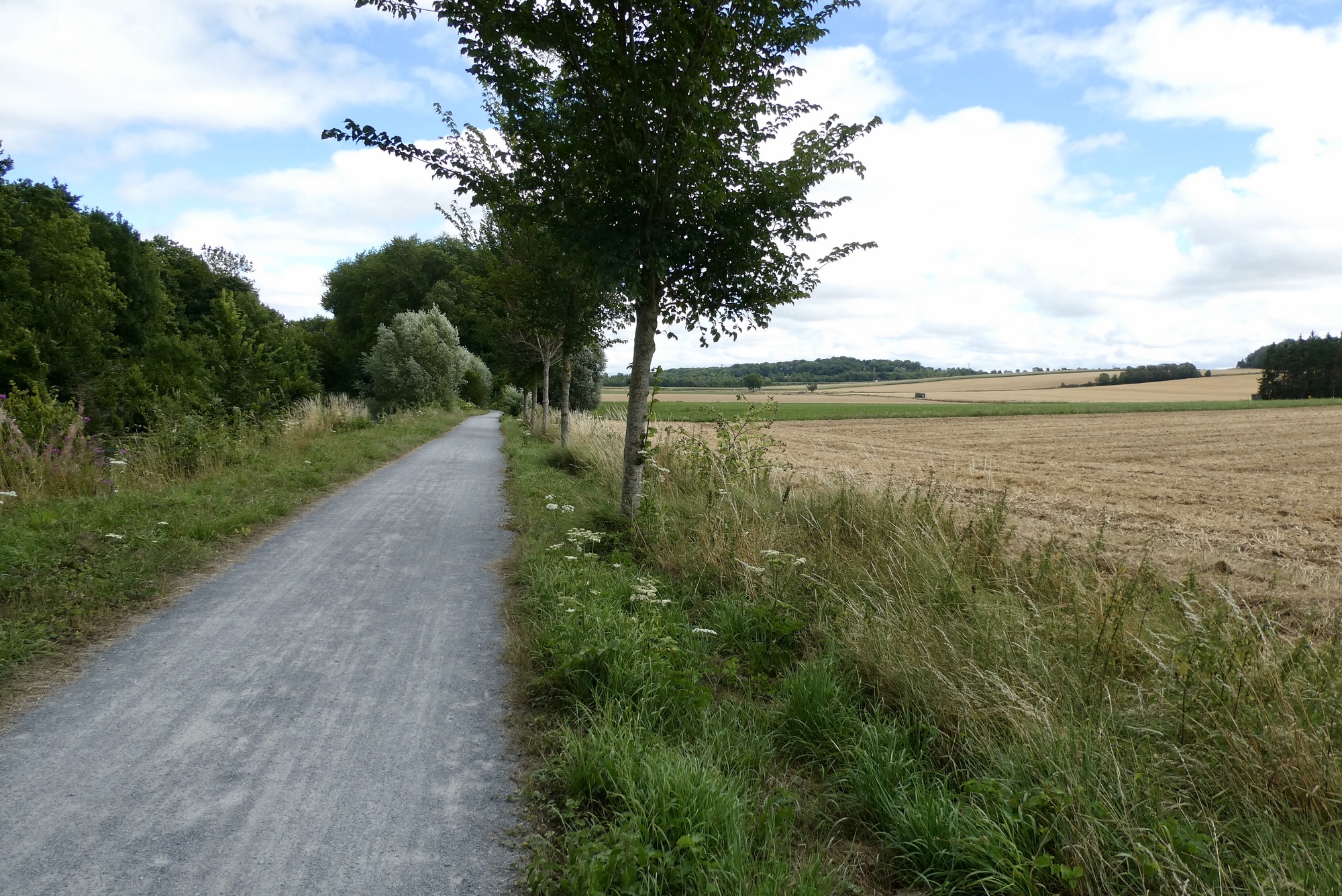 The day began a bit gray, gloomy and full of hiccups. It started off in a search for an open bakery or store to stock up on my daily provisions - I’d forgotten it was a Sunday and the start of vacation season in France and so spent a fair amount of time cycling from one closed bakery to another. Once stocked up, I made my way to the Chemin de Halage and Somme Cycle Route that I would follow to Péronne, my destination for the day. The Chemin de Halage is a popular walking and cycling path and it was quite busy this Sunday morning, requiring a lot of dodging and weaving that slowed progress. Eventually I made it to the wider, less populated Somme Cycle Route where I was able to relax and start enjoying the ride.