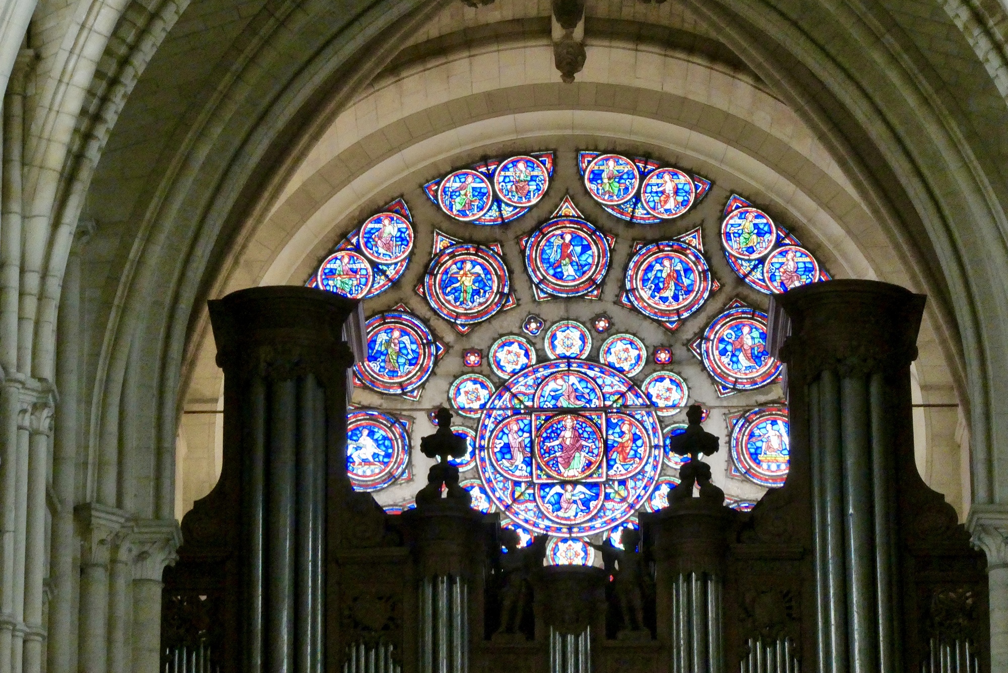 My first impression on entering Laon Cathedral was how light, spacious and open it was. On thst sunny day, the interior was washed in light that reflected off the white stone. The entryway was quiet and uncluttered by the usual assortment of votive candles, racks of information packets, and throngs of tourists. Yet despite the large expanse, I felt a sense of warmth and comfort.