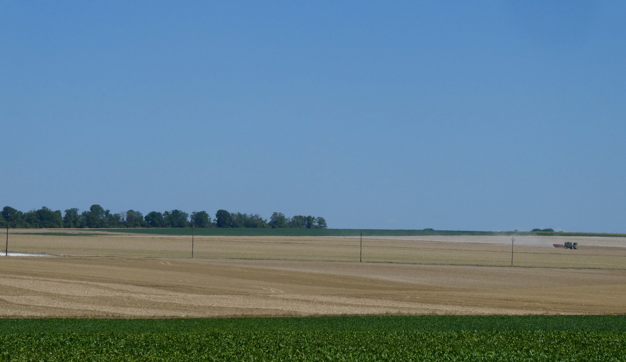 It was predicted to be another hot day, with temperatures even higher than yesterday. In consideration of the heat, I’d plotted a route to Reims that minimized changes in elevation, thinking that a slightly longer, flatter route would make for a shorter day in the blistering heat. It may have been faster, but by the end of the day I regretted my choice and yearned for the undulating but shaded terrain to my west.