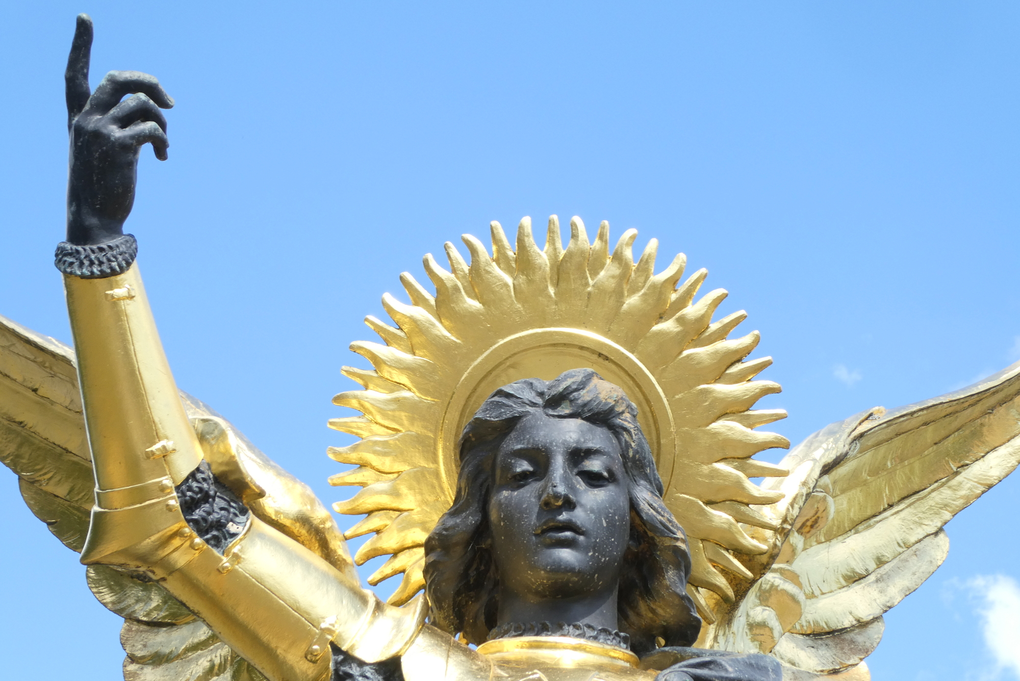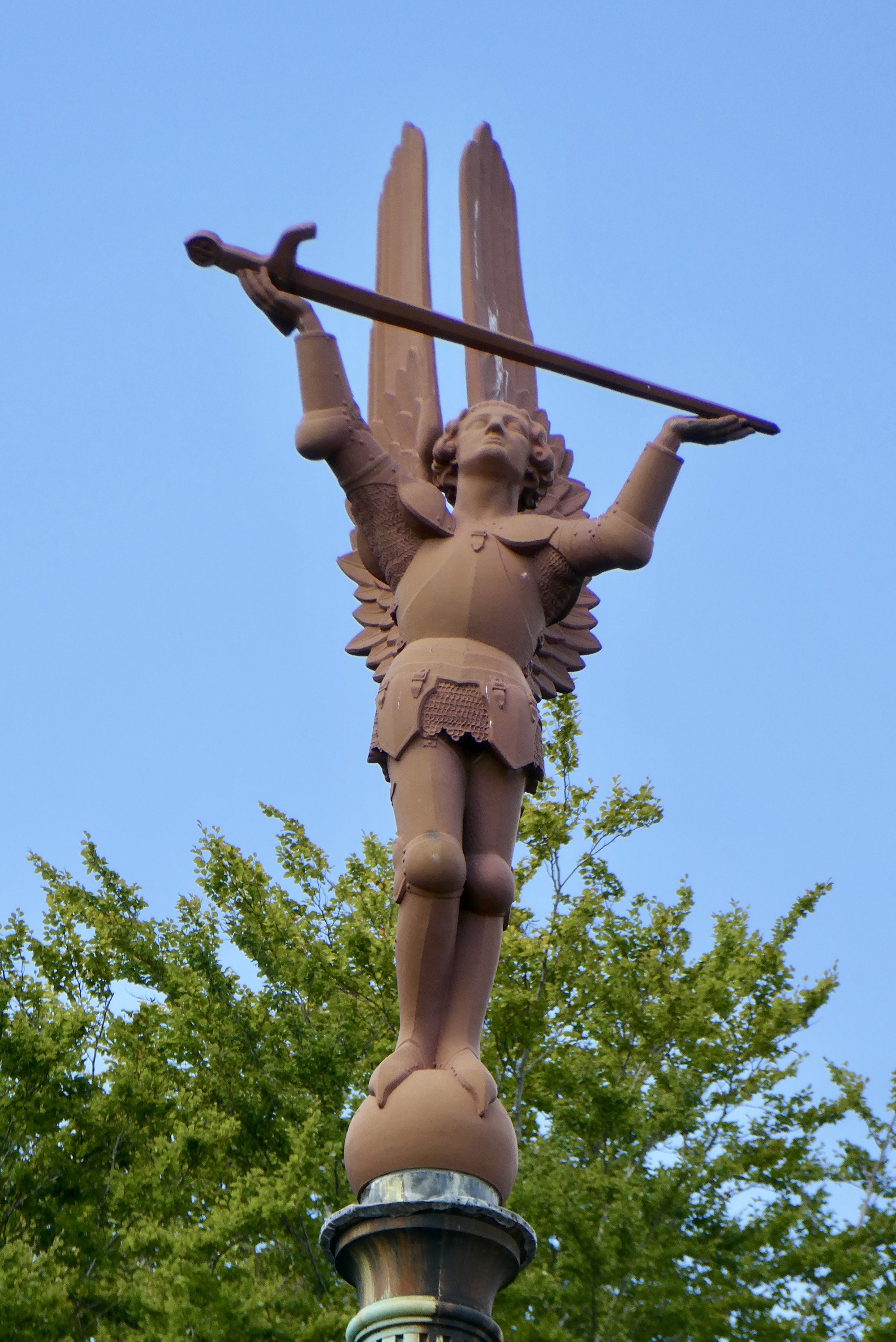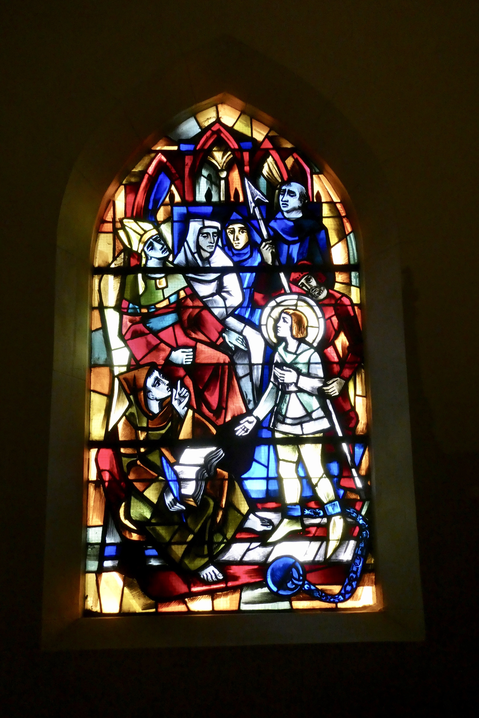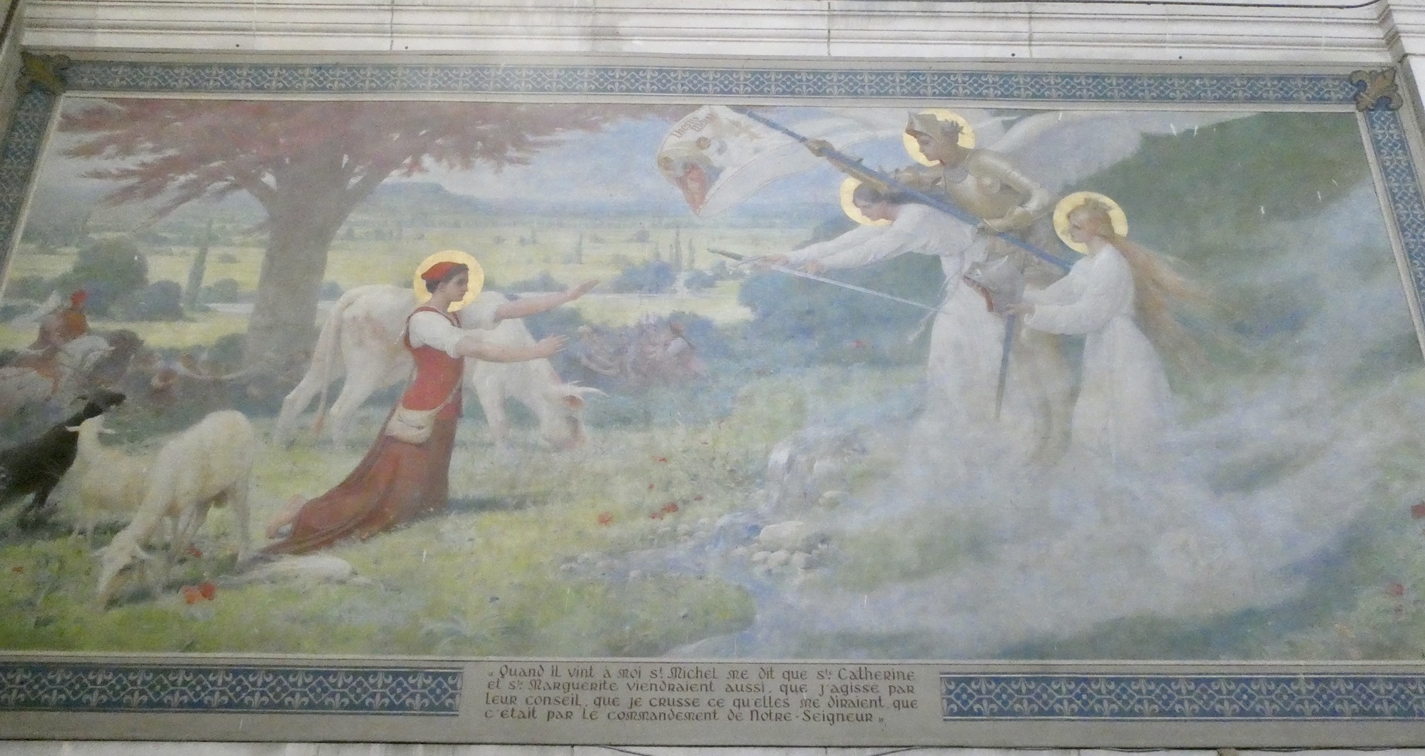 One of the murals telling the story of Joan' life - this one depicts her vision of Archangel Michael, Saint Margaret, and Saint Catherine who compelled her to visit Charles VII and help save France from control by the English