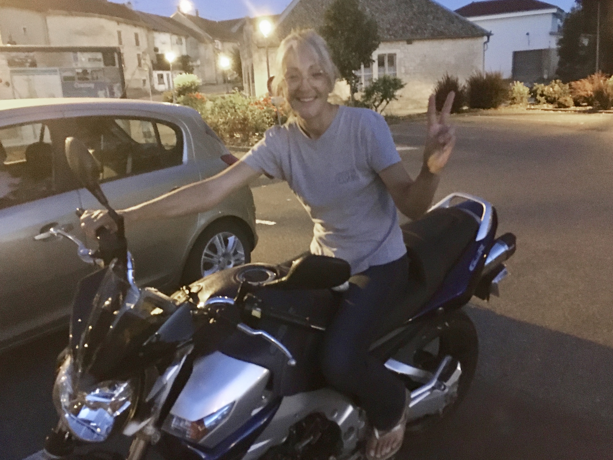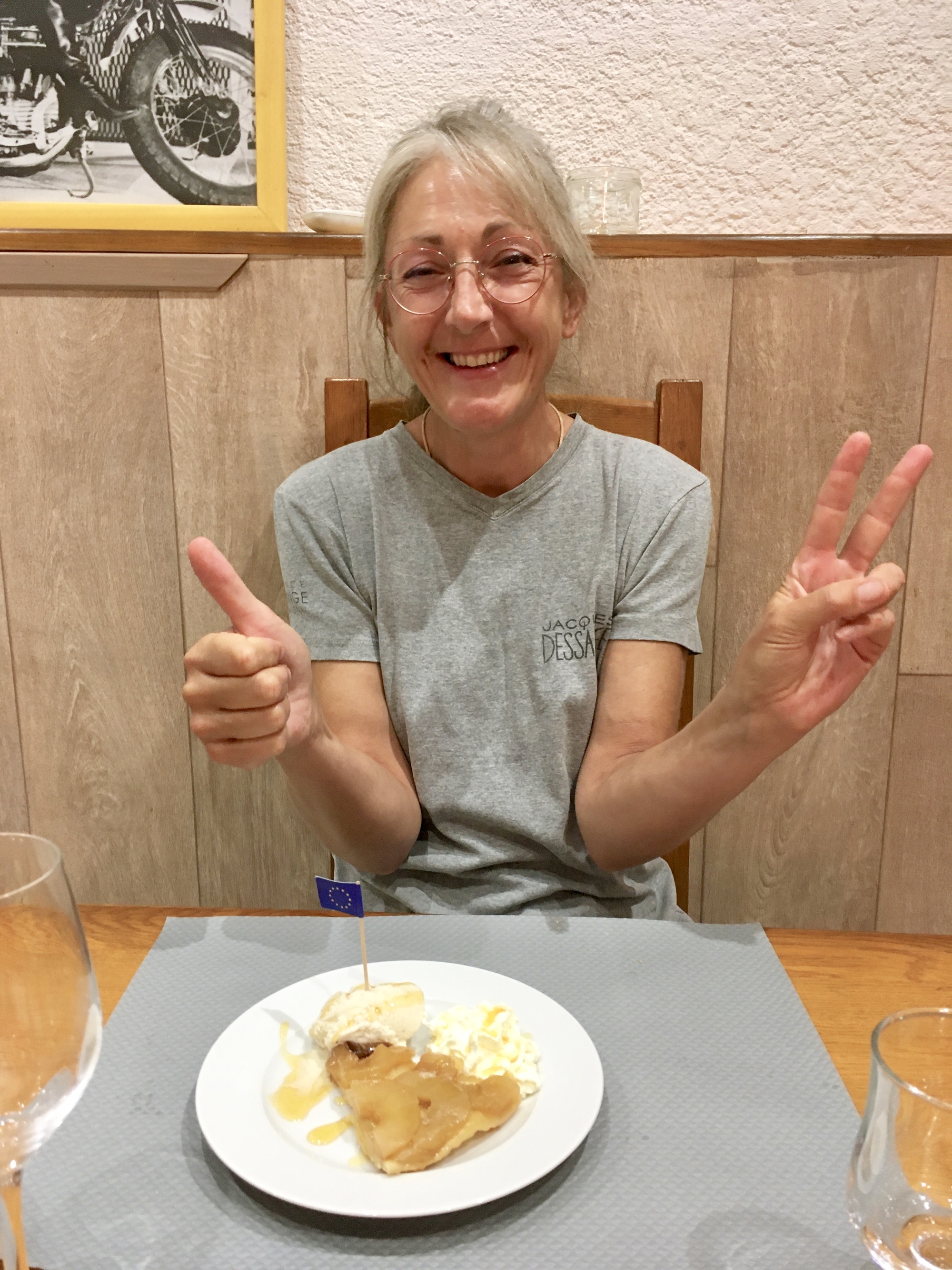 It turned out to be a delightful meal – the food was passable, but my unexpected dinner companion, Carole, was a delight. She was traveling alone on her motorcycle, on a two-day holiday to celebrate her birthday, which was today. Two women on separate two-wheeled adventures – of course we had a lot to share! Though she spoke virtually no English, we managed with my rudimentary French and the occasional help from Google Translate. She is quite the adventurous spirit – motorcycling and rock climbing give her thrills while yoga centers her and brings balance to her life.