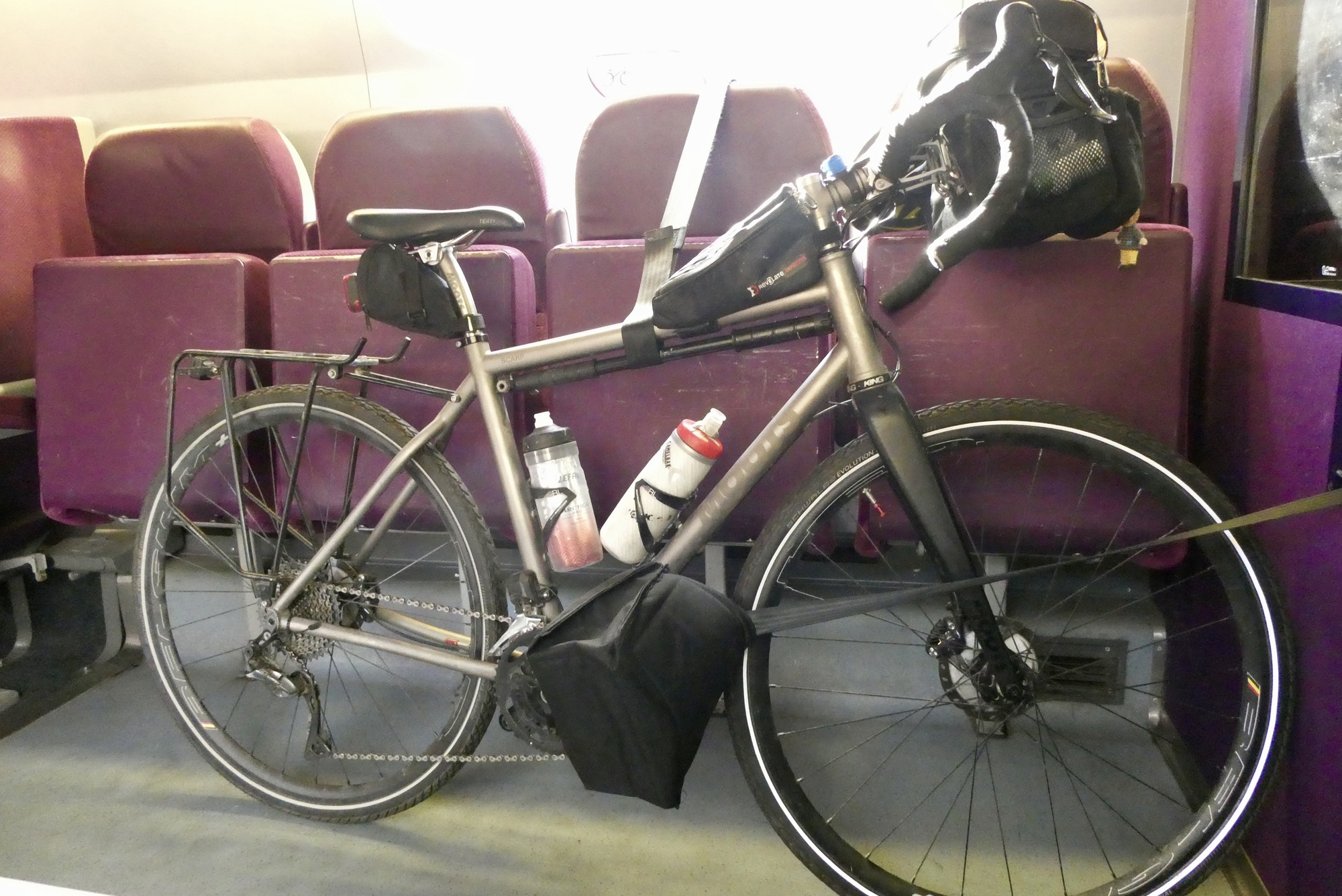 The tour started with a train ride from Paris to Neufchâteau followed by a short bike ride to Domrémy-la-Pucelle. As usual, I enjoyed the early morning ride through the streets of Paris and arrived in plenty of time for my 8:38 TGV to Nancy. It was my second visit to Gare l’Est, and the familiarity with the layout and entry kiosks eased the stress of getting to the train. And I was thrilled that the this TGV bike car was the old-fashioned sort, with Vivien George strapped in against unoccupied seats in what was once the handicap space. I changed trains in Nancy, using the always welcome elevators to whisk us down and up to the correct platform. We arrived in Neufchâteau around noon, and after a trip to the local bakery for lunch provisions we hit the road, heading north on the Meuse Cycle trail. I may be getting more accustomed to bike/train travel, but the start of this trip was really a piece of cake.