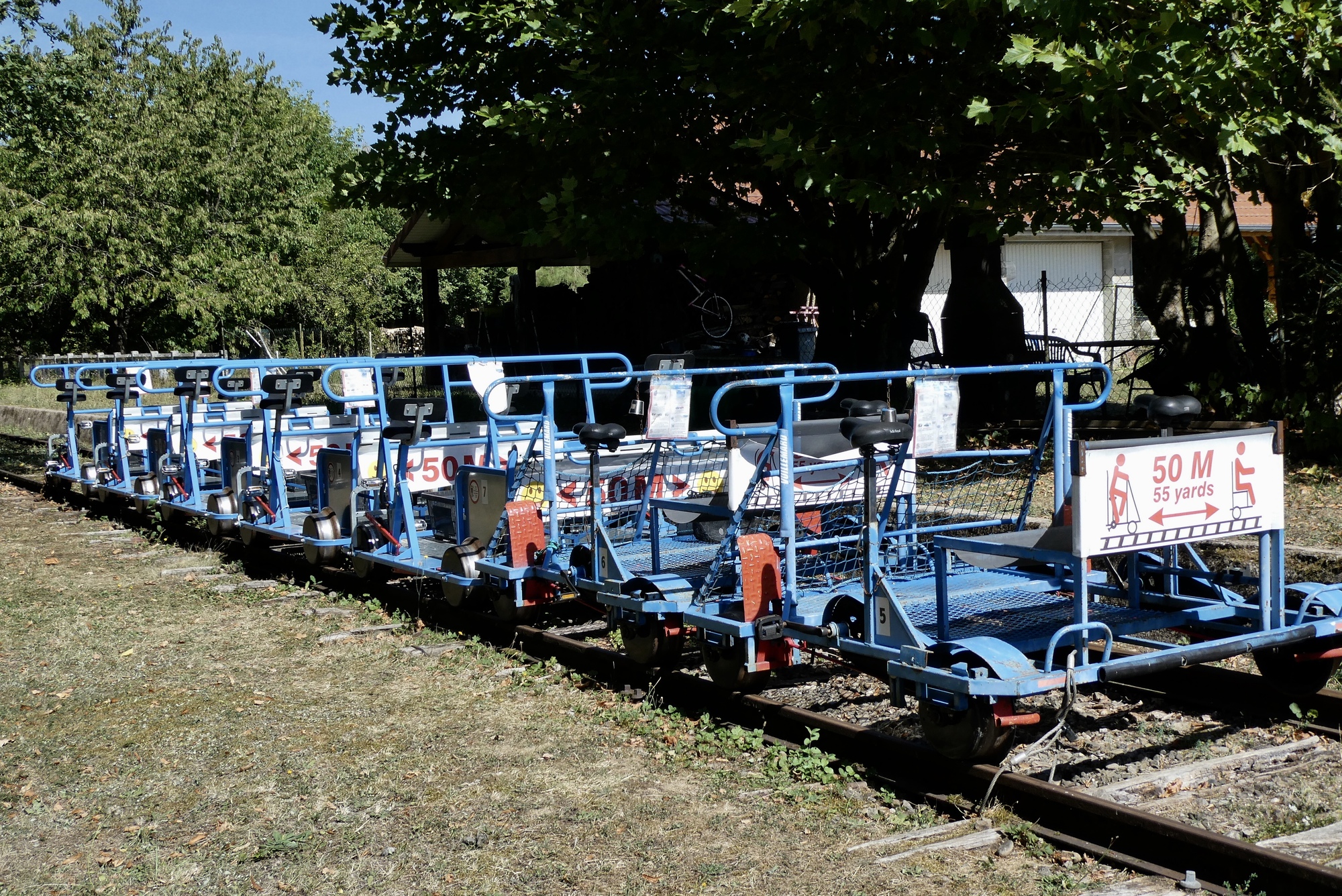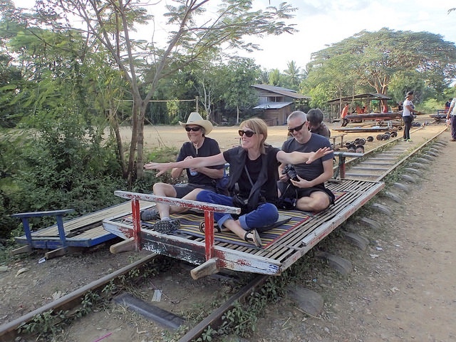 One of the more interesting places I passed was Velo-Rail, a business where your can rent a bicycle/carriage combination that you push along an abandoned railroad line. The place was closed, but I nosed around a bit as the concept was one I'd first seen in Cambodia several years ago. I was on a two-week guided tour from Saigon to Bangkok and we were treated to a ride on The Bamboo Train In Battambang, Cambodia. The “train car” consisted of a rectangular bamboo platform sitting a pair of rail wheels and powered by a small engine operated. As passengers, we sat on the platform while the "conductor" controlled the engine, sending us down an abandoned rail line at up to 40 km/hr. The fact that the rails were often bent and/or disconnected only added to the thrill of the ride. I imagined the Velo-Rail would not be nearly so much fun.