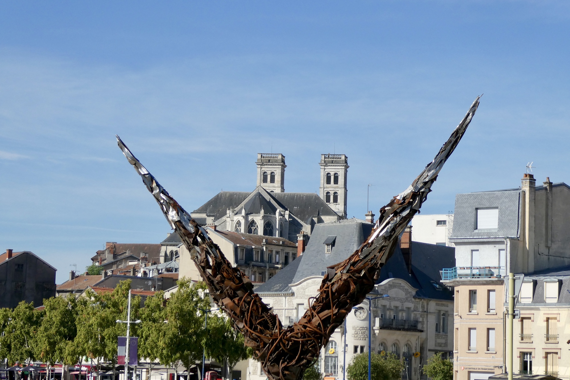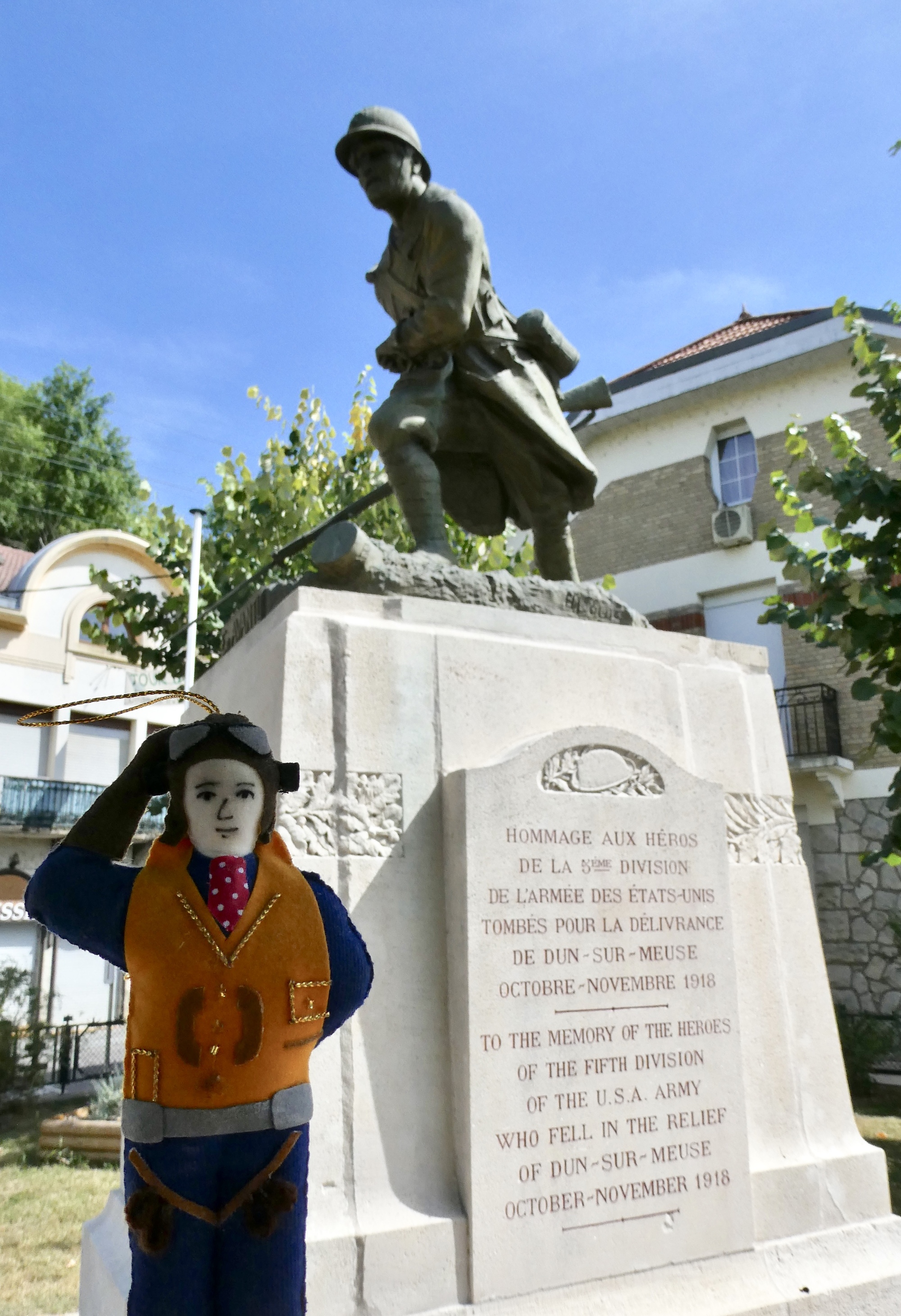 Well, Dun-sur Meuse turned out to be a little further than I expected. And by the time I reached the supermarket, it was closed, as was everything else in town. While I did not find water, I did find a WWI memorial honoring American soldiers of the 5th US Division who died freeing Dun-sur-Meuse in 1918. The monument was adjacent to the Pershing Memorial Bridge, which was built by the Society of the Fifth Division to honor the 5th US Division. The two memorials were physical reminders of how WWI impacted this region, yet all day the events of the war still echoed throughout the region, in both the small towns and countryside.