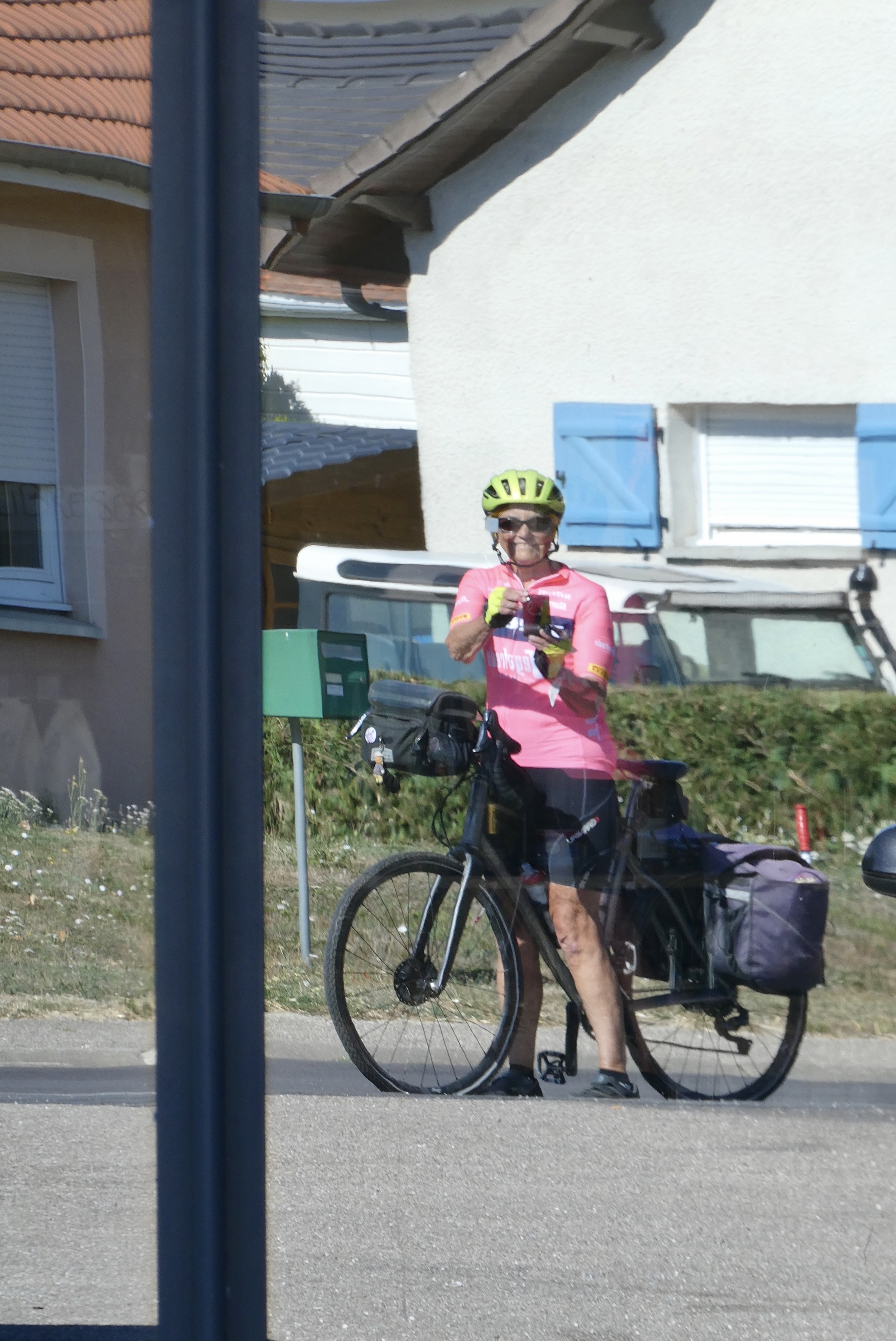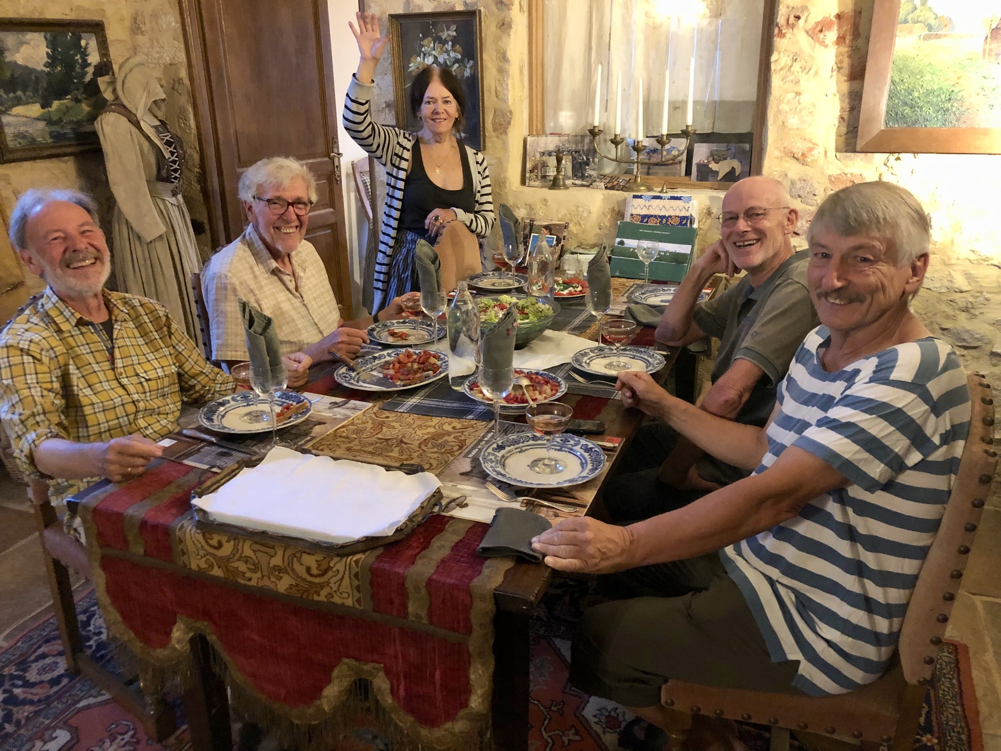 Lisa gave me a big welcome when I arrived at Maison des Beaux Arts, described as a “therapeutic house without the therapy.” It is her home that she shares with others – be it cyclists seeking a room for the night or groups wanting to play her extensive collection of musical instruments. For cyclists, she provides a hearty and healthy meal at a shared table – a family dinner for those on the road. On this night, it was a group of six – Lisa, me, and Berthold, Norbert, Peter and Michael, a group four German cyclists who had been taking annual tours since 1978. It was an extraordinary meal – the food was wonderful but the conversation and camaraderie were outstanding. Though we were a mix of nationalities, we were the of same vintage and so reminisced and pontificated on the past, present and future states of life – for ourselves and for the world. Berthold strummed the guitar and the evening ended with Lisa singing Schubert while accompanying herself at the piano. Fantastic.