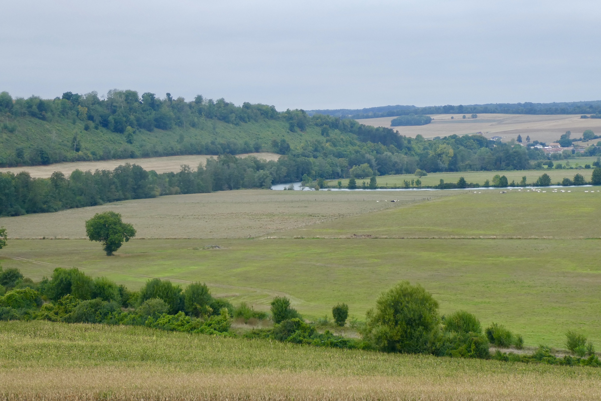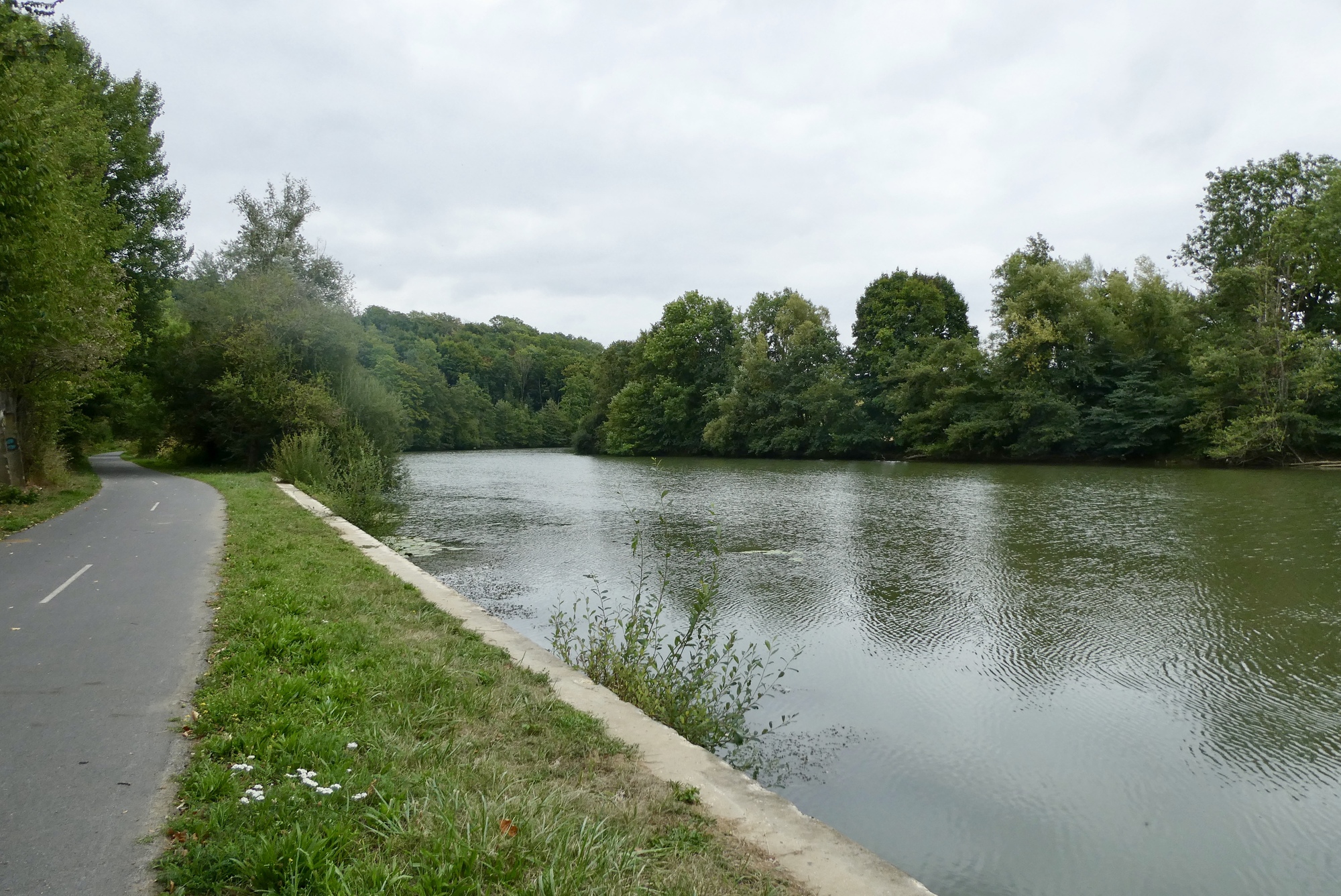 I didn’t stay with the boys for long, detouring into Stenay to pick up some provisions at the bakery – no sandwiches but I did get a pain au raisin. Due to the possibility of rain, I considered taking a direct route north to Charleville-Mézières on D30, bypassing two loops of the official Meuse River Cycle Route. In the end, I opted for the loops and was amply rewarded. The first loop on D30B followed the west bank of the river as it wound its way north 0n a car-free road that curved up and down through fields and woodlands. It was such an enjoyable ride that there was no hesitation when I rejoined D30 – a quick hello and good-bye and then a turn onto the D30C loop.