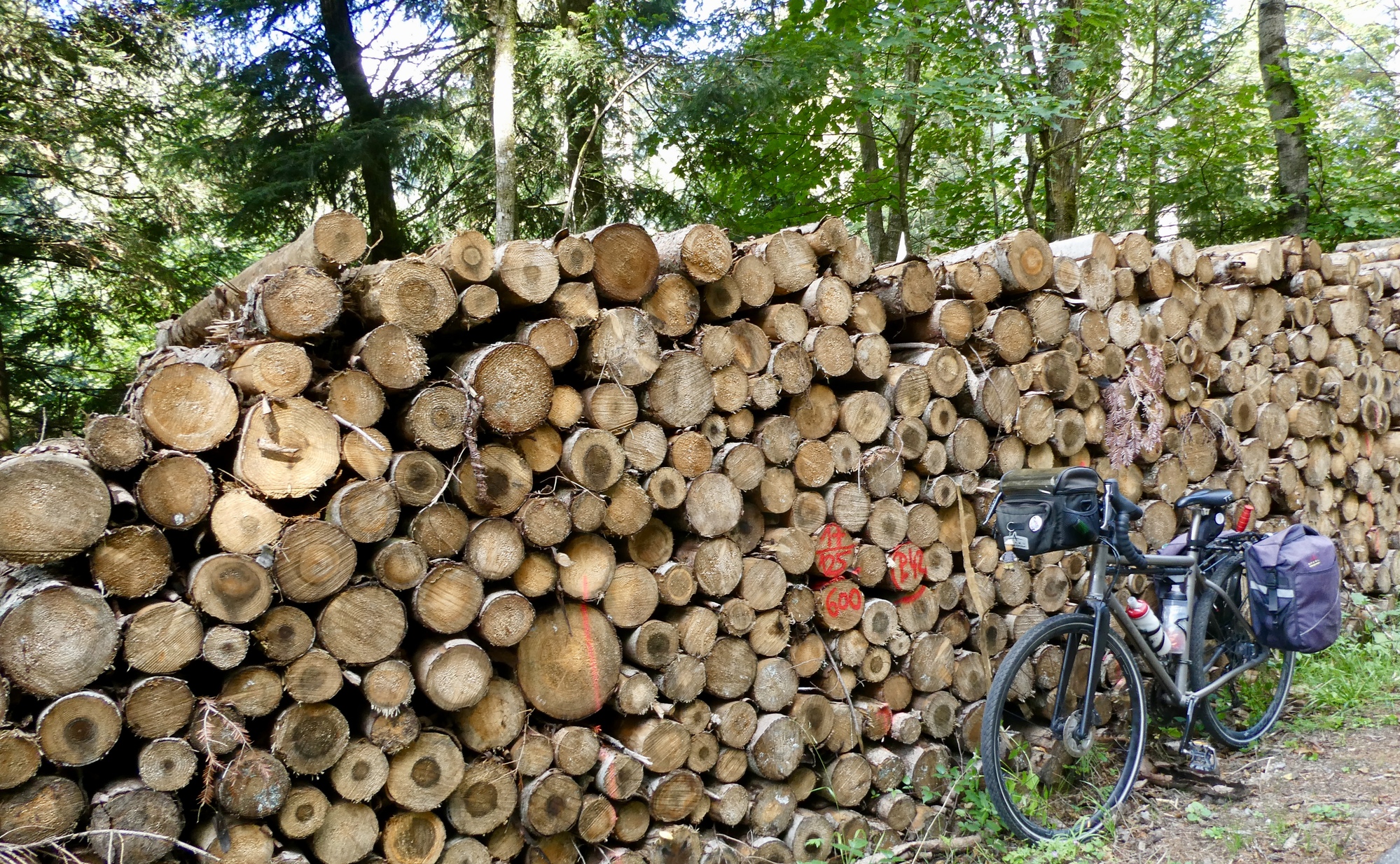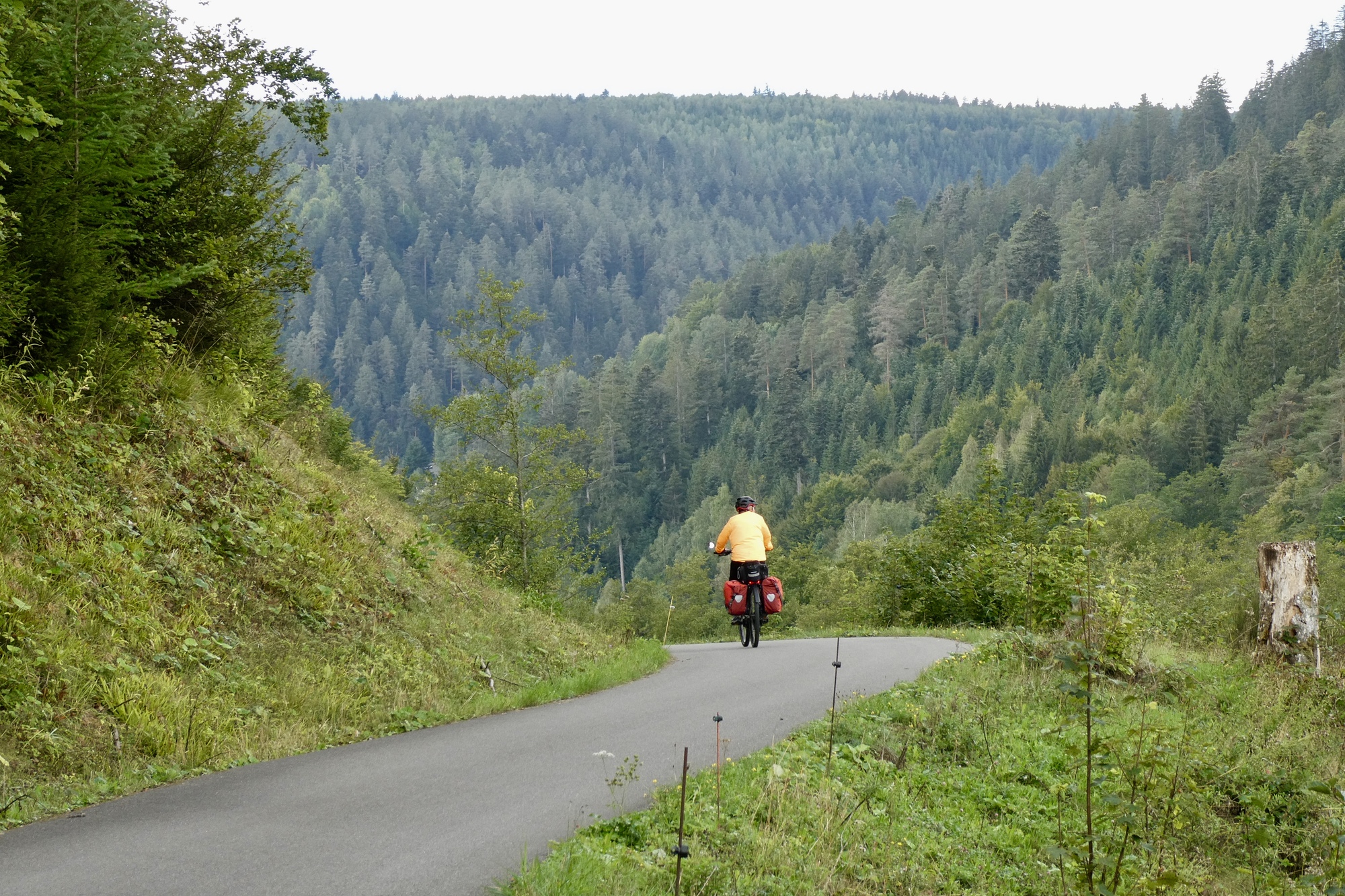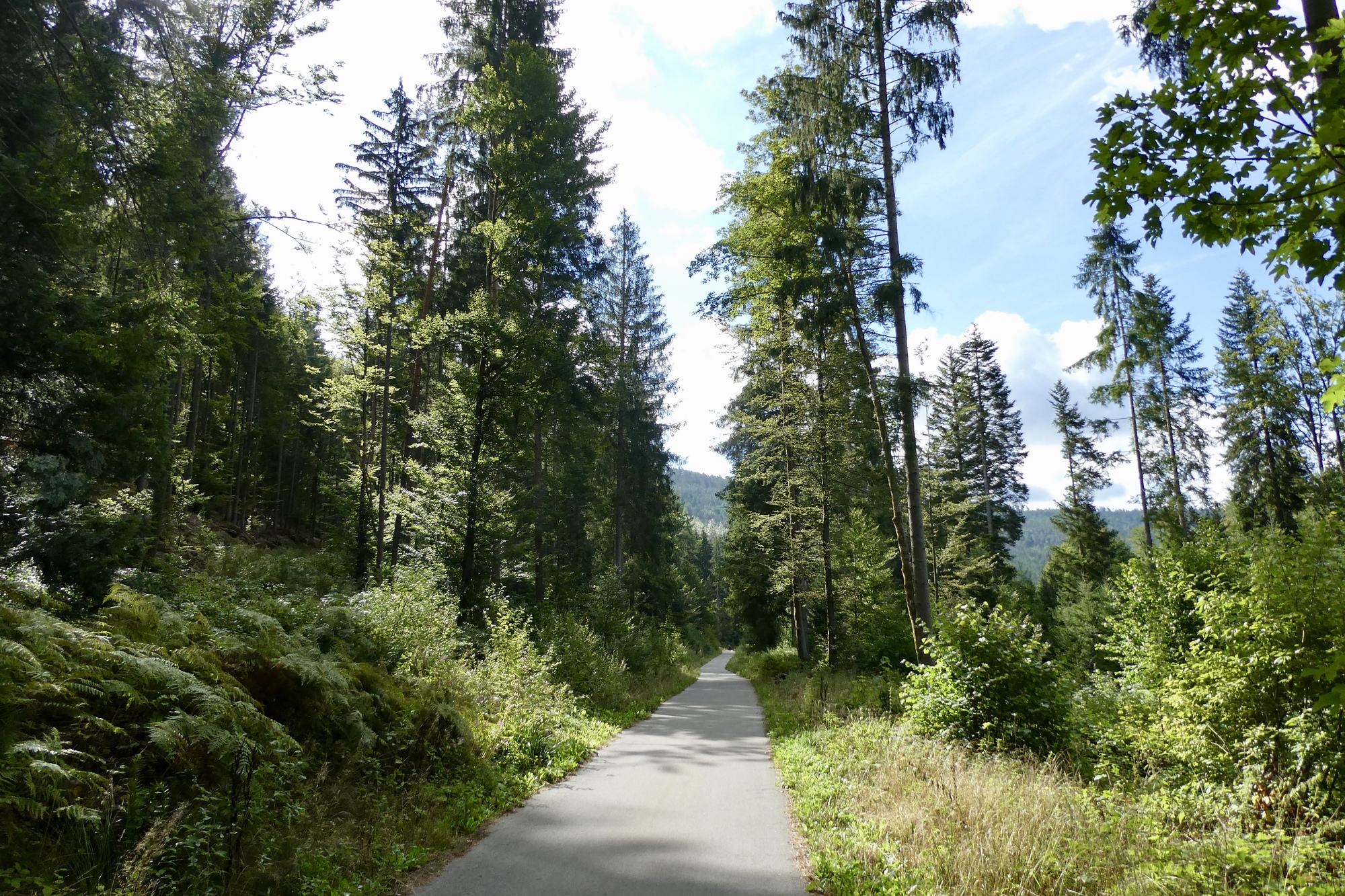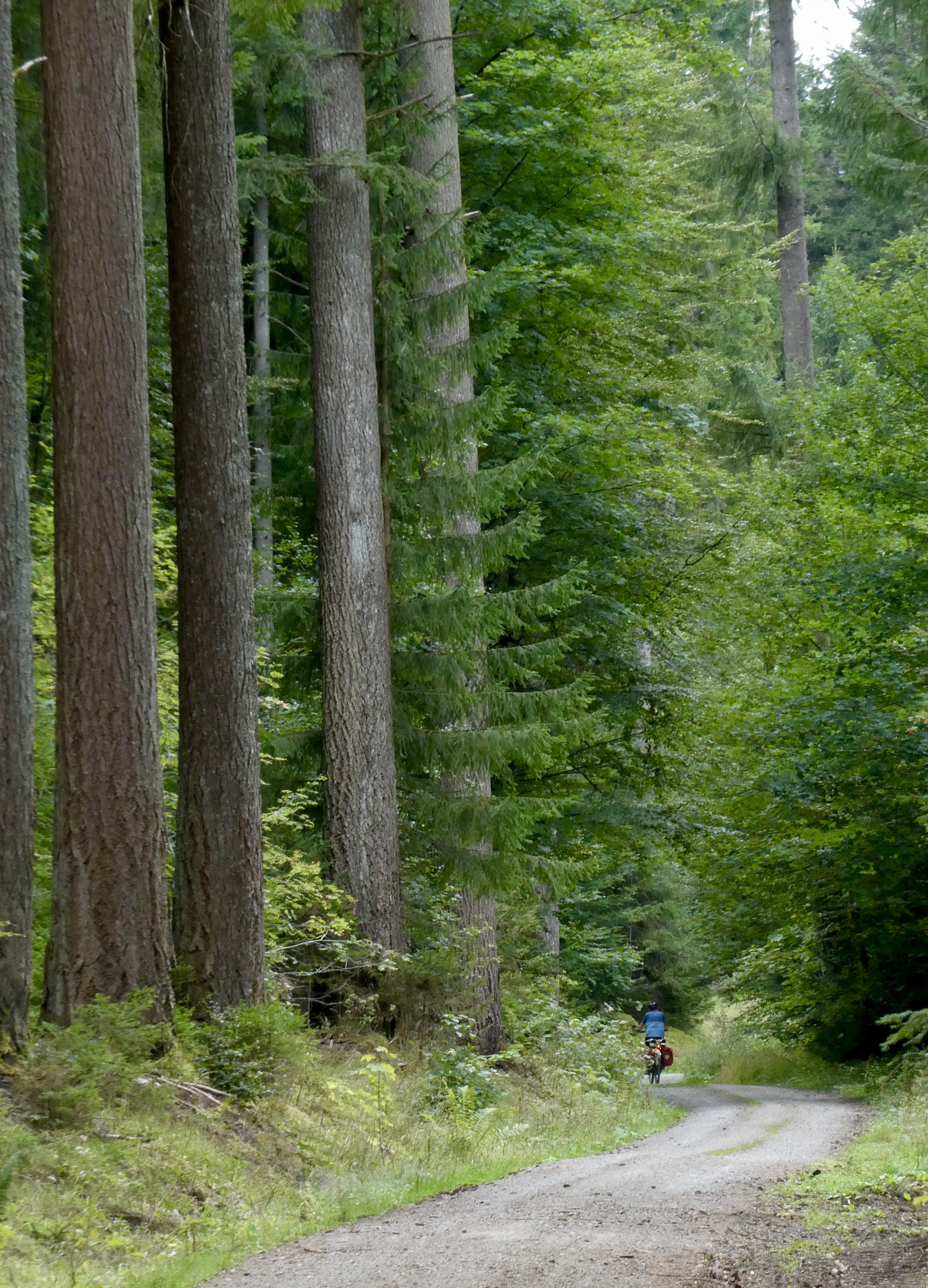 If yesterday’s ride gave us a taste of the Black Forest, today was a full course meal –up and down through the tall trees and small villages on paved logging roads, gravel tracks, and the occasional bike lane or highway. The weather was glorious, with moderate temperatures and a blue sky punctuated by puffy clouds. The rains predicted for this week had obligingly headed elsewhere, or disappeared altogether.