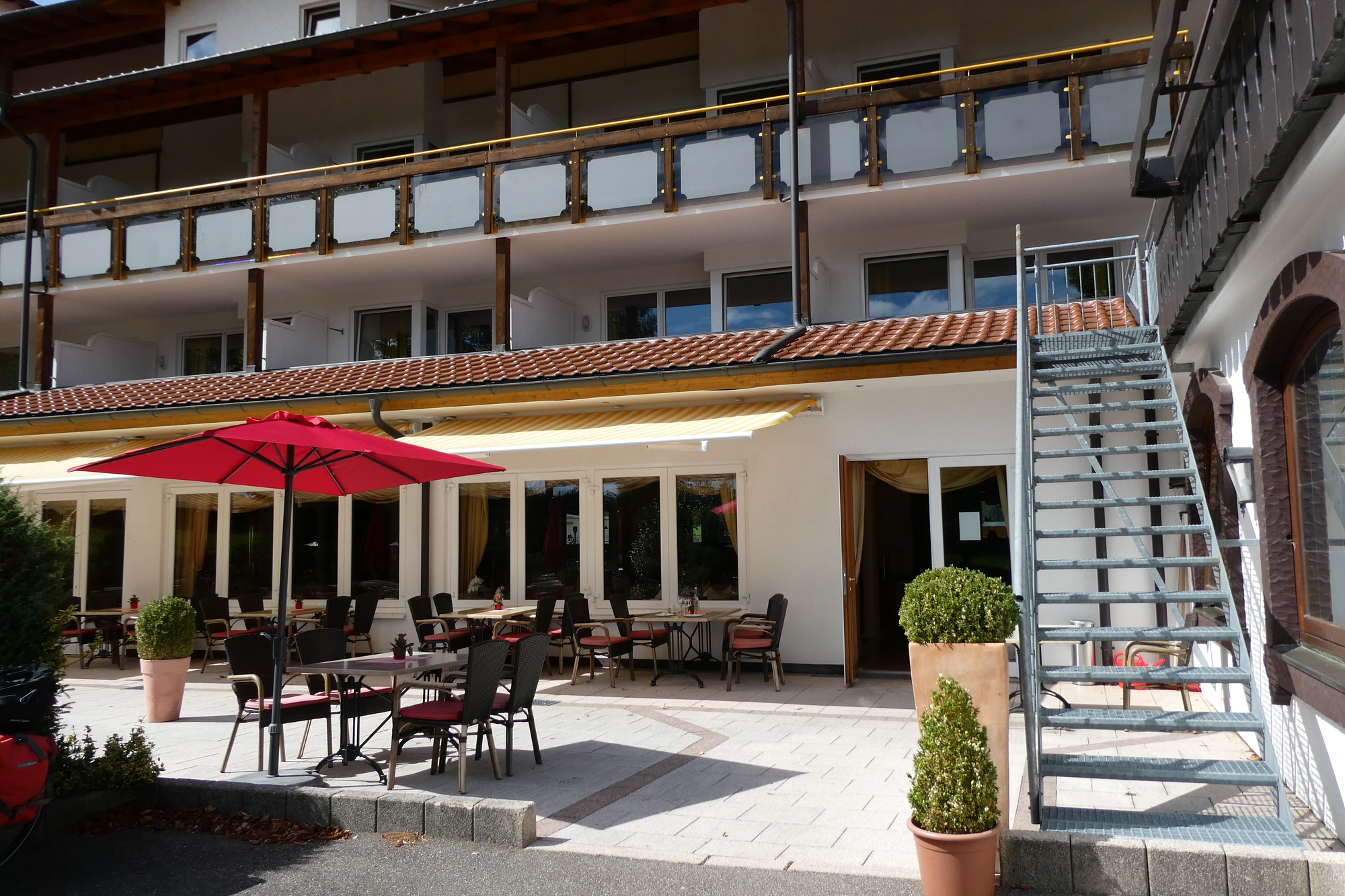 After our break we had a lovely four mile stretch on small roads, followed by a similar but not so lovely stretch on highway 294, one of the major north-south roads in this section of the Black Forest. There were enough large trucks to make us uncomfortable, so Suzanne found an alternate route through the town of Seewald where took another break for apricot cheesecake the Wellnesshotel Oberwiesenhof.