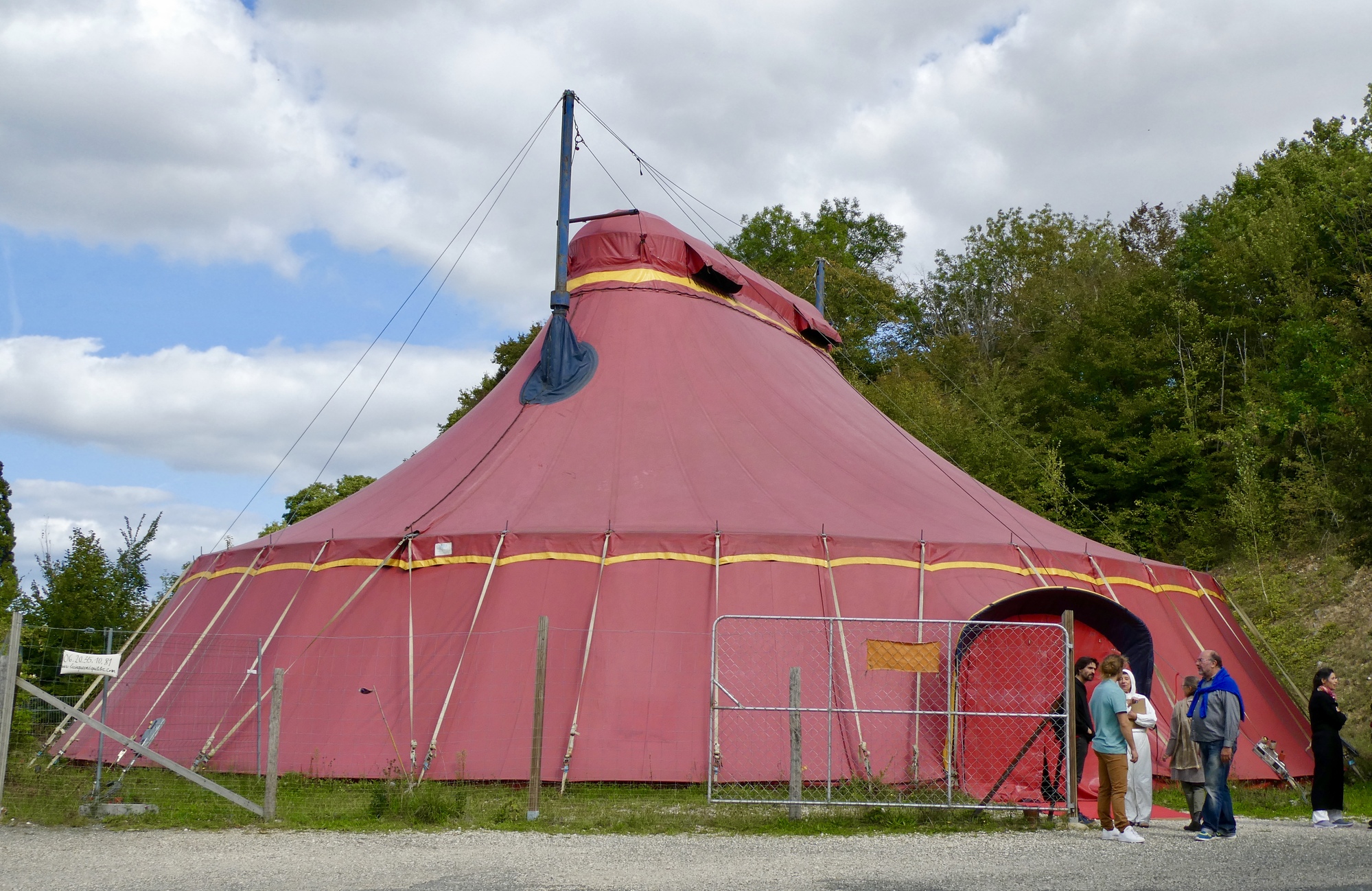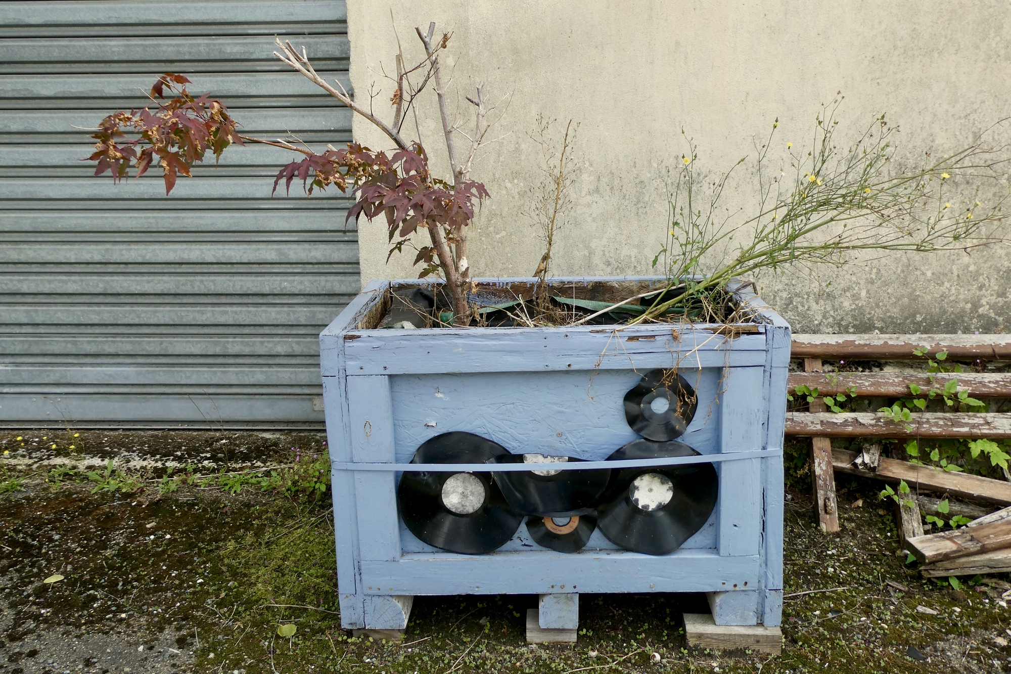 Though I was anxious to get to Chartres before the Cathedral doors closed, I made two more stops along the way. The first was to admire the water mill in the small village of Saint Piat, the second was to check out the seemingly quirky hameau of Les Moulins, located in the commune of Soulaires. There were a variety of clues that this was not your typical French town. First there was the giant tin man head, followed by a big pink circus tent. I gave the tent a big head turn, and slowed for the oddly decorated bus stop, but it was the deformed and broken vinyl records decorating the flower planter that brought me to a halt. I then spied pink truck advertising aerialist performers that was parked next to some aerialist rigging. I went back and got a better look at the tent, but it wasn’t until I was on my way out of town that a fellow walking his bike stopped to tell me the show in the tent was about to begin – comedy, dance, acrobatics. A real old time extravaganza under the pink big top. Alas, another opportunity not taken – maybe I’m getting too old.