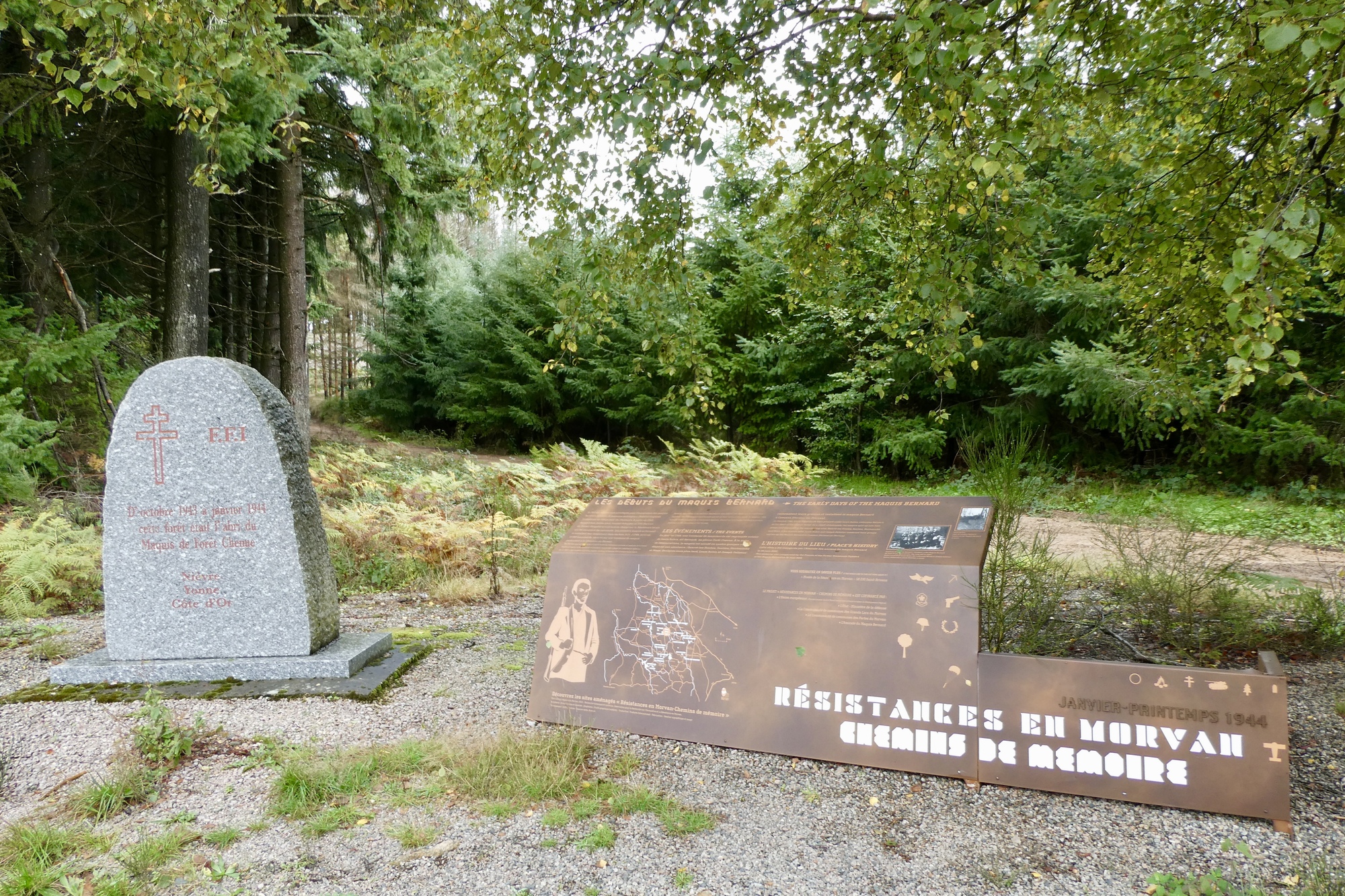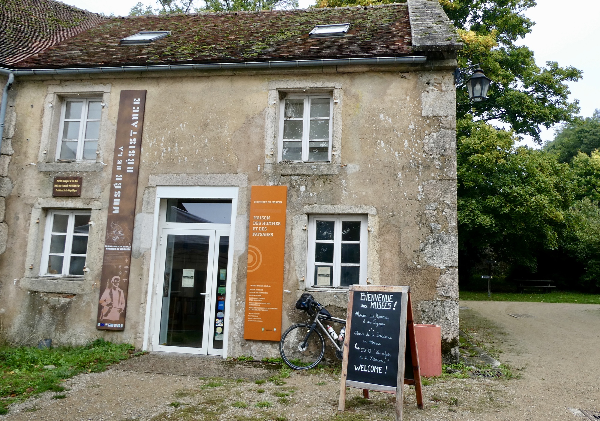 It did not take long for the blue skies to disappear under a shroud of fog and drizzle - I began to wonder if the Morvan was a mist magnet. On came the rain jacket and I made my way along quiet, wooded roads to the Morvan Resistance Museum. The museum is located in what I would call the headquarters of the Parc Naturel Régional de Morvan – in addition to the Museum there are a number of structures that house educational centers, meeting places, etc. I parked Vivien George outside the entrance to Resistance Museum, and received a free audio guide with my six euro entry fee.