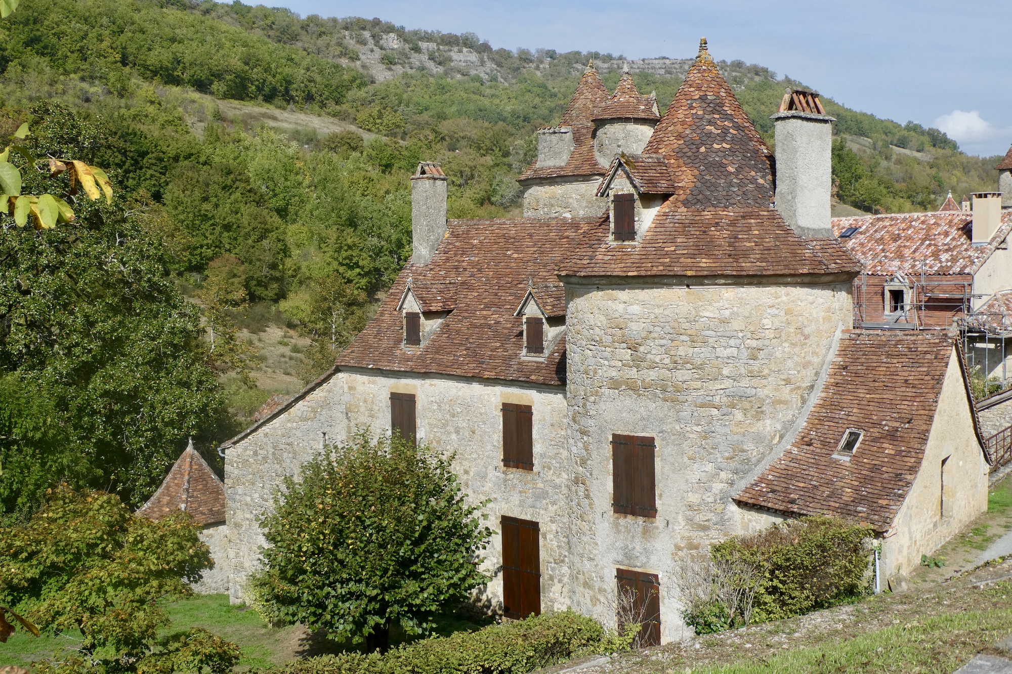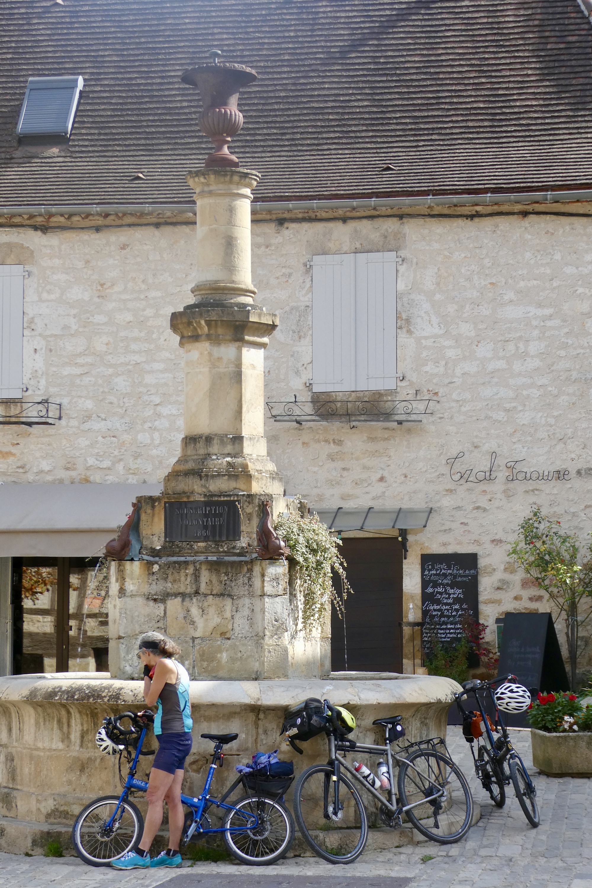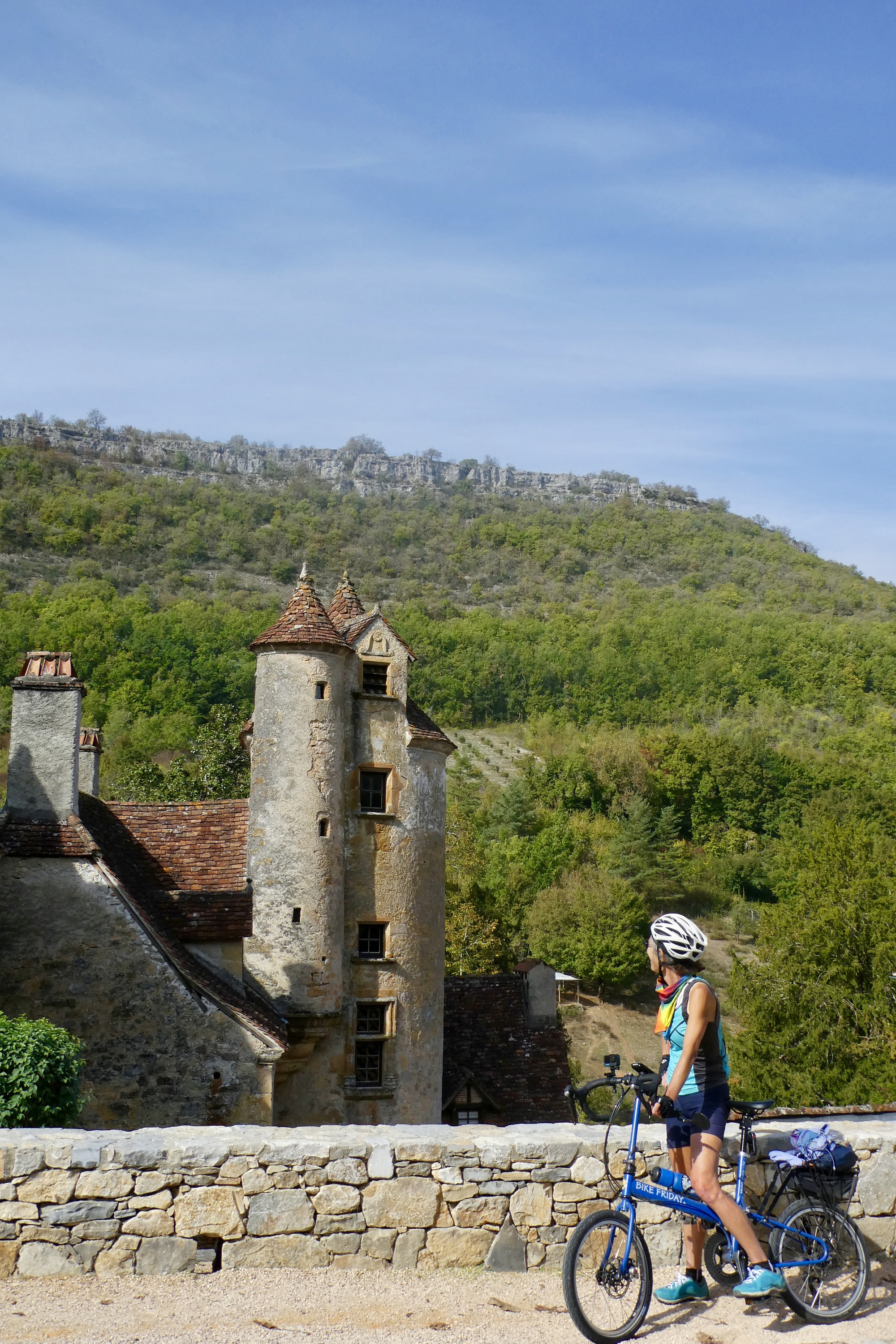 Scott had planned a loop ride through Autoire, a place he and Rachael had stayed at during their 2008 tour in France. We settled on an eleven o’clock departure time, and set out from Gramat heading east along a section of the TdF time trial route. It was pleasant riding along the causses and after about five miles, we turned north through Mayrinhac-Lentour and soon were facing the high limestone cliffs of the Cirque d’Autoire. We had timed our departure to near perfection as the cirque was bathed in sun by the time we arrived. We dropped down toward Autoire where we enjoyed an ice cream and a stroll through one of the "Most Beautiful Villages of France."