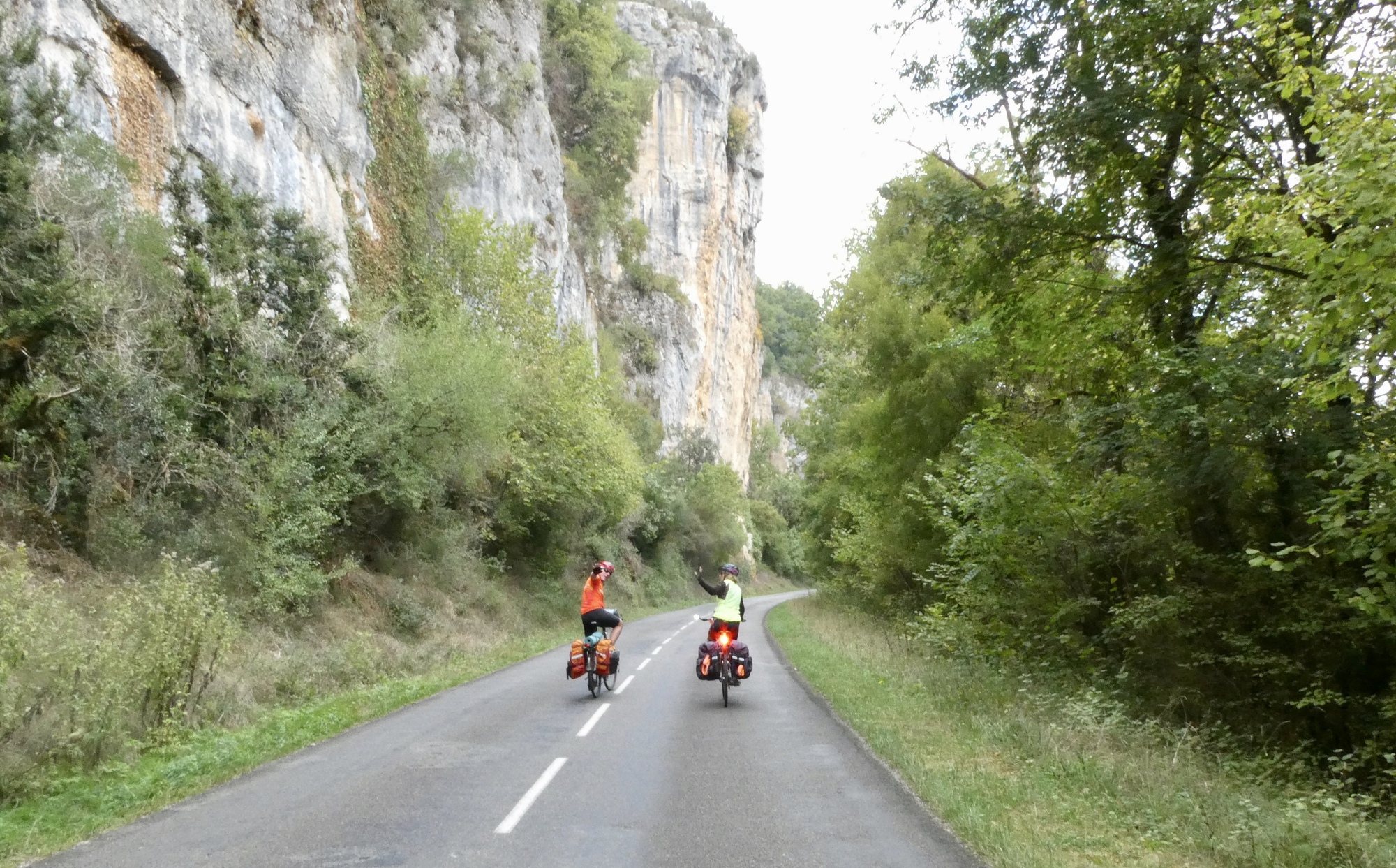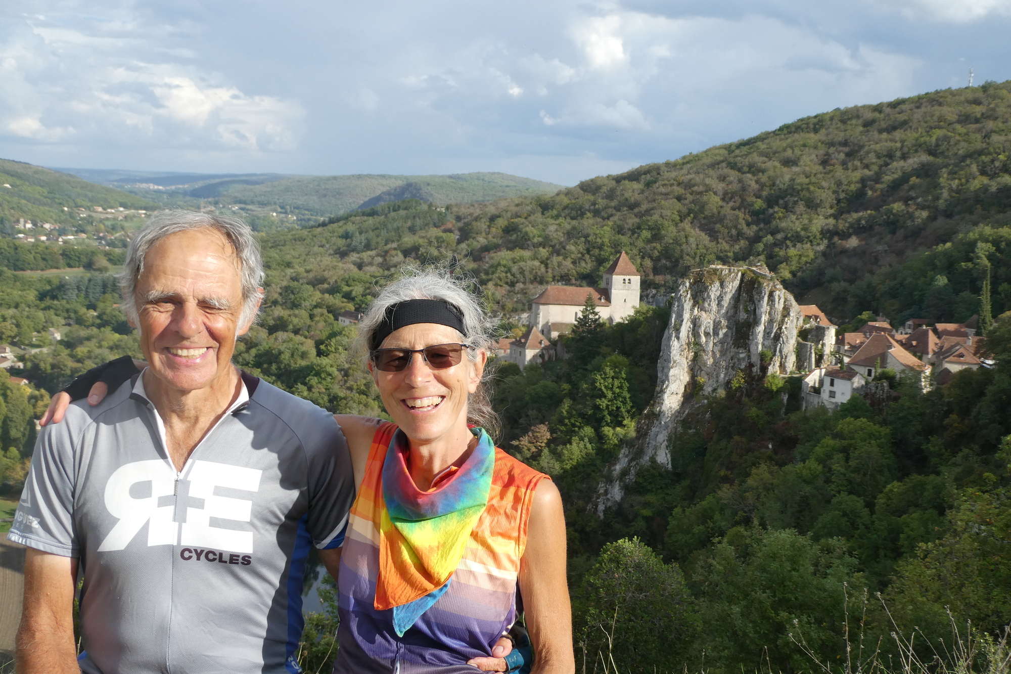 The day started off a bit cloudy, which seemed appropriate as we had to bid farewell to Ann and Steve. They were heading north to the Dordogne, starting out by reversing our route along the Célé River to Figeac. It was great to spend time getting to know two such delightful souls - upbeat, adventurous, and seemingly willing to tackle most any challenge. In the spirit of CycleBlaze, we couldn’t let them leave without joining up for a brief group ride, sending them off with featured role in Rachael’s video and best wishes for a Bonne Route.