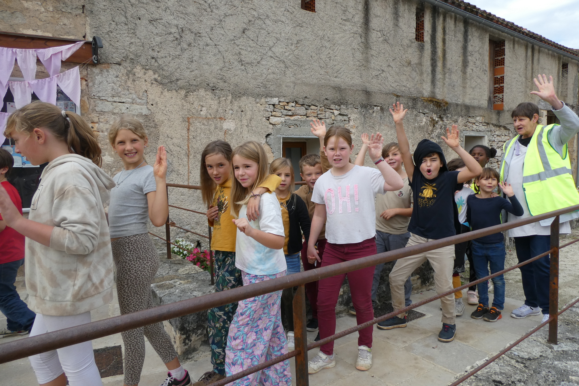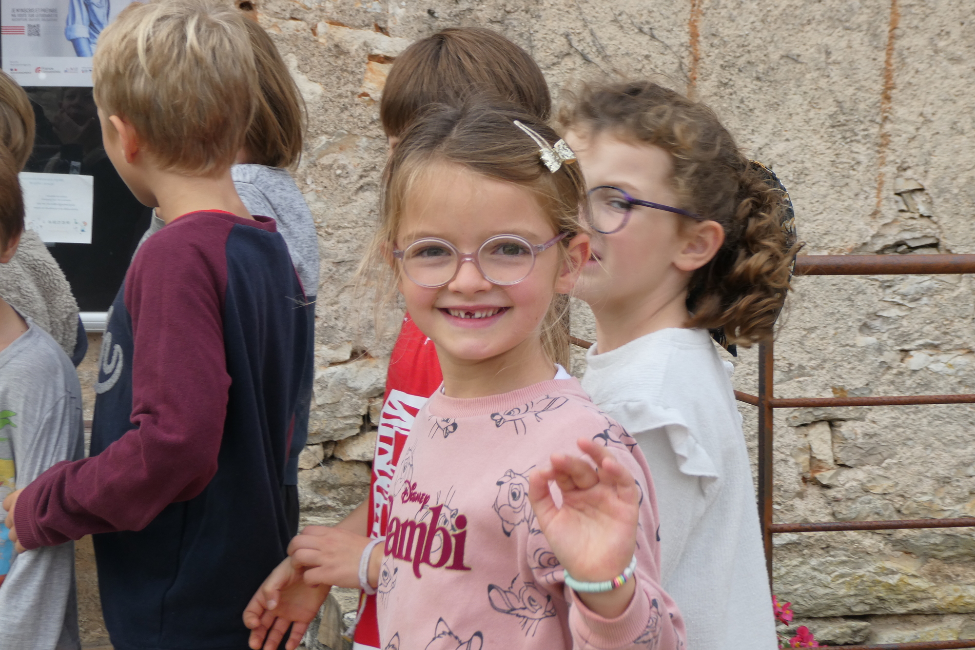 I was charmed by Concots, finding an open bakery and a food truck selling meats and cheese. I sat for a spell on a rock wall near the church, munching my croissant and watching the comings and goings of a small town on a fall day. A pack of school kids scurried by on their way to a noontime event - some with shy smiles, a few bonjours, and, when encouraged, big waves of greeting. I marveled at my good fortune and continued on.