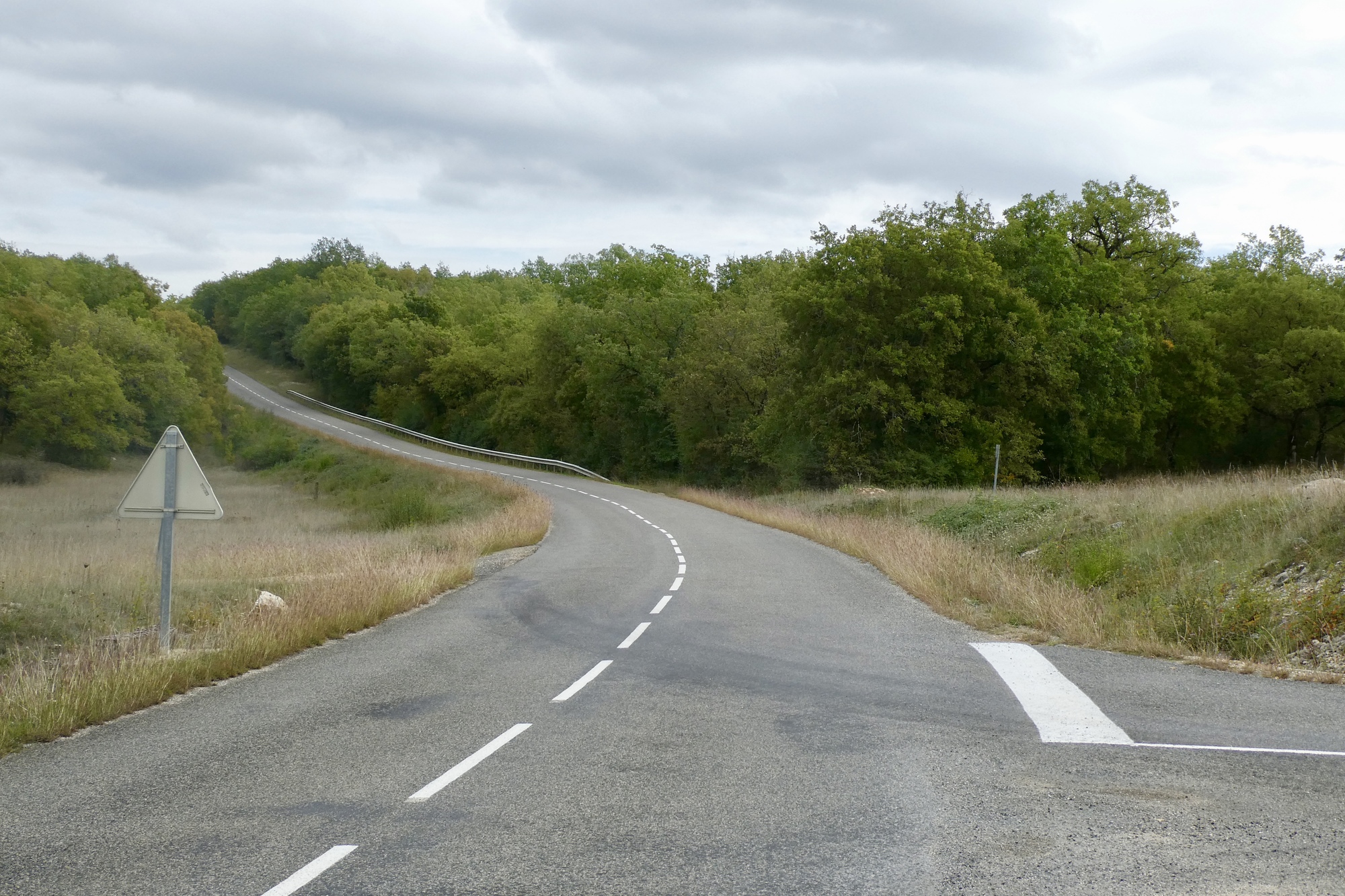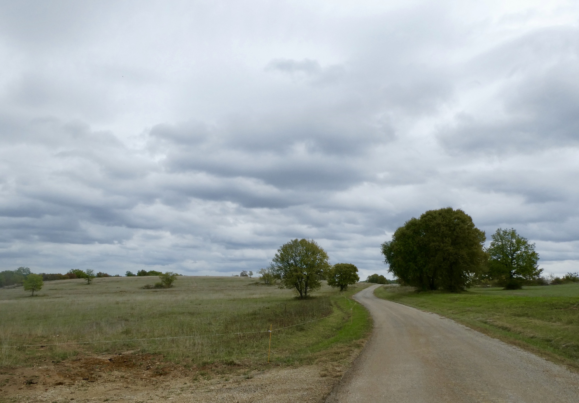 Soon after leaving Jamblusse, the narrow road widened, with a better surface and a line down the middle. The reason was not immediately apparent until I realized I had entered a military base – the Caylus Military Camp, garrison for French parachute regiments and brigades. The base was vast, 5500 hectares, and it was almost five miles before I left it’s southern border near Loze. During that time I saw one apparently civilian car and at least two dozen military vehicles, including a convoy of military trucks/transport vehicles that passed while I was going uphill – I didn’t want to stop on the hill, hence no pictures. Despite all the warning signs and sounds of distant gunfire, I felt safe, comforted by the friendly waves of soldiers in the passing vehicles. Even so, it was a bit surreal imagining all the military exercises that might take place in the seemingly bucolic countryside through which I traveled. I only wished I'd witnessed some parachute drops.