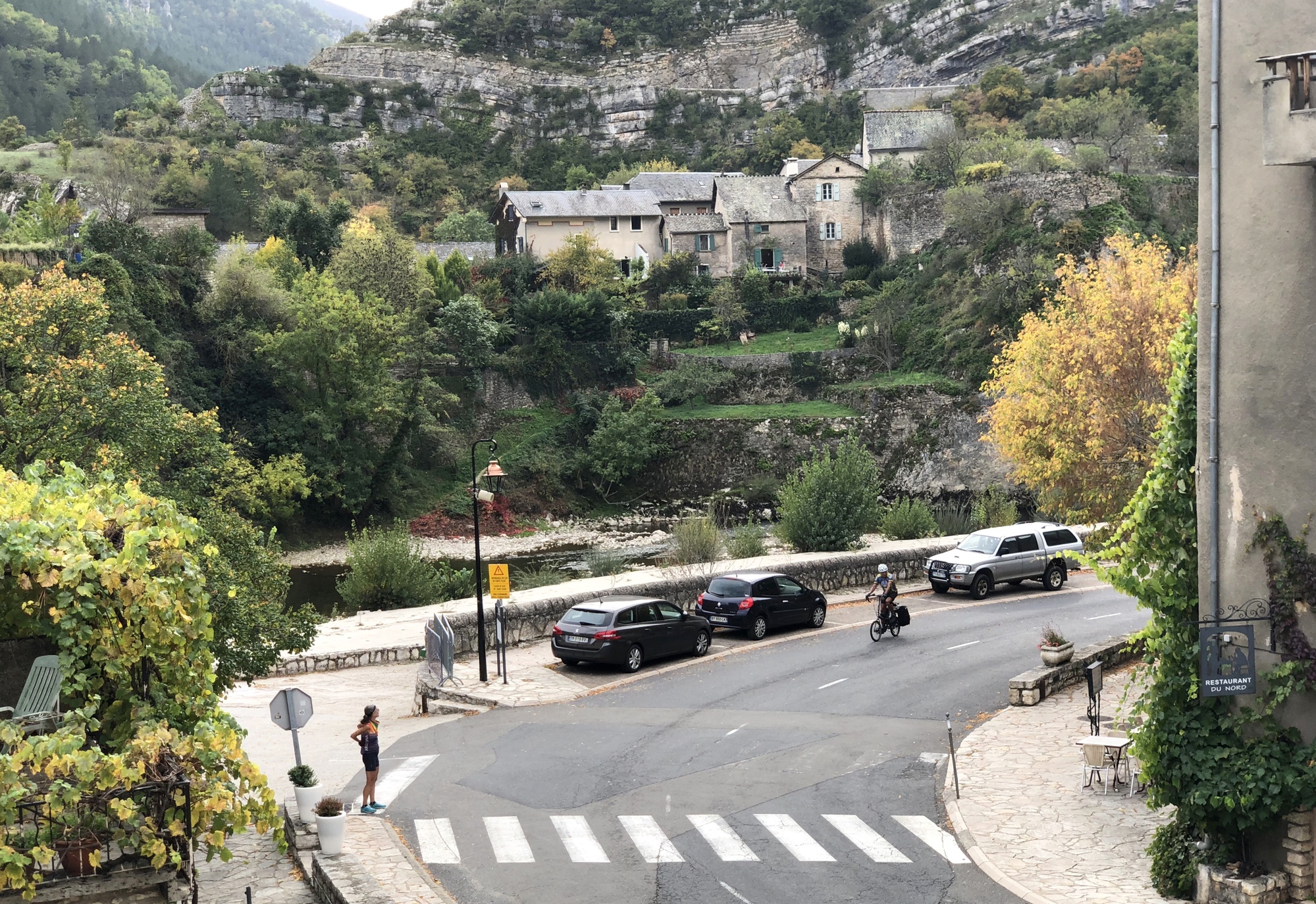 Both Team Anderson and myself estimated our respective arrival times in Sainte-Enimie between 3-4 pm. I arrived just before four, and within minutes got a text from Rachael saying she was here and there she was, just outside my window. Scott soon rounded the corner and after hearty hellos we retreated to our rooms and reconvened around 6:30 for a walk-about town before dinner.