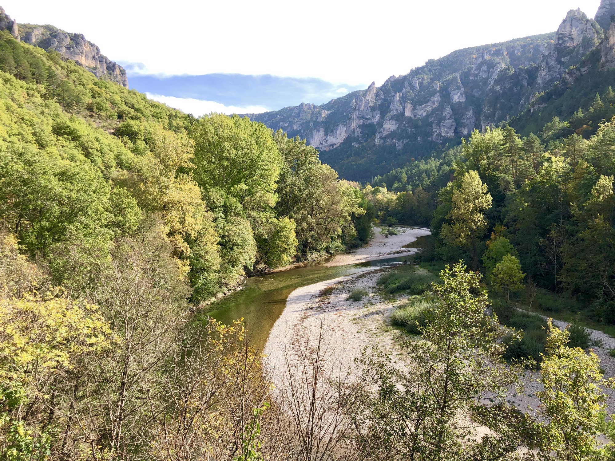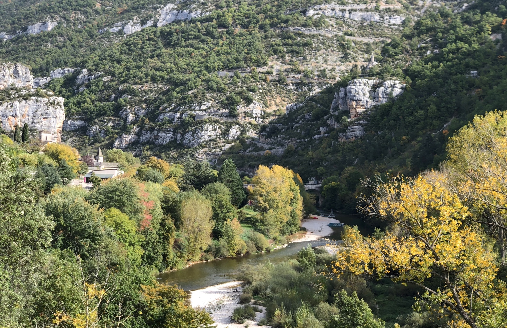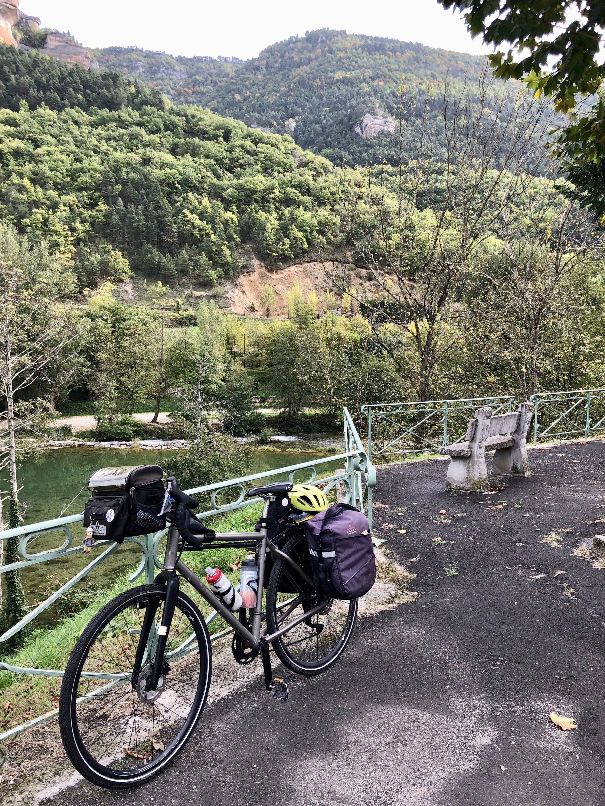 Today was the big day, the day I would cycle through the Gorges du Tarn, a ~33 mile stretch extending along the Tarn River from Rozier to Sainte-Enimie. And to top it all off, I would meet up once again with Scott and Rachael who would be dropping down to Sainte-Enimie from the Lot River. The Gorges du Tarn had drawn me to this area as a wonderful finish to my eight months in France – the fact that I would get to enjoy the company of Team Anderson was the cherry on the sundae.