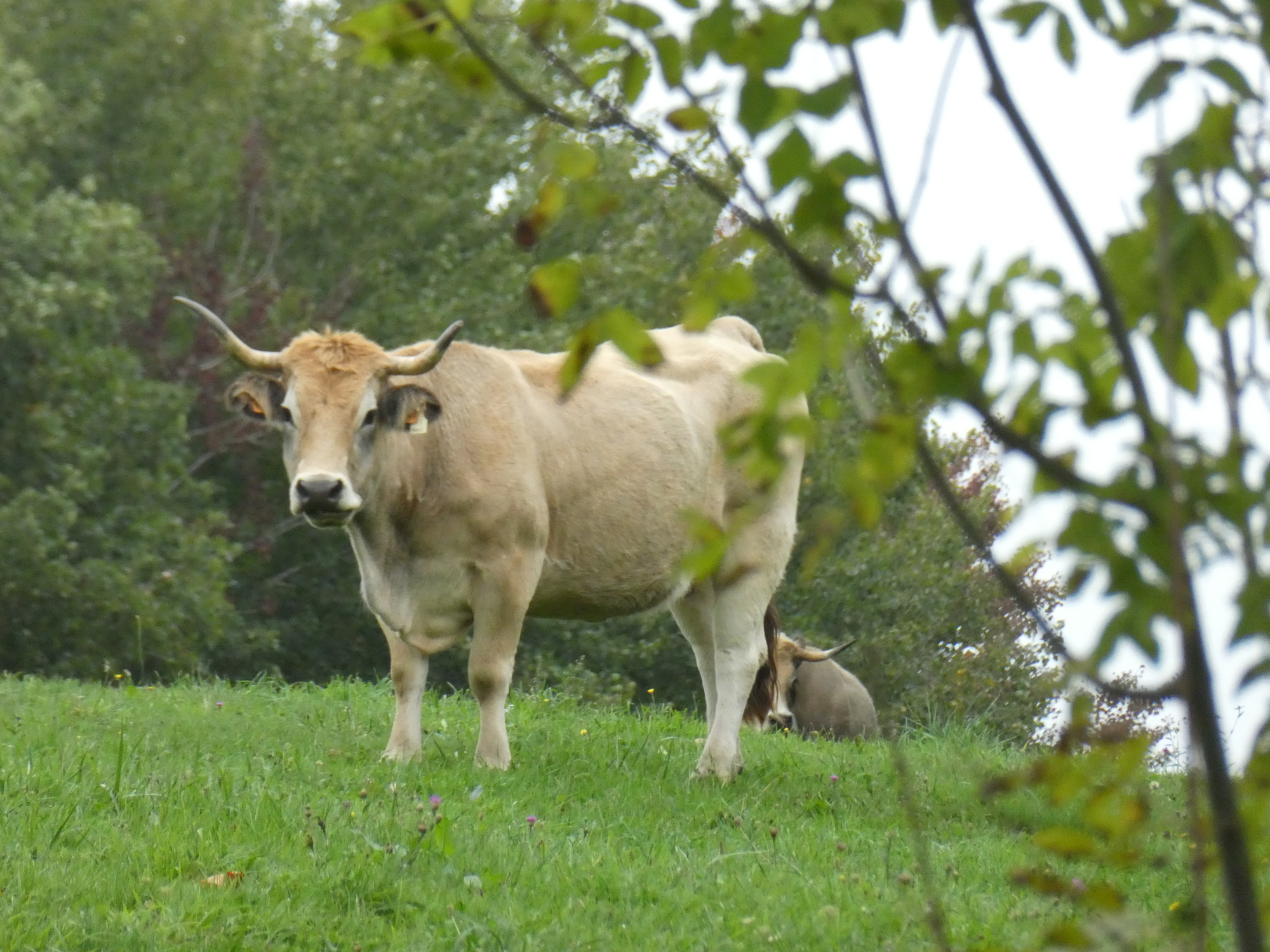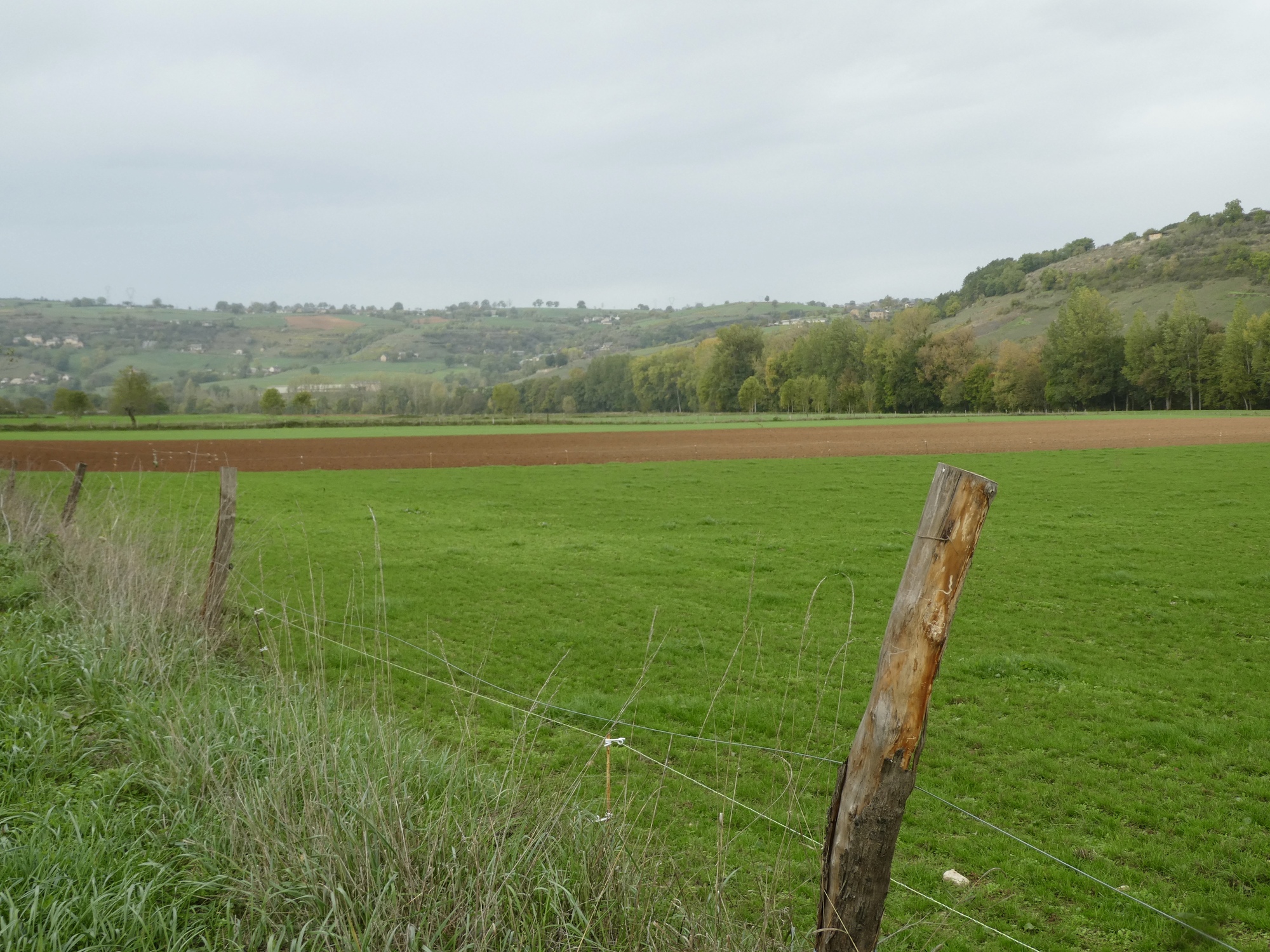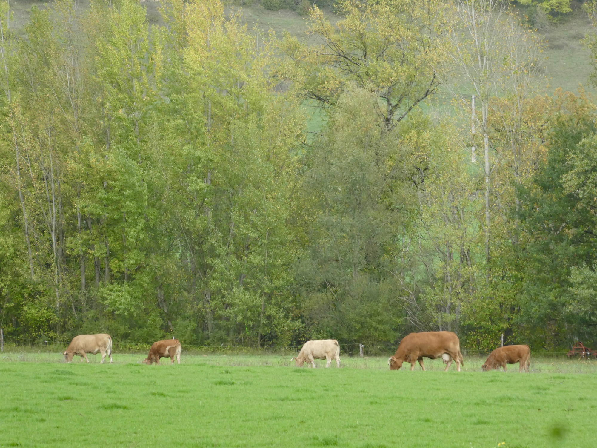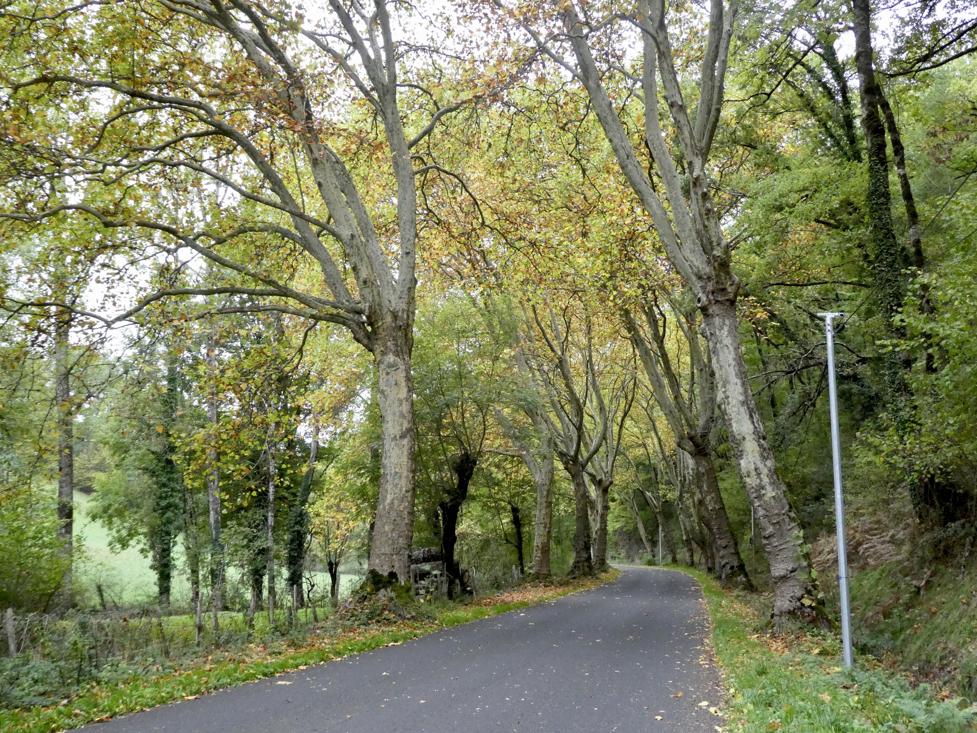 I set off from Saint-Geniez-d'Olt without giving the town it’s proper due, nor learning about the secret of the marmot. The sky was overcast and there was a bit of chill in the air, it really felt like fall. The route took me quickly up and away from the Lot River, on small tree-lined roads resplendent in their fall foliage – I was reminded of my days spent in the hill towns of Western Massachusetts. As I climbed higher, the trees opened to views of distant meadows, hillside pastures, and small hamlets. It was a tranquil morning, one that lent itself to contemplation on my life choices and good fortune.