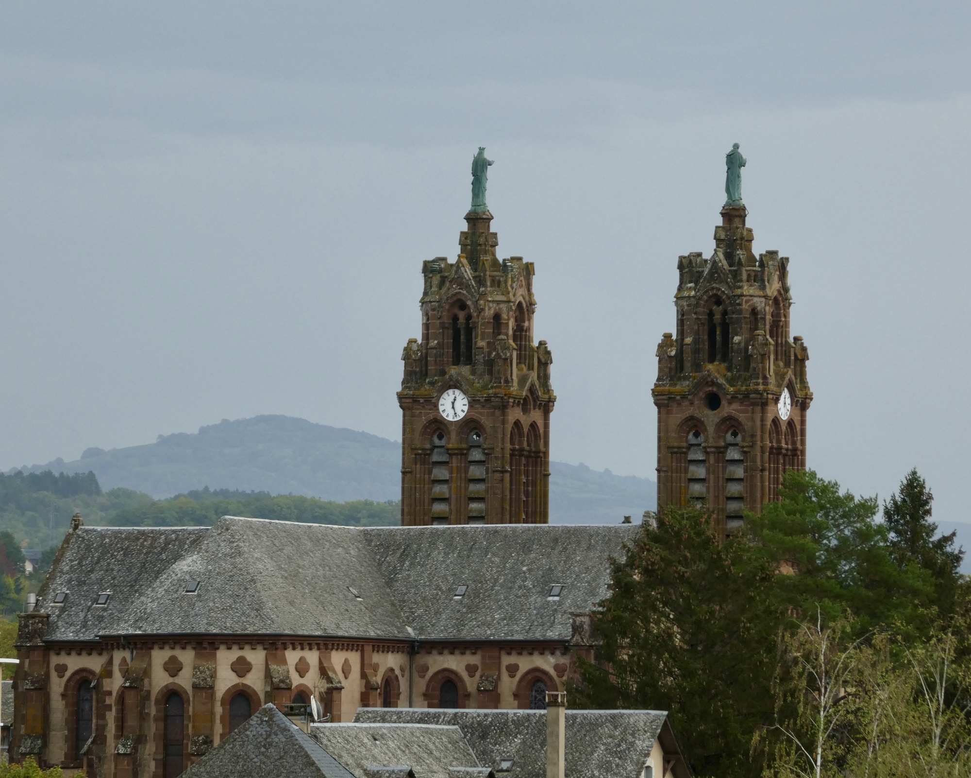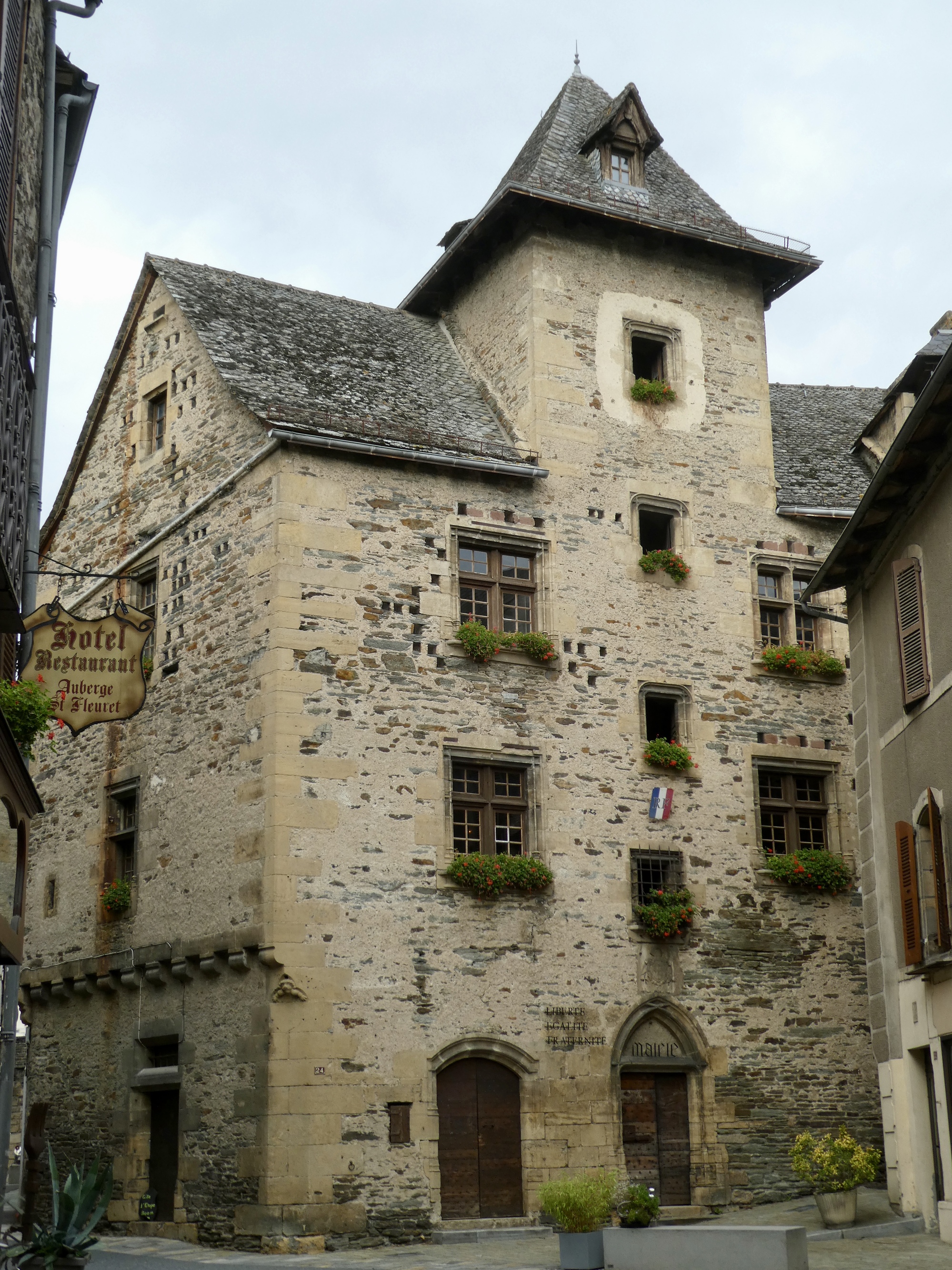 I detoured from the route to explore the twin “E-towns” of Espalion and Estaing, two charming towns on the Lot River. I was on the hunt for a coffee in Espalion, and finding an open bakery I couldn’t resist adding an almond croissant, which I enjoyed while sharing a park bench in the town center with an elderly gentleman. After a short stroll along the riverfront and the Old Bridge, I continued downriver for an even quicker look at Estaing, passing by one of the hotels I’d tried to book for tonight. In fact, I had not found an available room for tonight in either of the two E-towns, so I pushed on to Entraygues-sur-Truyère (another E-town on the Lot!).