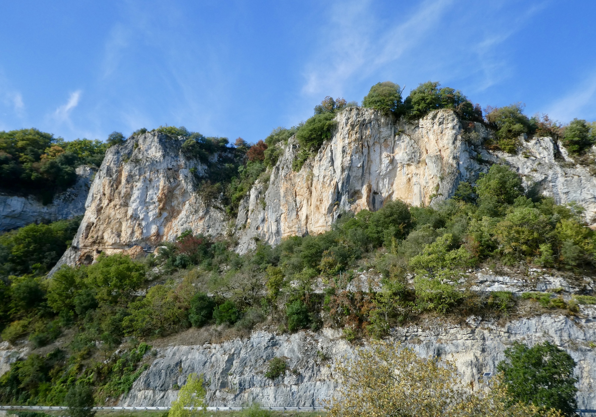 The route took me up and along a small road that ran above the south bank of the river. I was a sponge, absorbing all my surroundings – the intermittent sounds that broke the silence, the slight breeze, the canopy of trees, the sun-dappled road, and especially the cliff walls that reached down to the road. I stopped often for pictures, leaning Vivien George against the rock walls, determined to make this last day on the road one to always remember and cherish.