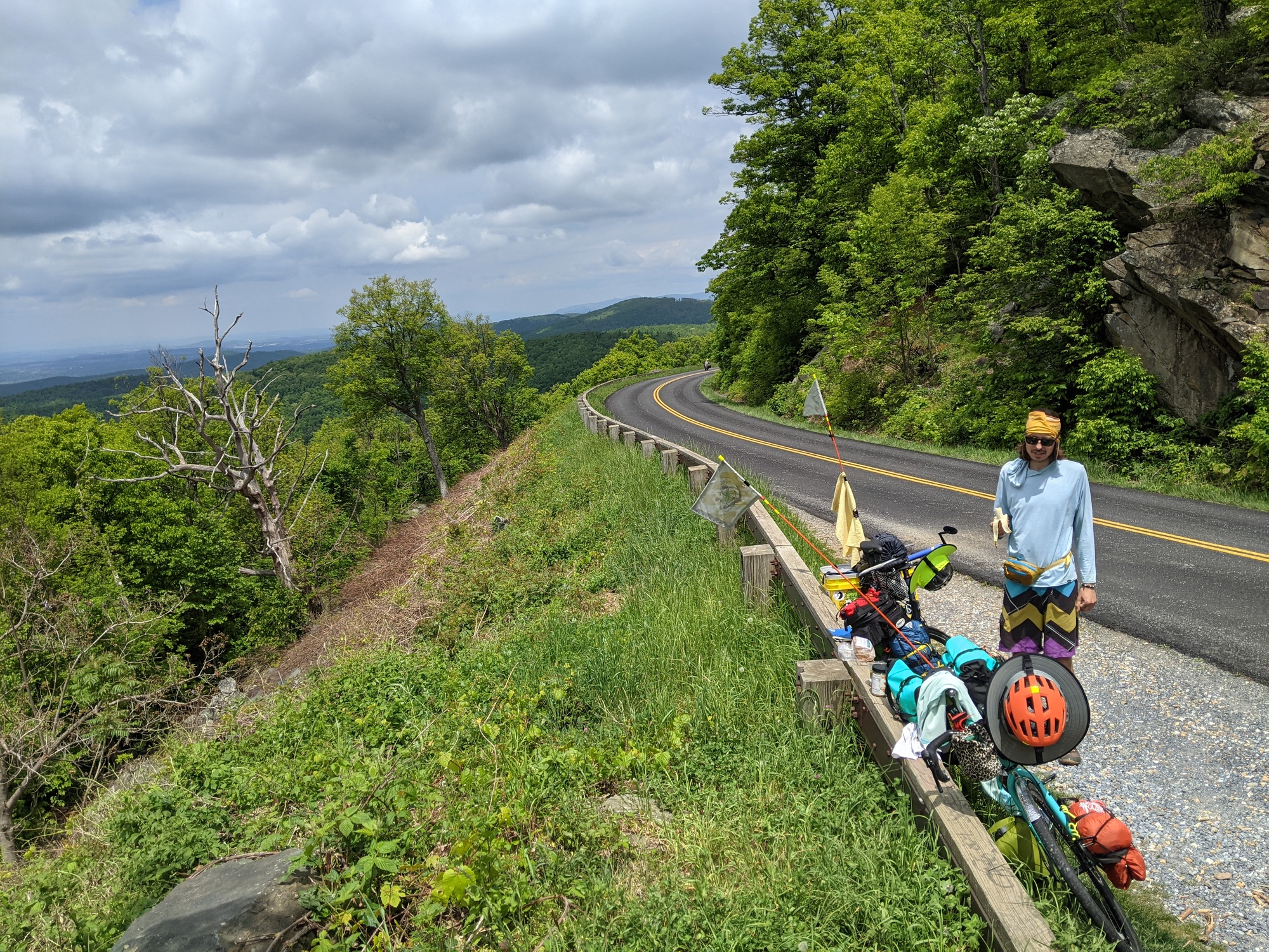 We prepped ourselves for the biggest hills yet and mounted up. It was Tuesday, so very little road traffic. We eventually reached the blue ridge parkway and kinda thought it would get easier from the point on... We were wrong. The rolling hills were brutal and it seemed to be a Gusty headwind most of the time. At least it wasn't rainy. It was partly cloudy and felt a little cold on top.