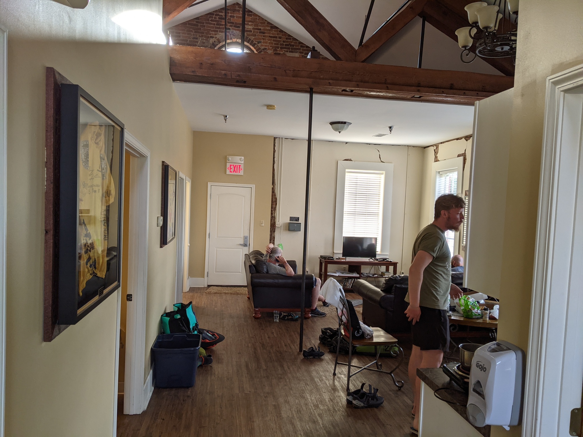 We stopped for lunch at a tiger rehab place and got cold water from their spigot. We wanted to make good time to Farmington to visit the bike shop before it closed at 4, so it was a tough few miles in the heat. We only had to cover 47 today but I'm not sure we could have done more. Wes, who we met yesterday was having hike troubles too and barely made it into town. I went to the shop and bought a pair of clipless shoes and pedals. We went to meet everyone at al's bike hostel. The hostel is an old converted jail that is managed by the city.