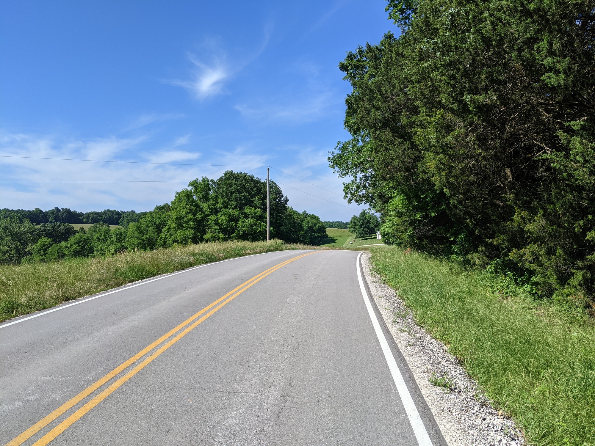 The day started easy as we went through the Mississippi plain for about 10 miles. You could see the hills coming in the distance and once we arrived, they were tough rollers. The wind was picking up so each downhill was tempered. At least the hill blocked the wind during the climb but it was really hot and humid as well. We pulled off several times to cool down and I could tell my heart rate was getting out of hand a few times. The road here can appear flat but is actually pretty steep. We have heard that Missouri can be a mentally challenging place.