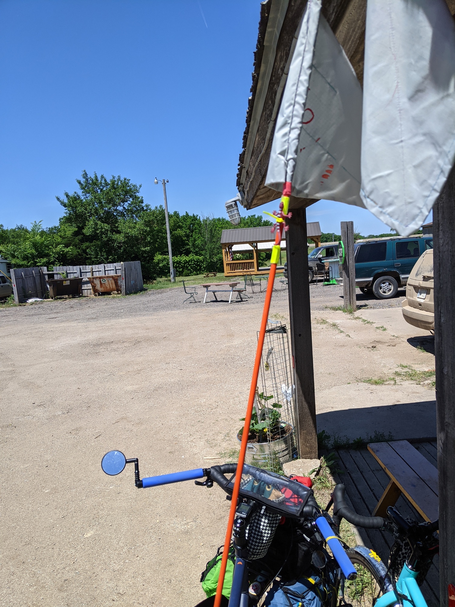It was so hot and although I had drank a ton of water, I hadn't peed all day. We made it to Eureka around 2. Mark went right to sonic for a milkshake and we went to the grocery store. They didn't have any non dairy ice cream here in cow country, but they did have stuff for burritos, cereal and non dairy milk, and frosted apple pop tarts, which were great. I'm pretty sure it would be illegal here to be a vegan. We got back to the park and swam at the public pool. They let cyclists swim free. We showered up and made dinner, but no one was psyched to eat. I think it's the heat. The pool closed early for a kids party, so that was pretty loud but they left around 9. There were a couple of friendly loose dogs that kept coming by and we gave them water. It looked like they got loose early today and haven't had water or food all that time. I was also contacting a warm showers host in Newton, but it turns out that Mallory had stayed there and didn't recommended it. She said it was like a hoarders house and the lady never stopped talking. It was funny because our host last night had recommended we stay with her, but to be honest, our host was a bit eccentric himself. Mark had a friend who did the transam last year and recommended a different host a town over, so I think we will stay there tonight, even though it's a little farther. Tonight we are sleeping under an awning and without the tent, so it should be interesting to see how that goes..