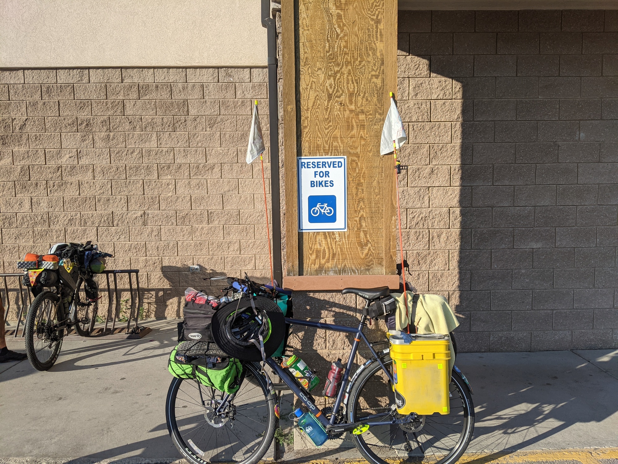 We arrived in lander at 2, and went right to the first shop. Marykesh started making clicking noises today again. This had happened a while ago, but seemed to go away after a day or so. We had previously had the bottom bracket tightened, but it happened shortly after that too. Eventually, the mechanic here replaced the bottom bracket system, so hopefully that solves the relentless clunking sounds. The bike shop people were pretty adamant about bear spray for the next sections of the route. We decided to not buy it because several people in our group already have some, and it's $50. I don't think it's worth it, and we will be on the road most of the time. Plus we fought Kentucky dogs so how bad could it be? While waiting for Mary's bike, we found a great vegan friendly restaurant called rise. We had huge smoothies and burgers. After picking up the bike, we had to kill some time before the pool opened and we could get a shower. We went to buy food and snuck into the showers. After my shower, a worker confronted me about not paying $3 to shower. Luckily, one of the guys that showered before me gave me his ticket, so I showed the lifeguard my ticket and got out of there quick. The park where we were camping was about a mile away so we went over there. On the map it said there were bathrooms and water. The park is free to camp for small RVs and tenters and this area is huge for all outdoor sports, but mostly climbing. There are a ton of van life people with all kinds of rigs. We saw even more bicycle tourists and pitched our tents by them. Mary cooked up some ramen while I put up the tent. This park has all kinds of people and the locals all told us to stay for the 4th of July events. Too bad we are two days early. I don't think we will see any since we will be going through Yellowstone this weekend. A tourist we met here tonight is staying here for the next two weeks for the 4th and a climbing festival that is coming up. We ate up and went right to bed. I slept well and the park was alot more full in the morning.