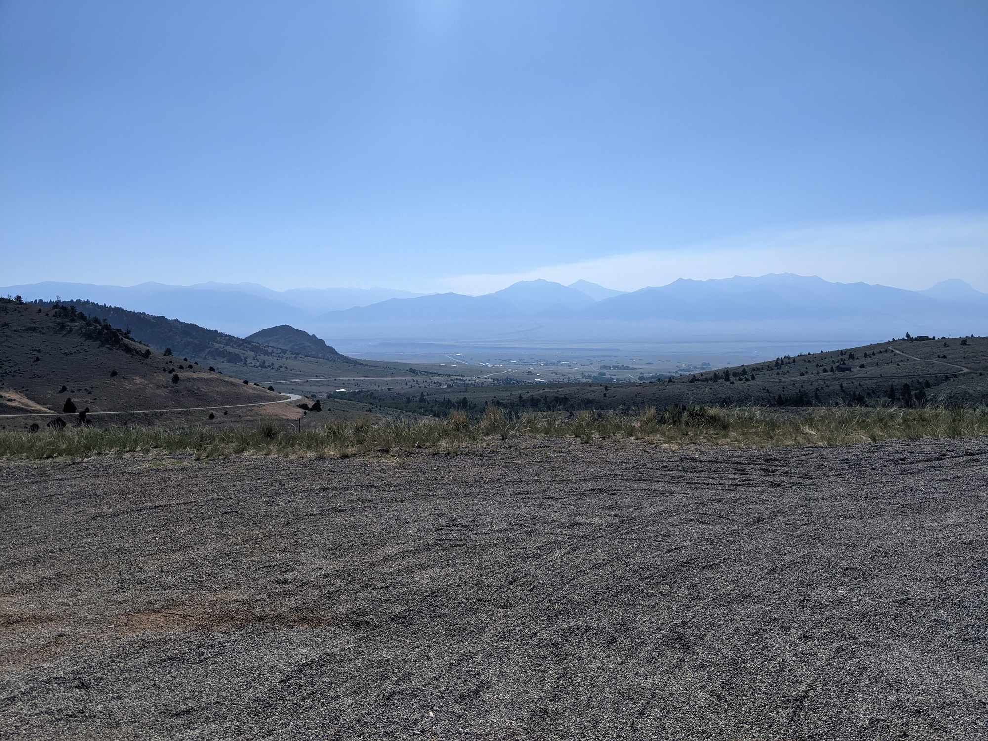 We rode the last bit to the bike hostel. It turns out that Alex had 3 flats on that road. After deliberation, everyone had a similar experience on that road. Conner called to complains about one of the trucks and Tim, who is usually very positive and cool, lost it on the side of the road. He is apparently considering renting a car to drive to Missoula. We arrived at the hostel and met the caretaker and builder of the place, Larry. He gave us a tour of the two buildings. In the log cabin they work on bikes and give them away to the community. The other building has showers, bathroom and a common area. He also told us that our route after wisdom is closed July 12-15 and there isn't a close reroute. We sent the info out to the group chat for anyone behind us, but we should be fine since that is only 1 day away for us. We dropped our stuff off and rode a mile into town to get food and go to a Patagonia outlet. I didn't need anything at the outlet, so we went to Mexican food. We stuck out there as the food wasn't good, so we got second dinner from the grocery store. We bought some beer, food, snacks, and stuff for a second dinner. We were all super tired, but we're up untill 1030 because the sun wouldn't go down. The valley here is hazy from Idaho fires, but it made a really nice sunset. Tomorrow is going to be a tough day with two mountain passes to get to wisdom. Tim, David, and Conor are planning to take a rest day tomorrow.