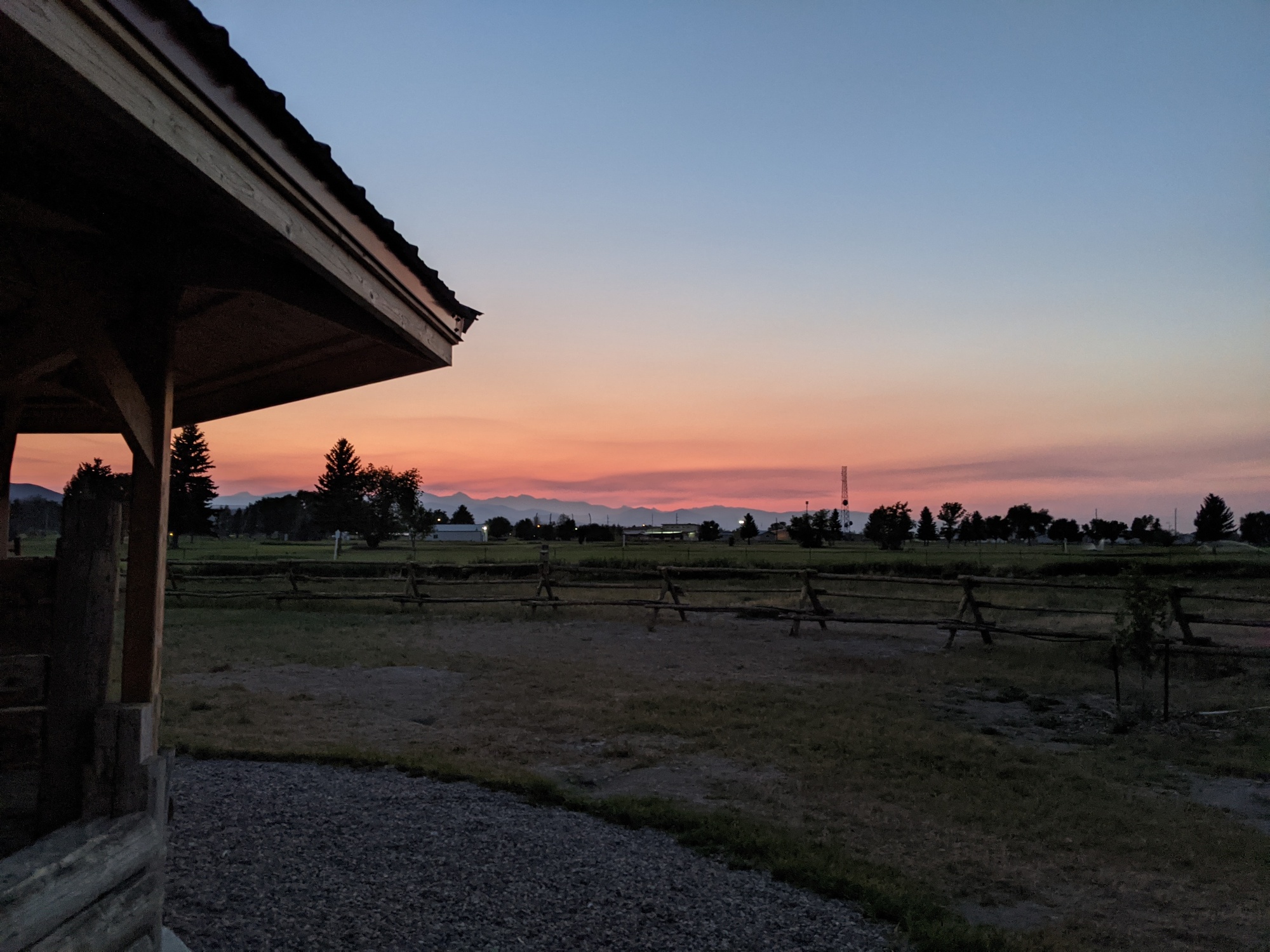 We went to get lunch and then swam in the river before returning to the hostel to hang out with everyone else. I rotated my tires, ate dinner, and tried to sort out some planning information to stay in Darby. Before going to bed, 5 east bound people showed up and we talked with them for a bit. There must have been 18 bike tourists in Dillon that day, most of the. Staying at the hostel. Mary and I pitched our tent and slept in the yard near the gazebo hoping to see stars with no rain fly.