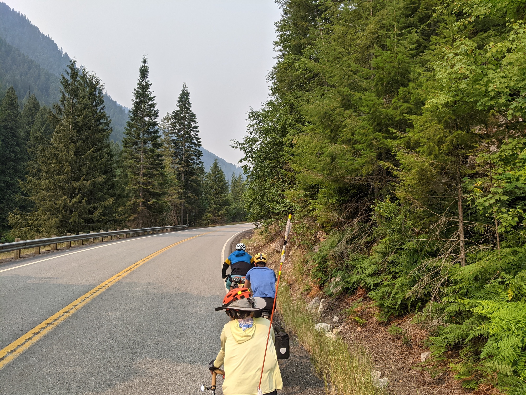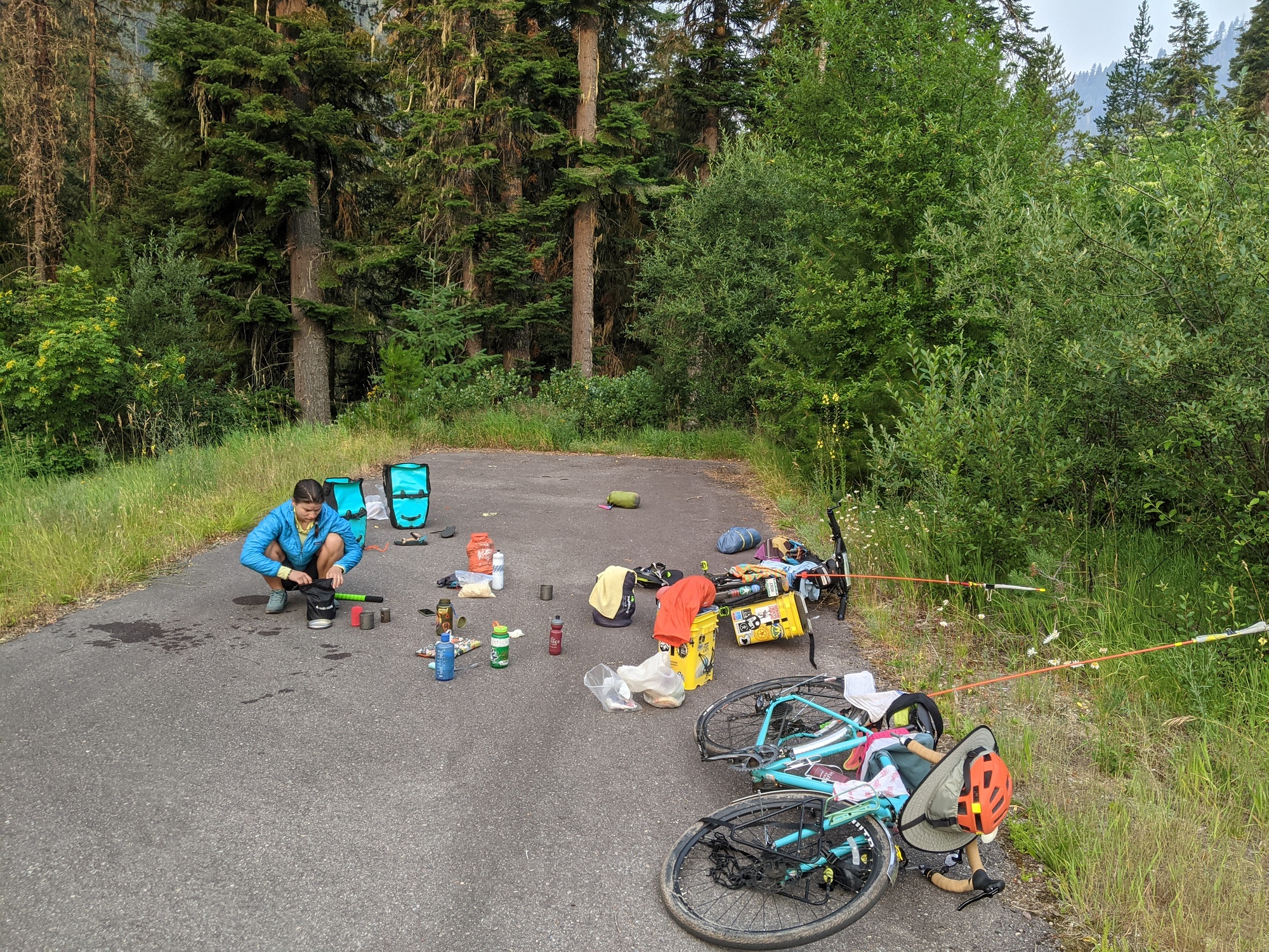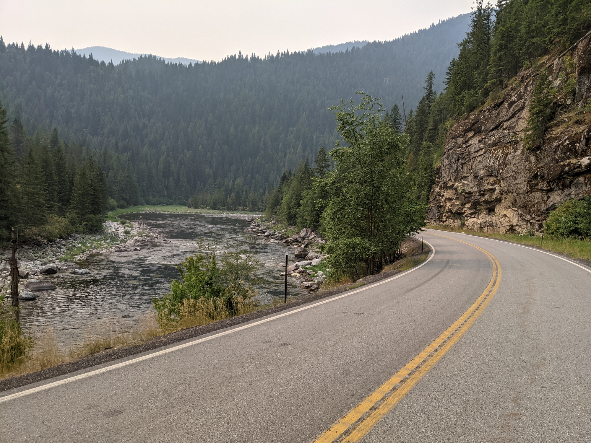 We made breakfast and got on the road as early as possible since the heat and wind pick up after noon. Our day today was about a 70 mile day downhill to kooskia. We started off strong; we drafted off Anton and cruised or about 30 miles at 20 mph.